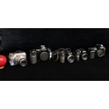 A selection of five cameras, includes a canon EOS-1N, a Niko...