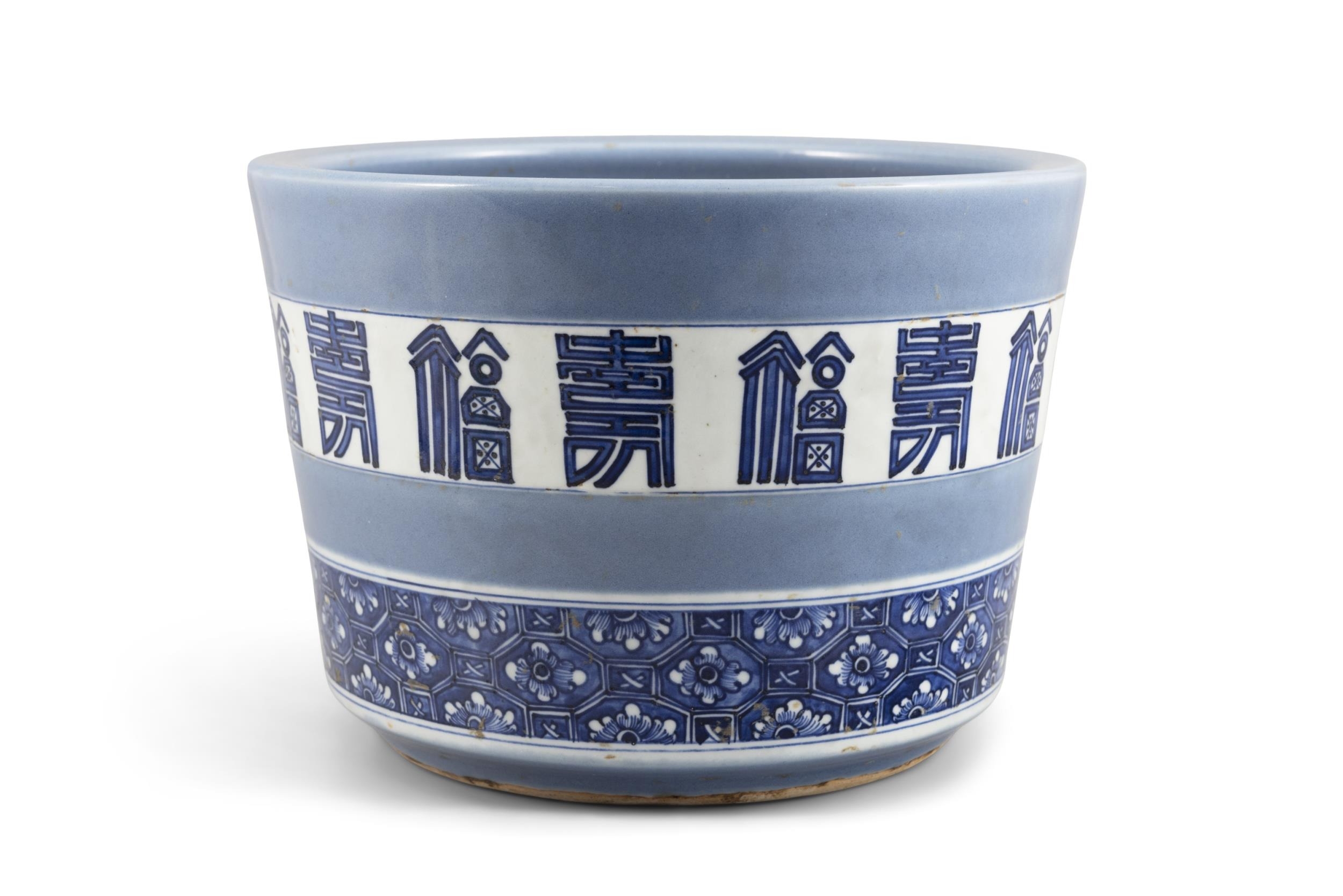 A BLUE AND WHITE FU AND SHOU GARDEN POT 20?? ??????? China, 20th century. H: 21cm; D: 29cm