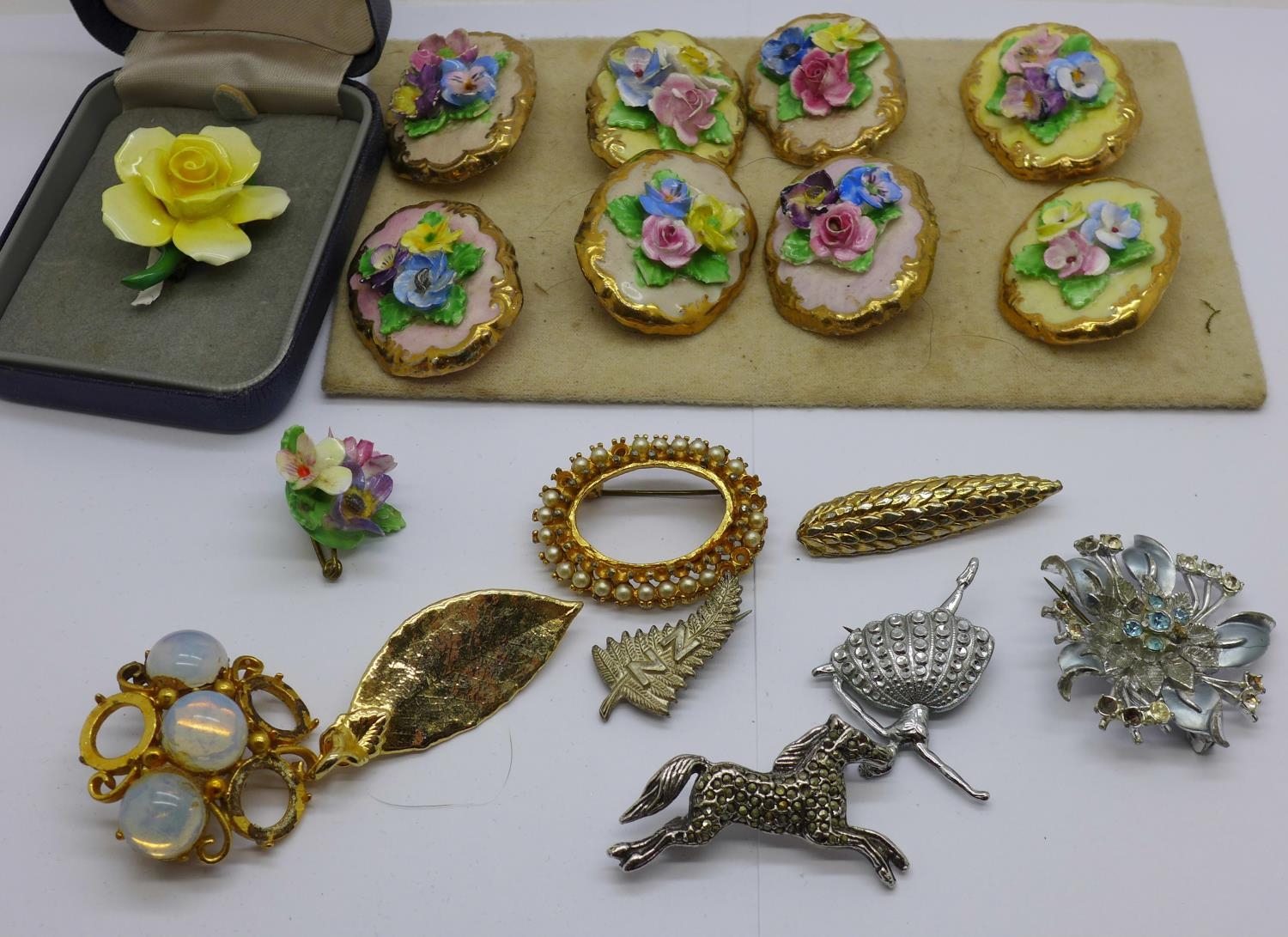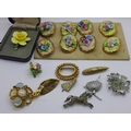 Seventeen costume brooches, some a/f