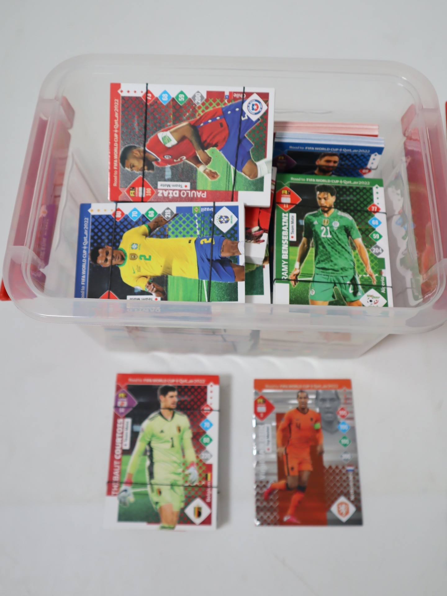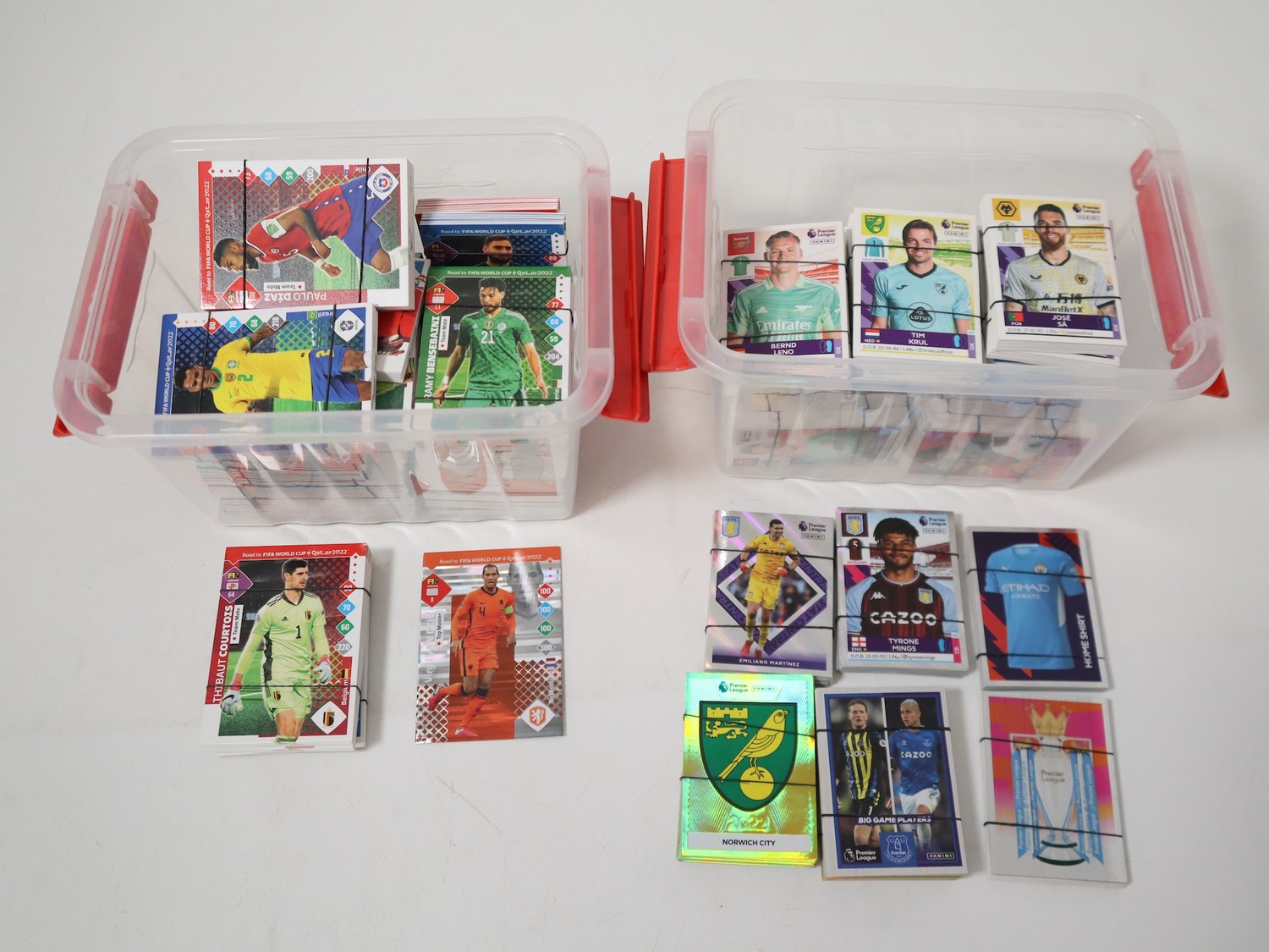 Panini Road to World Cup Qatar 2022 football cards includes limited editions total 557 cards + Panini The Road to UEFA Nations League Final 2022 total 527 football cards + Panini Premier League Stickers 2022 825 in total