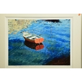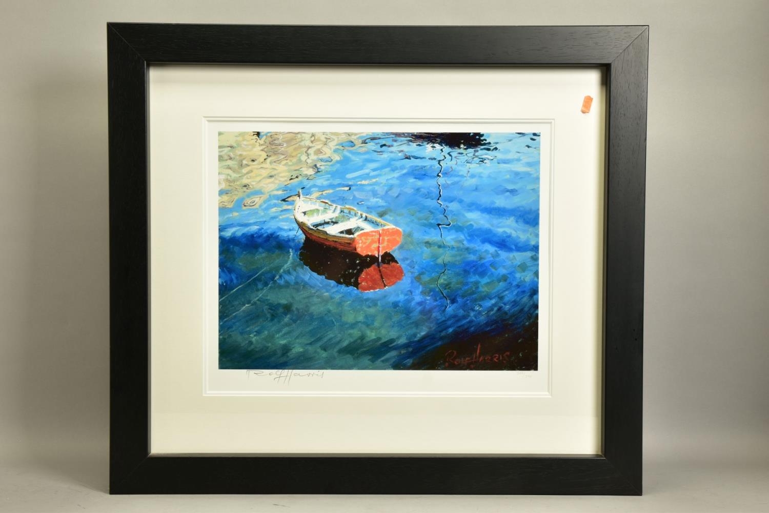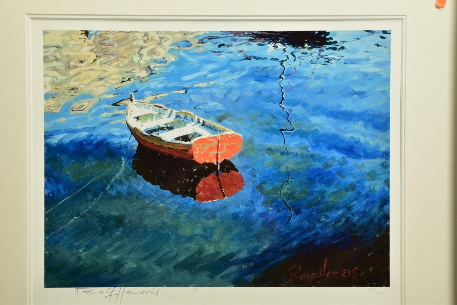 ROLF HARRIS (AUSTRALIA 1930) 'LAZY AFTERNOON, MALTA, a signed limited edition print depicting a small boat on the water, 235/ 295 no certificate, approximate sizes: image 39cm x 49cm frame 69cm x 77cm, Condition report: good condition (artist resale rights apply)