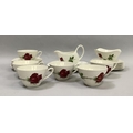 A Midwinter Stylecraft Fashion shape tea service decorated with a rose comprising six cups and saucers, milk jug, sugar bowl and a cake plate