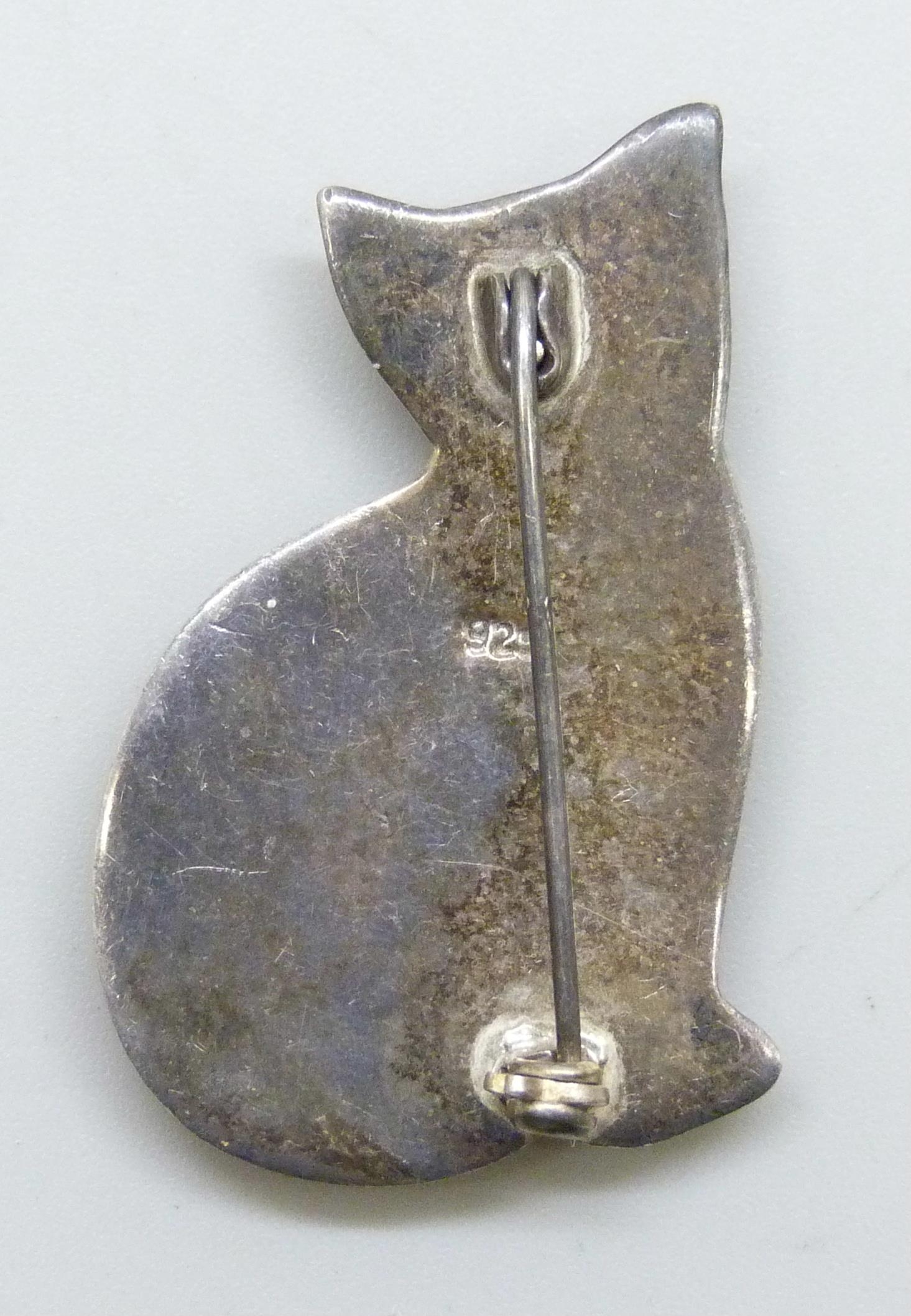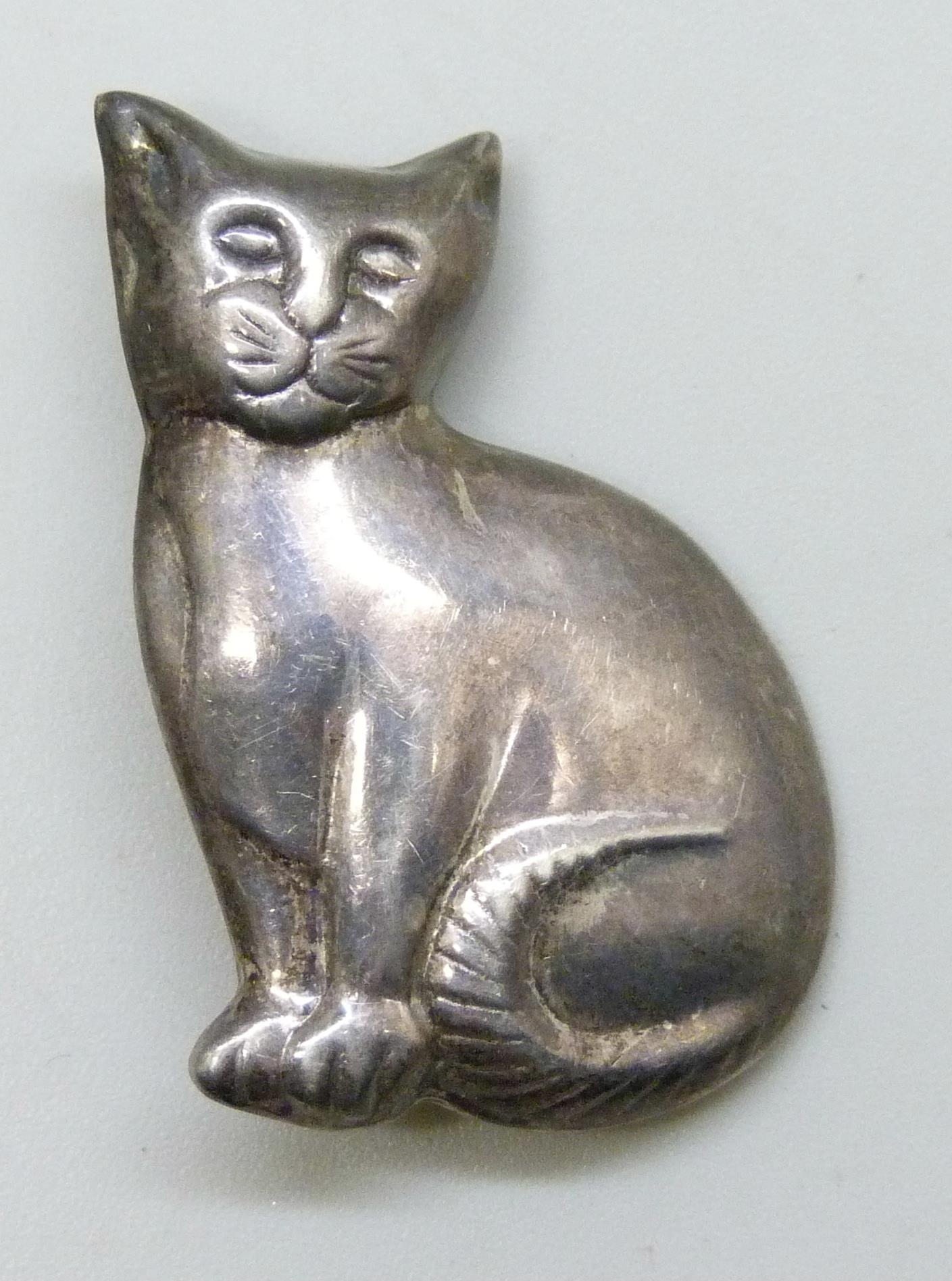 A silver animal brooch in the form of a cat, 3.6cm