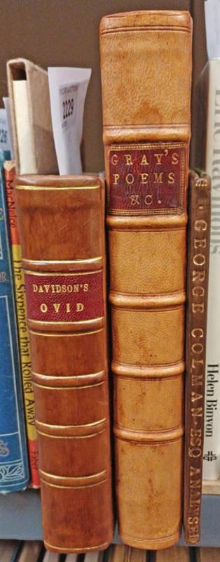THE POEMS OF MR GRAY, TO WHICH ARE PREFIXED MEMOIRS OF HIS LIFE AND WRITINGS BY W. MASON, FULLY LEATHER BOUND - 1775, A NEW TRANSLATION OF OVID'S METAMORPHOSES INTO ENGLISH PROSE TRANSLATED BY NATHAN BAILEY, FULLY LEATHER BOUND - 1748, AND GEORGE COLMAN, ESQ; ANALYSED; BEING A VINDICATION OF HIS JEALOUS WIFE, AGAINST HIS MALICIOUS ASPERSIONS, HALF LEATHER BOUND - 1761 -3-