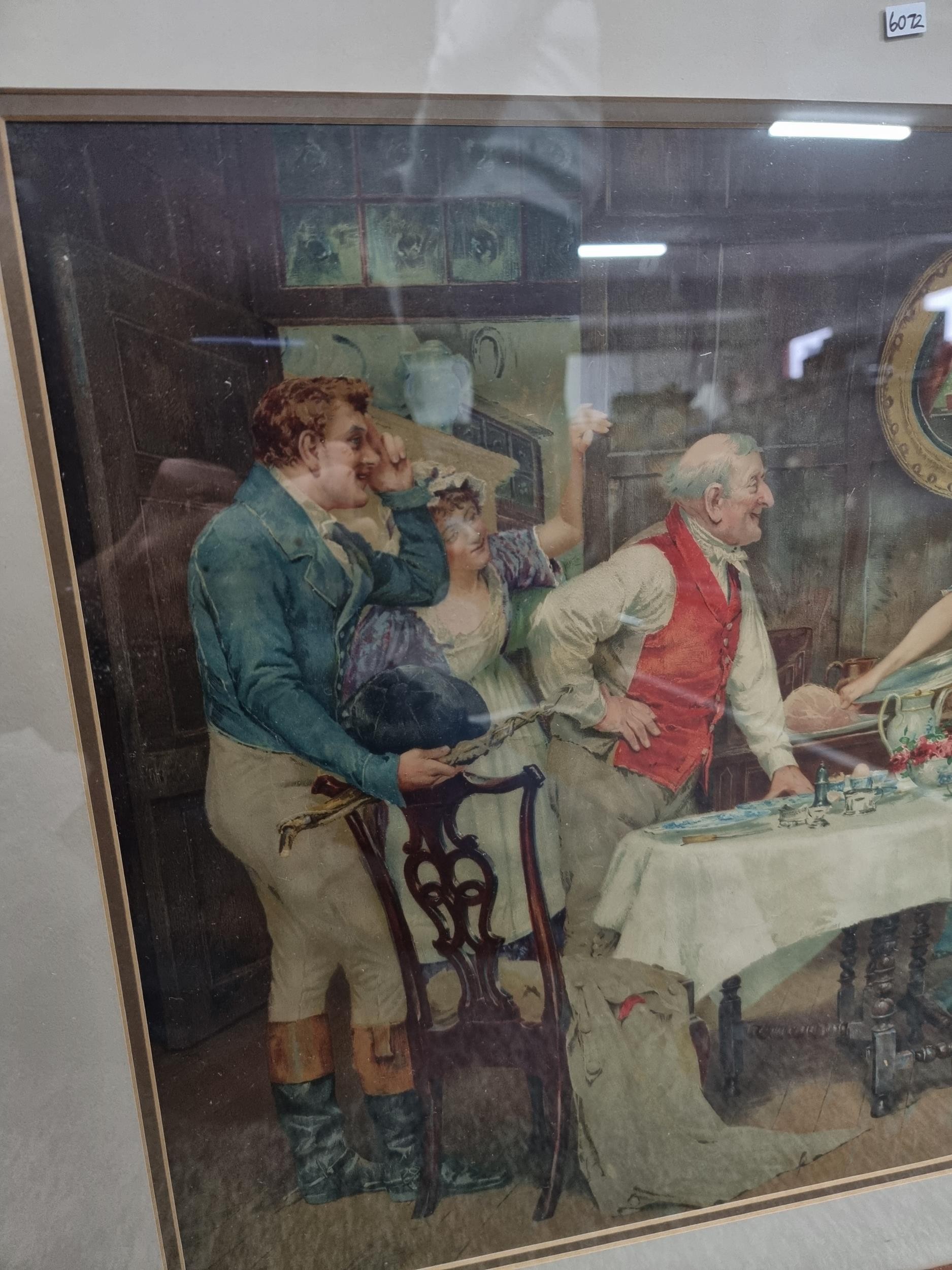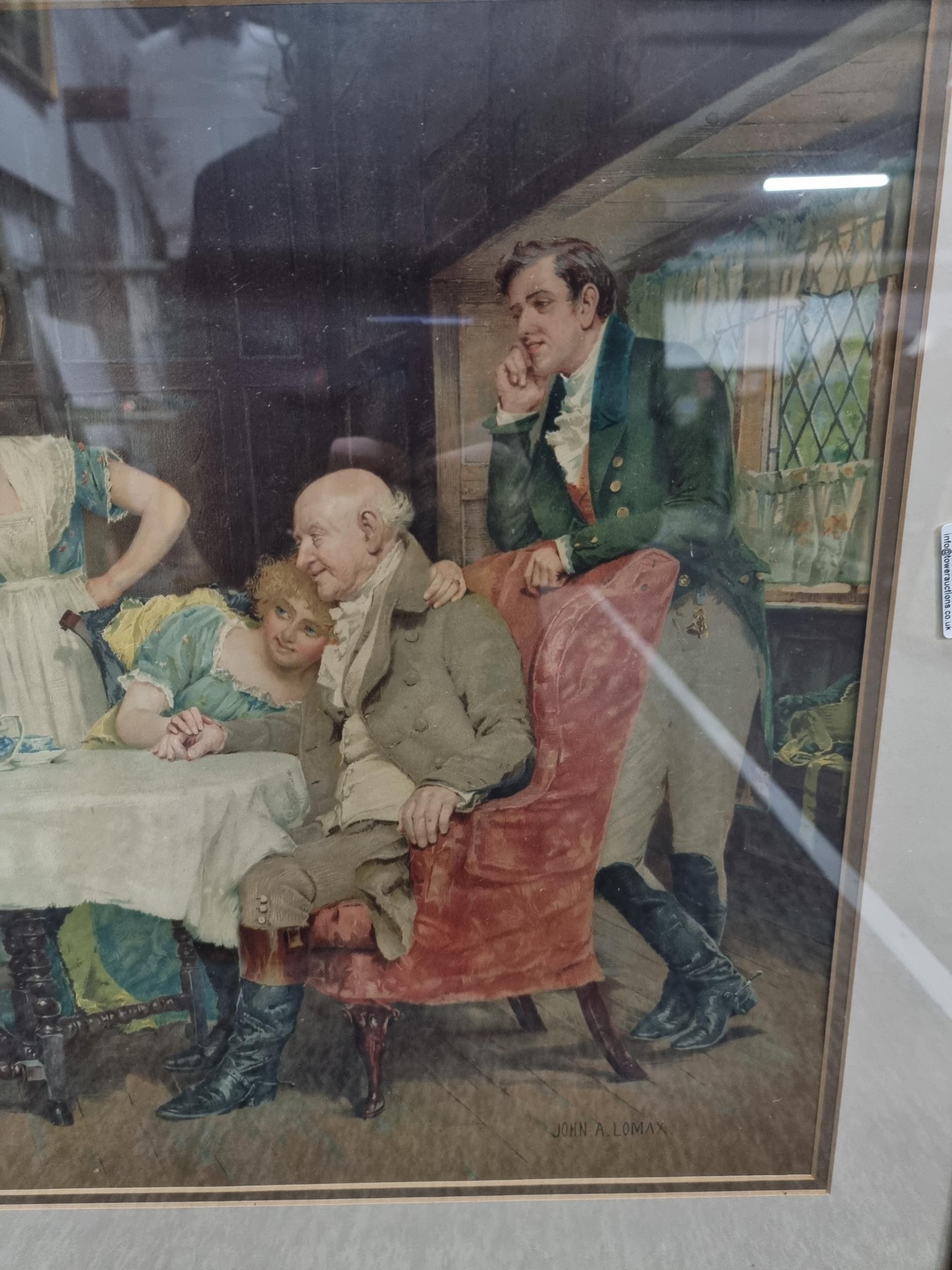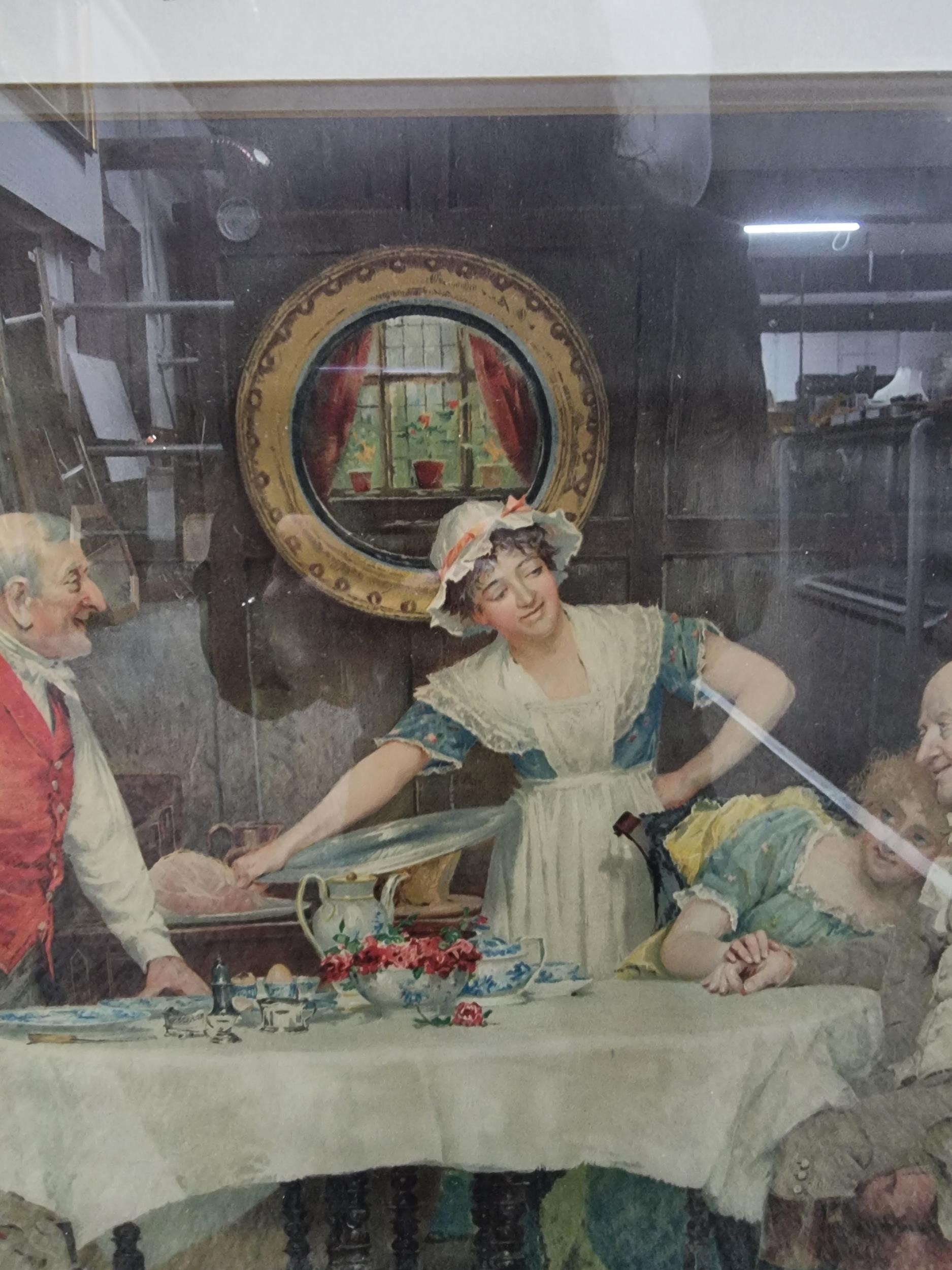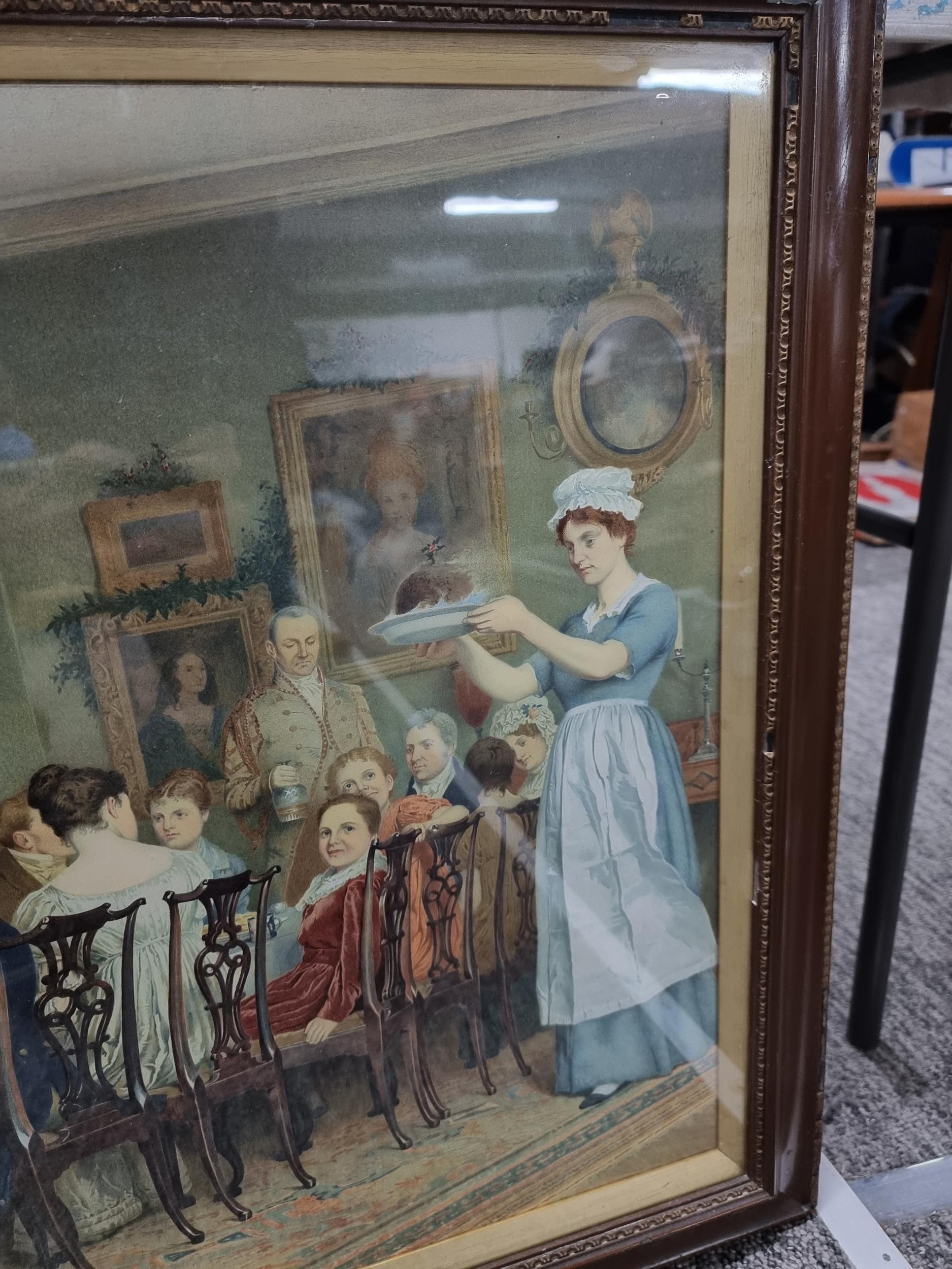 2 antique framed and glazed prints including 1 by C Green titled "Christmas comes but once a year" part of the Pears advertising series along with a John A Lomax print titled reconciliation, the Pears print requires attention to the frame, largest measures 64cm x 82.