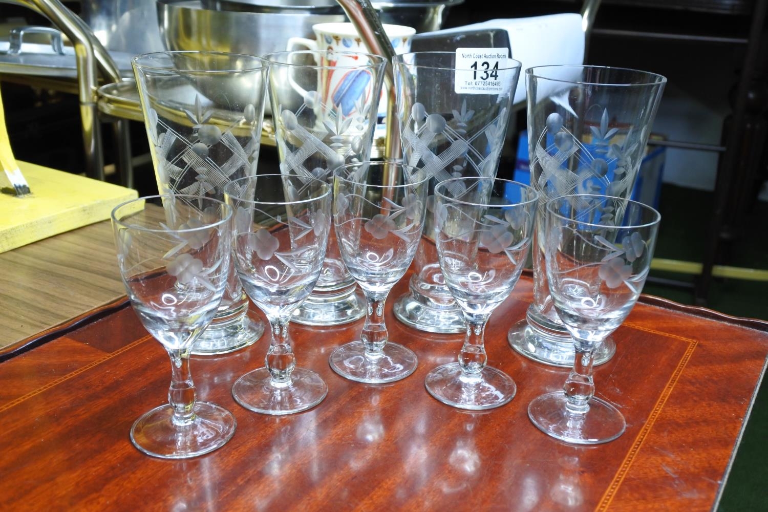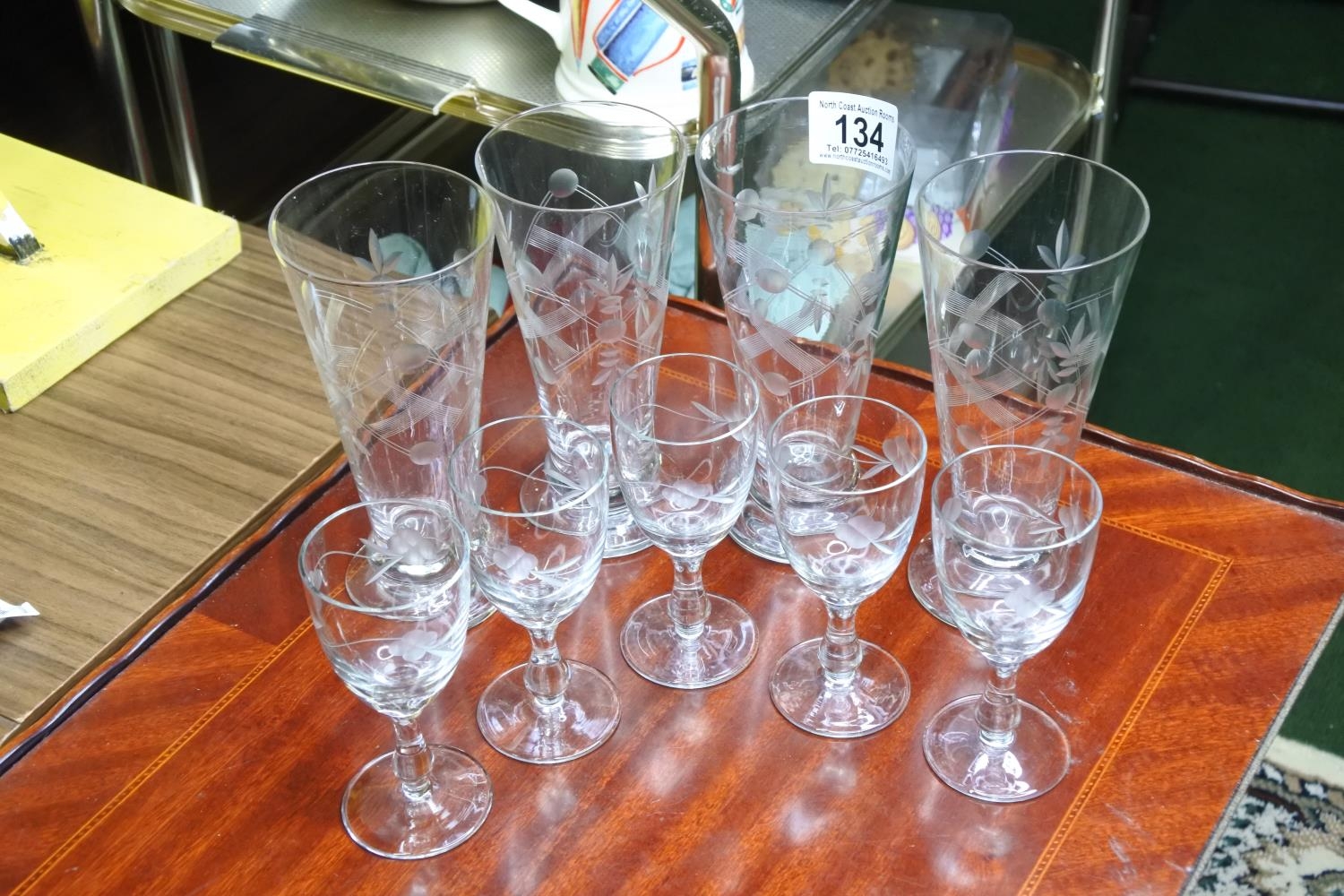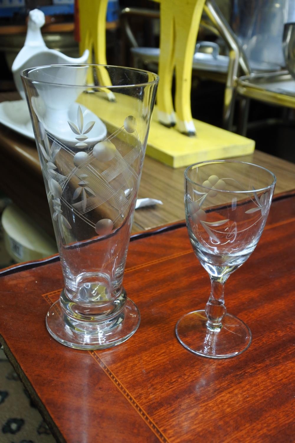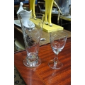 A collection of vintage edge-glass drinking glasses.