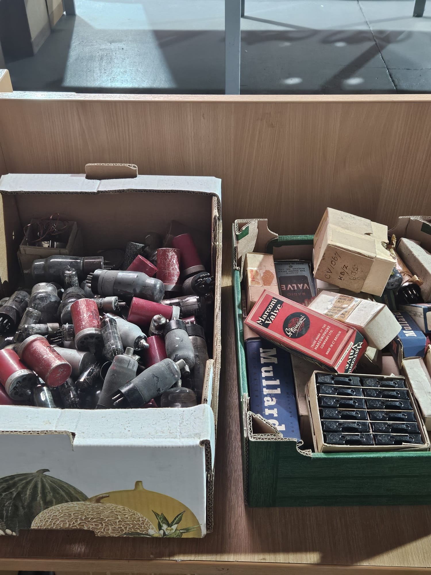Two early turntables to include a Garrard RC65 and a quantity of radio valves - some boxed and some lose and used