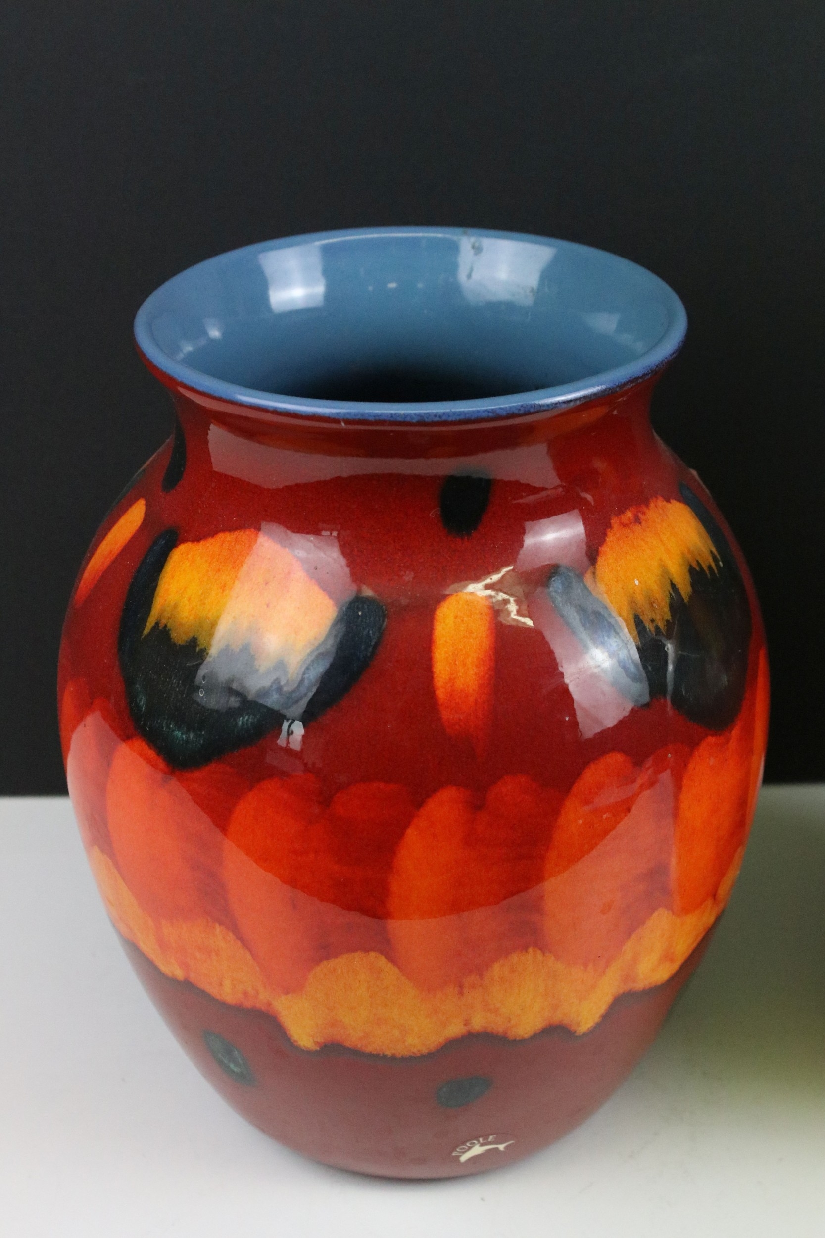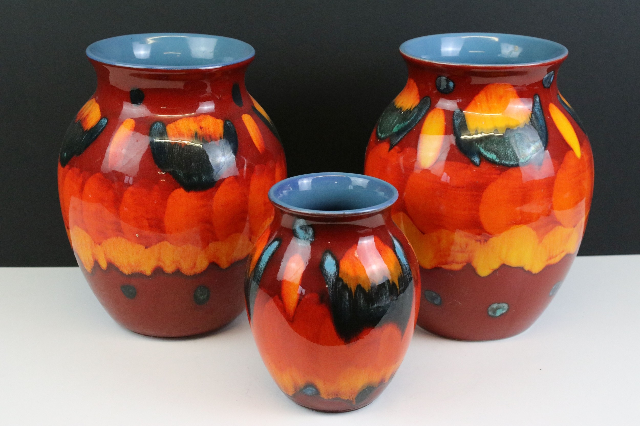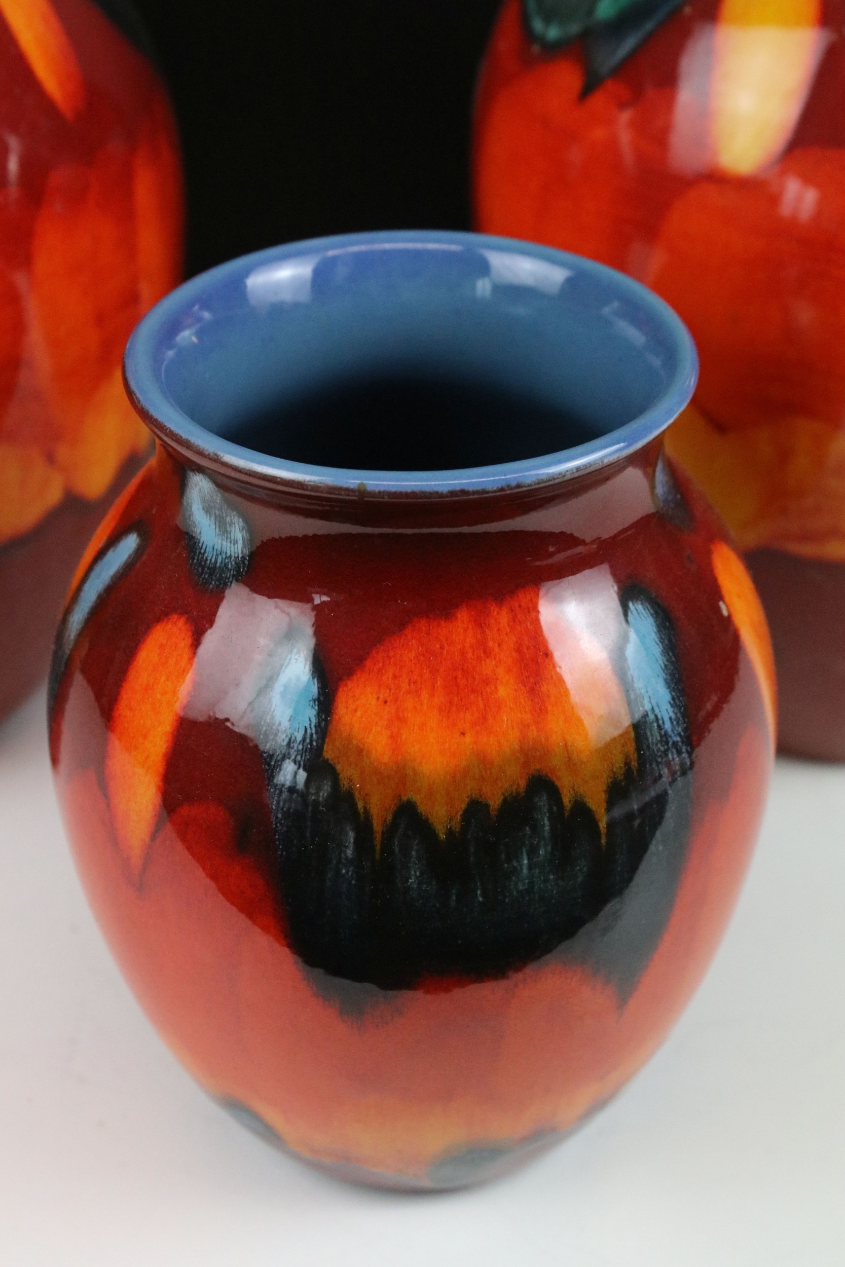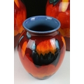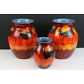 Pair of Poole pottery bulbous vases, in volcanic glaze, H 25cm, together with a smaller Poole pottery volcanic vase, H 16.5cm (3)