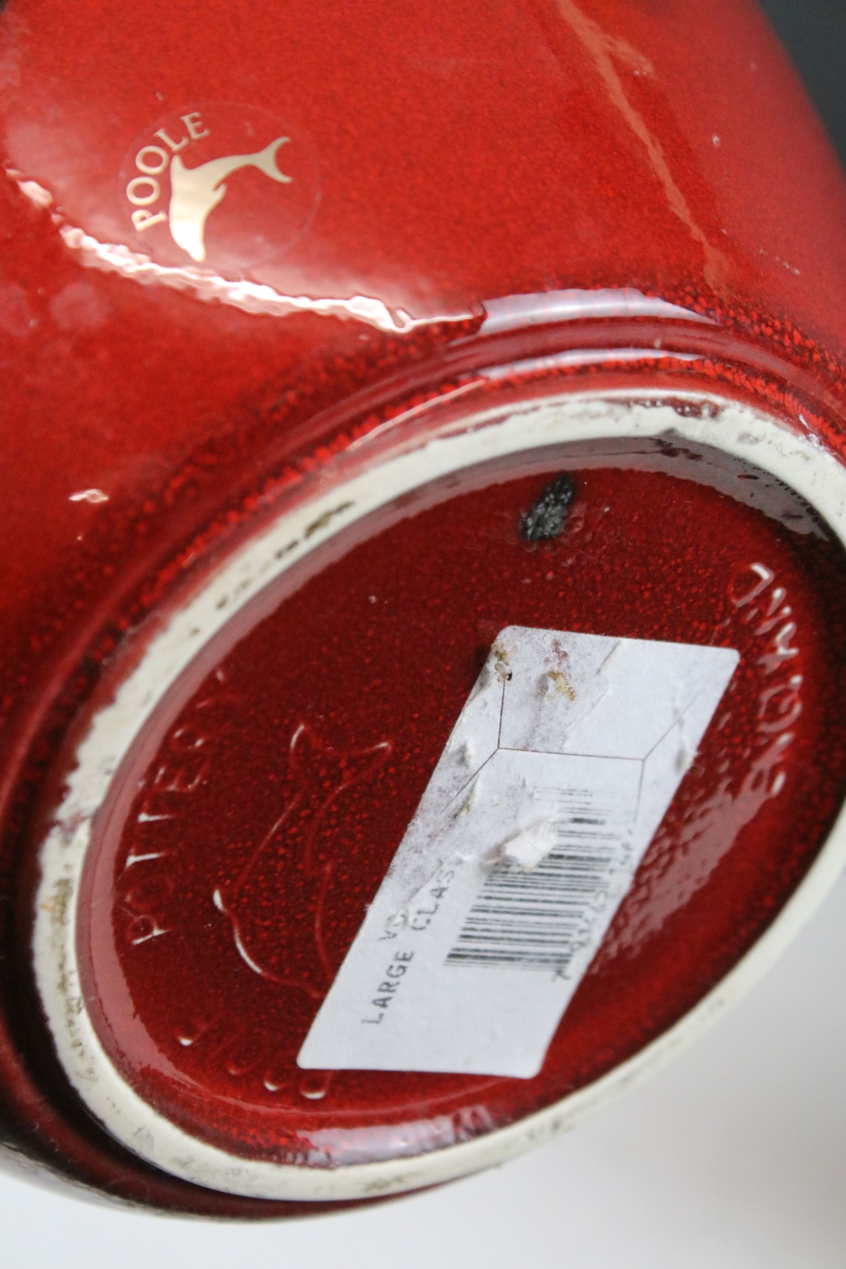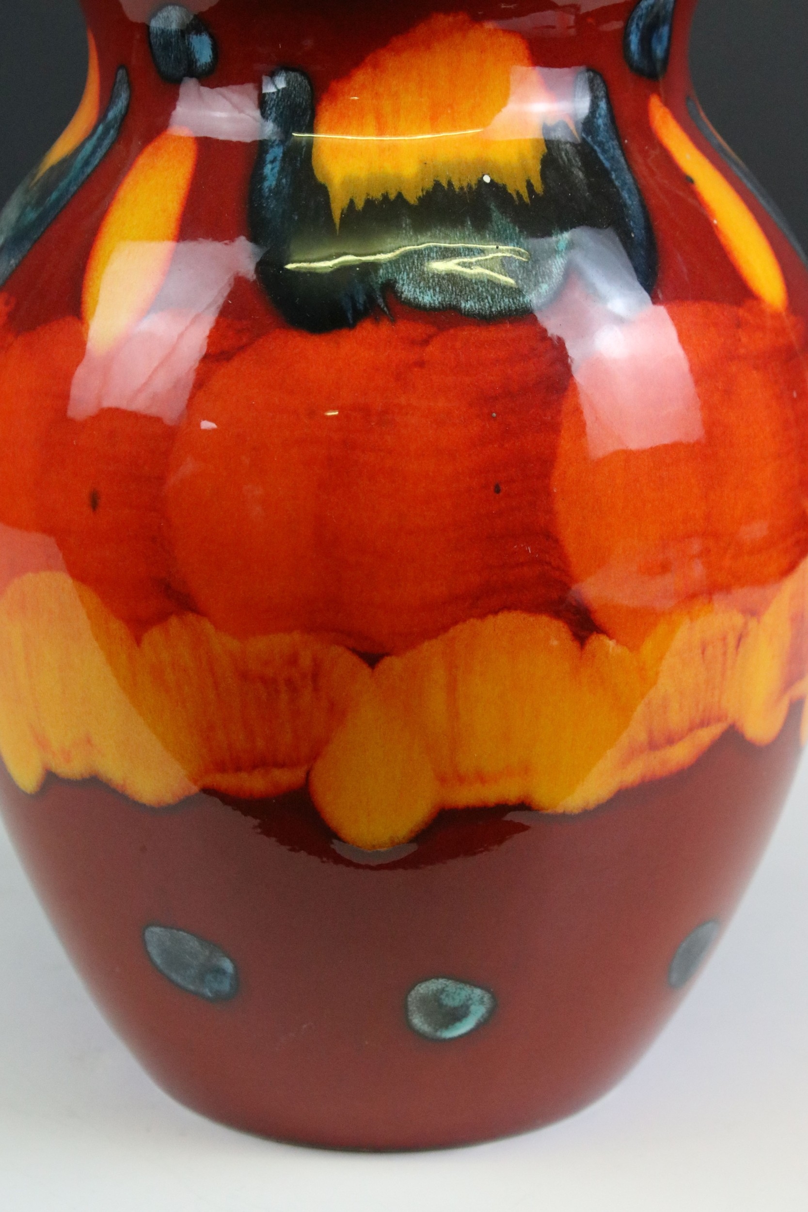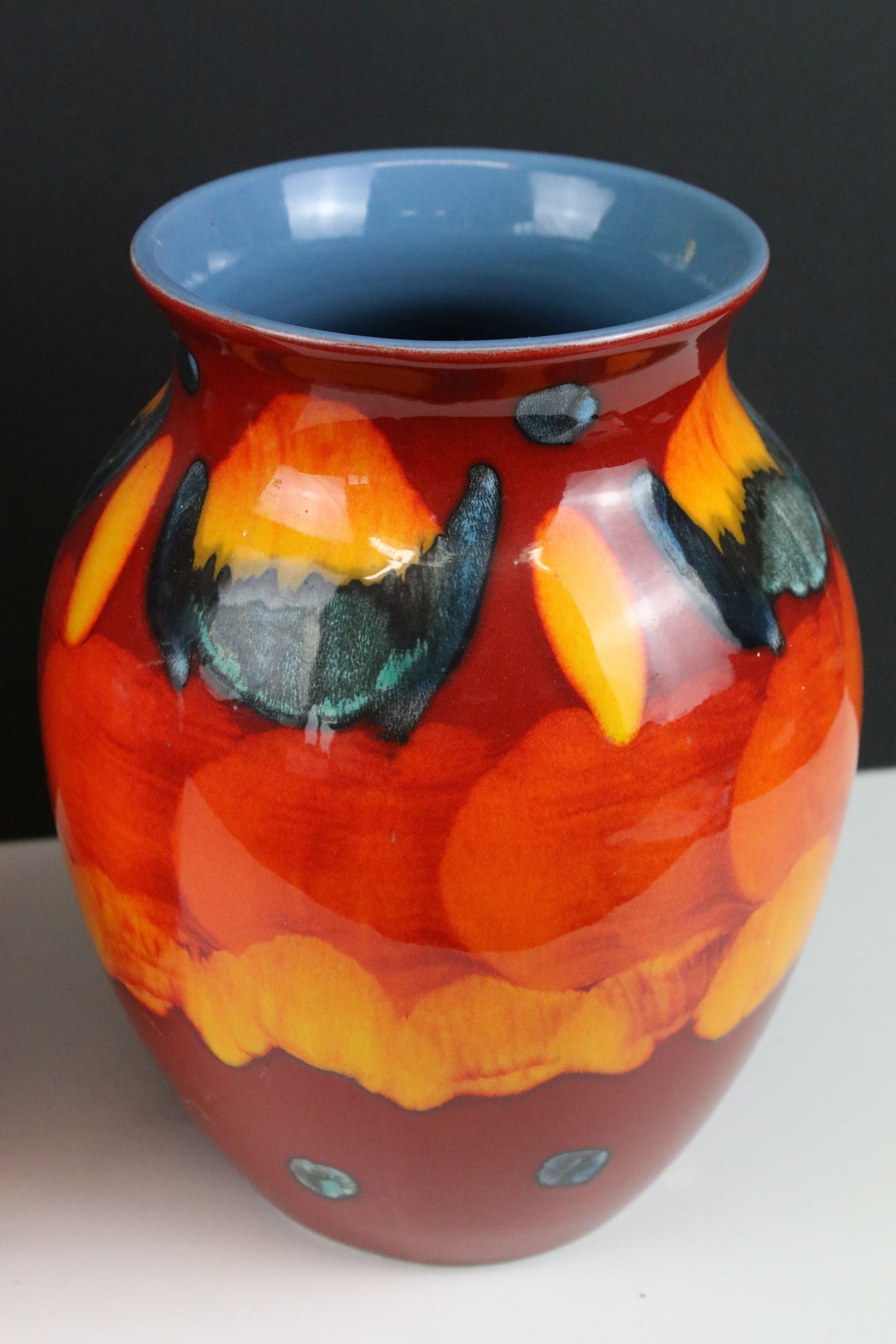 Pair of Poole pottery bulbous vases, in volcanic glaze, H 25cm, together with a smaller Poole pottery volcanic vase, H 16.5cm (3)