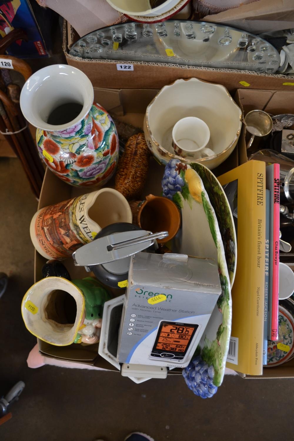 BURLINGTON TOBY JUG, ORIENTAL VASE, CHARLES WELLS ADVERTISING WATER JUG, OREGAN ADVANCED WEATHER STATION, ETC