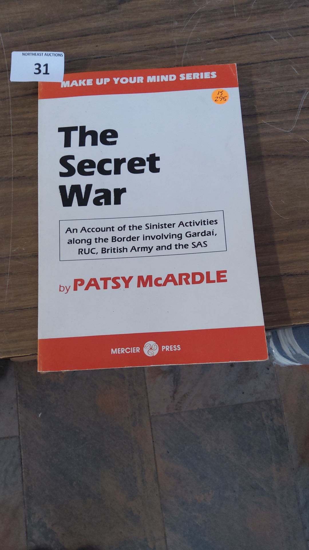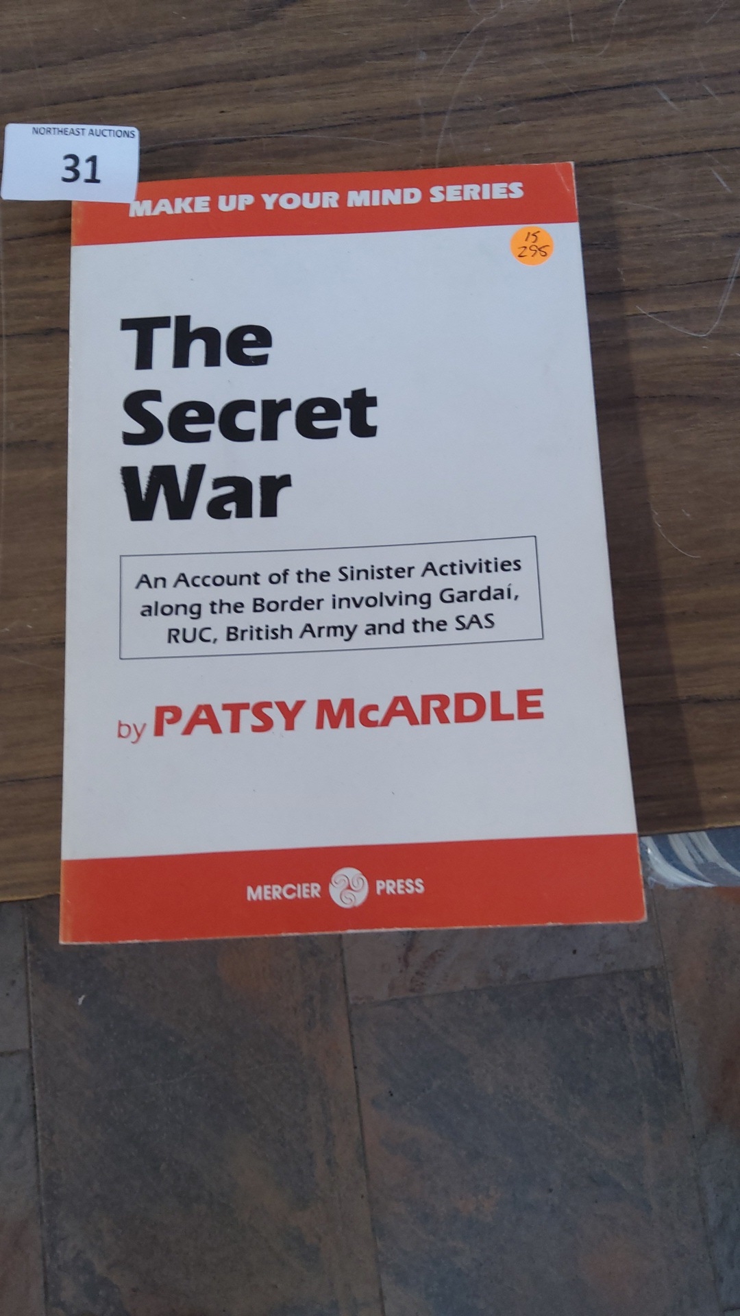 Paperback: The Secret War by Patsy McArdle, Mercier Press “Make Up Your Mind” series, c.1980s; investigative narrative on border operations involving Gardaí, RUC, British Army and SAS.