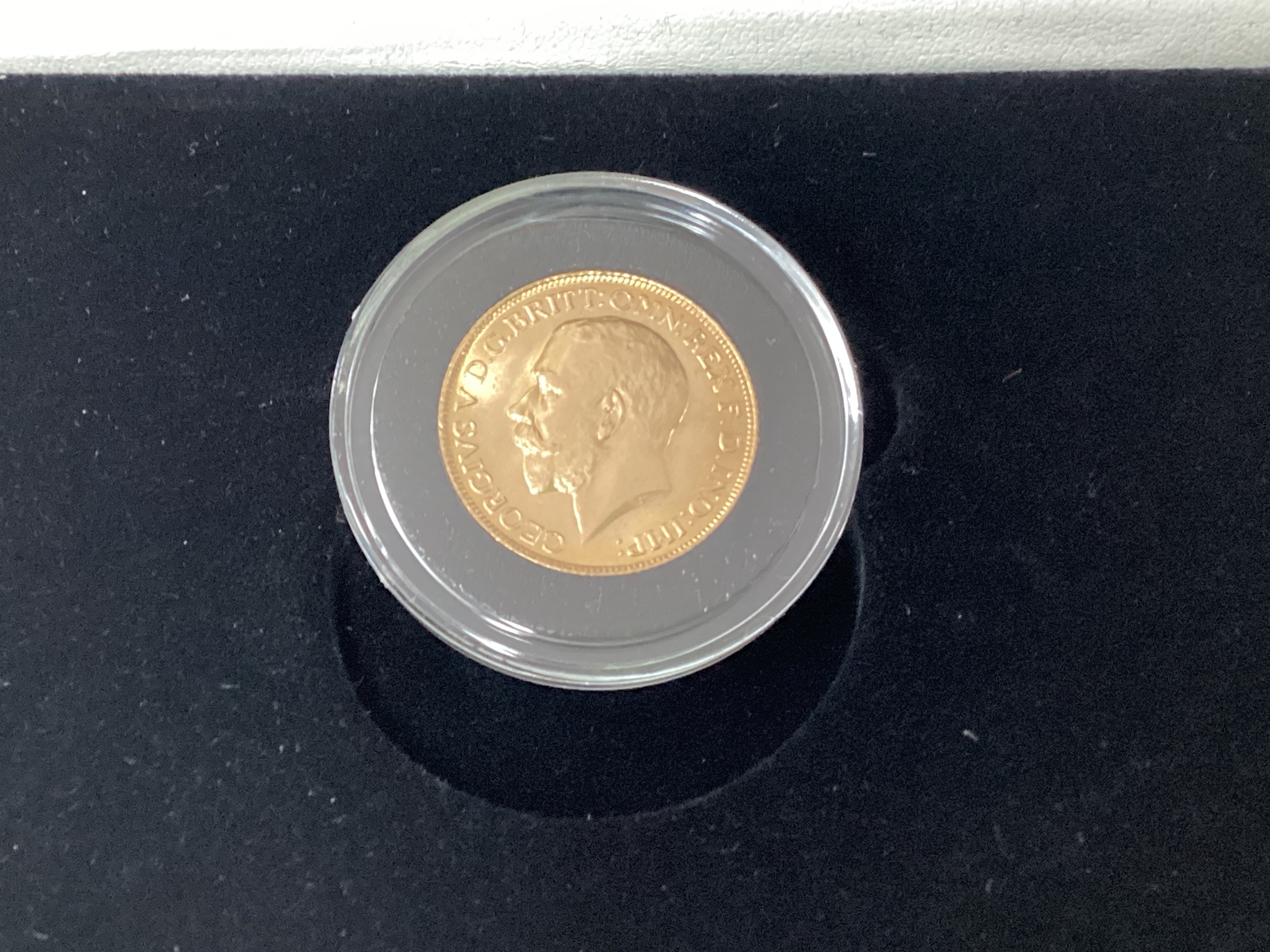 1925 London Mint George V Gold Sovereign, cased with a certificate of authenticity.