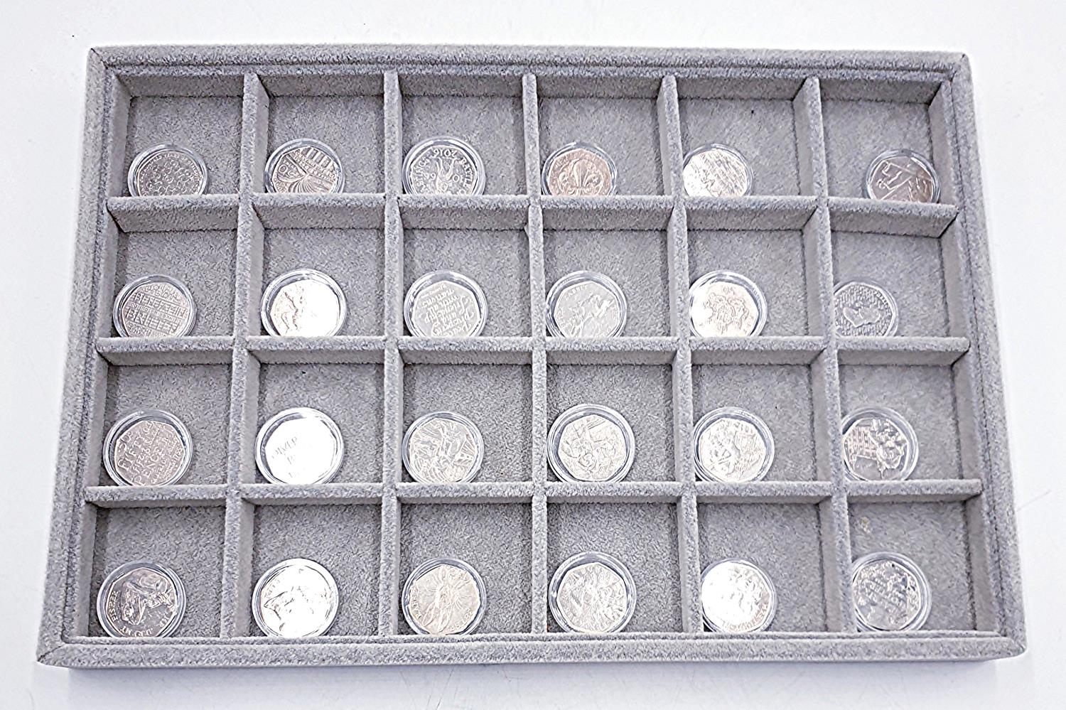 COIN COLLECTORS TRAY CONTAINING 24 50 Pence COMMEMERATIVE COINS (All Cased)