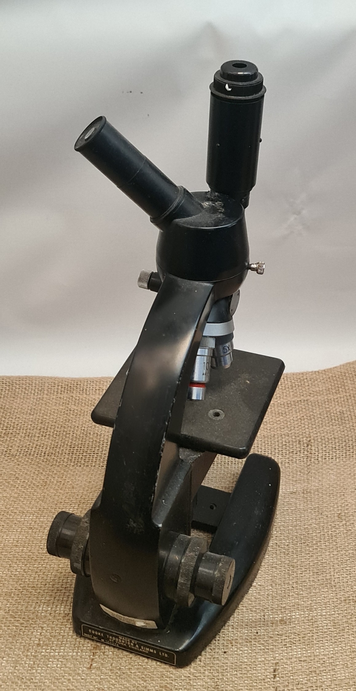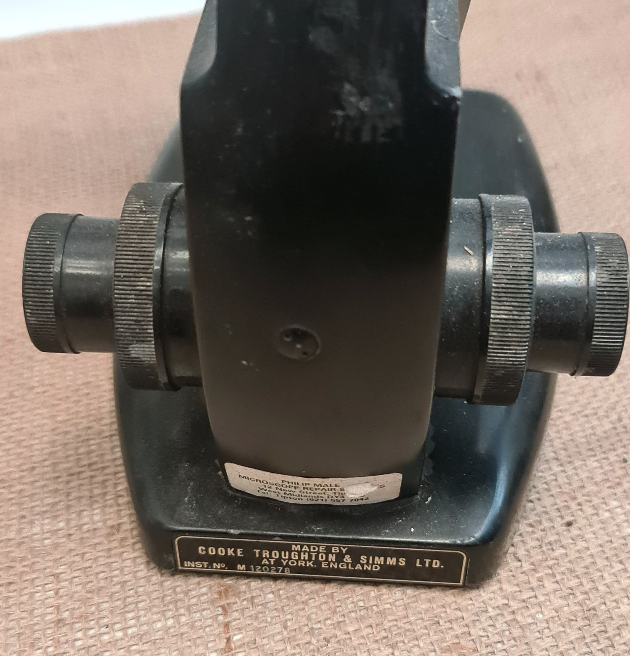 Vintage Cooke Troughton & Simms Ltd M120278 Lab Microscope. Measures 34cm tall. Shipping is available. Please ask for a quote before bidding. Where possible we combine shipping costs. Remember, if you are the highest bidder above reserve on this Lot you have bought the item and are legally responsible for the item. Viewing is recommended in either person or via video link. Contact us to arrange.