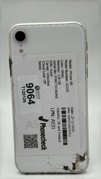APPLE IPHONE XR / A2105 / 128GB / IMEI: 356453106331912 / I-CLOUD UNLOCKED