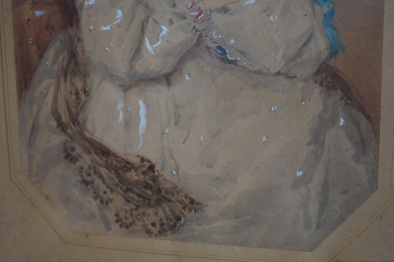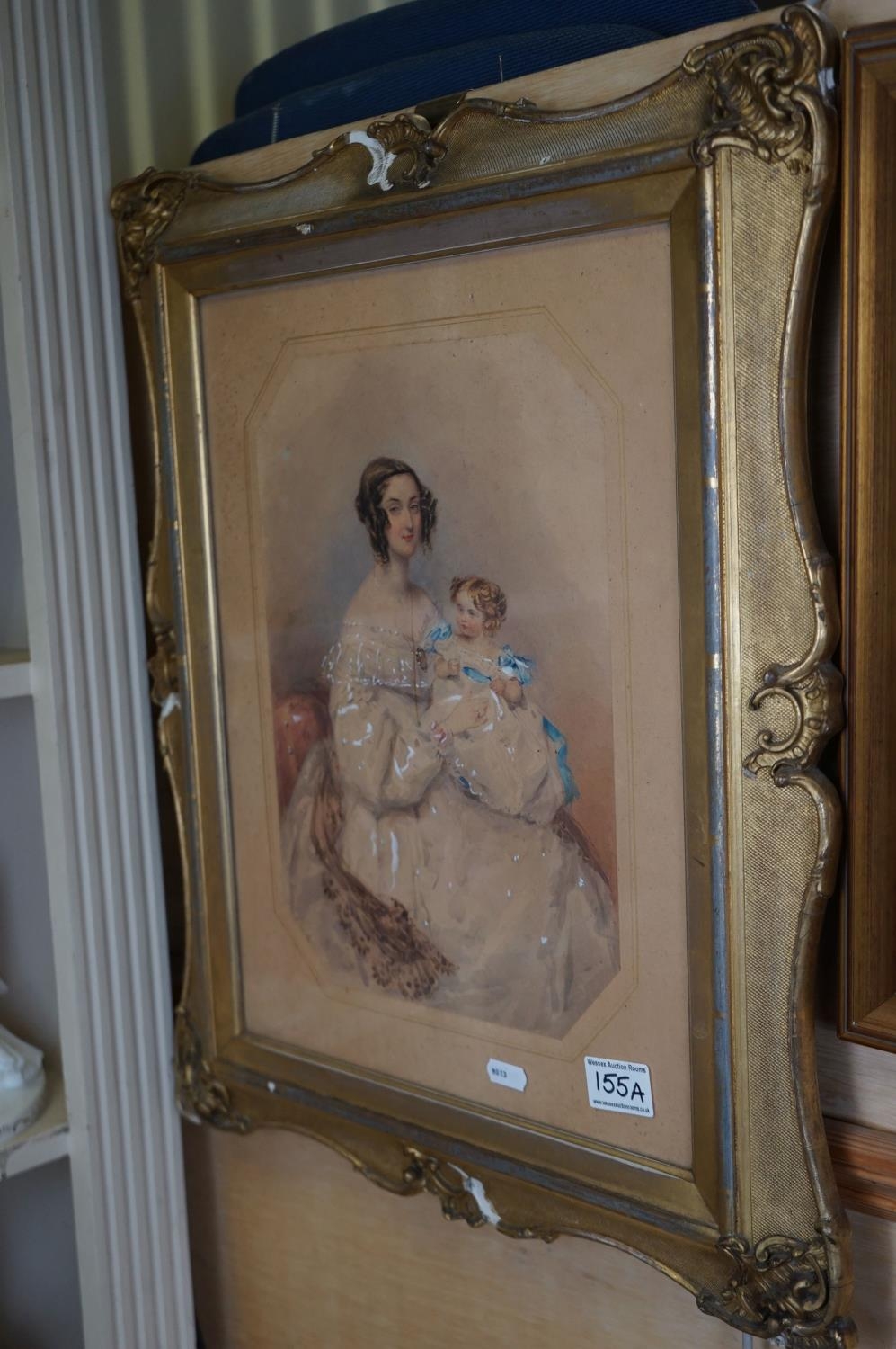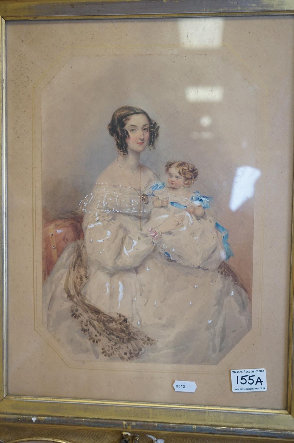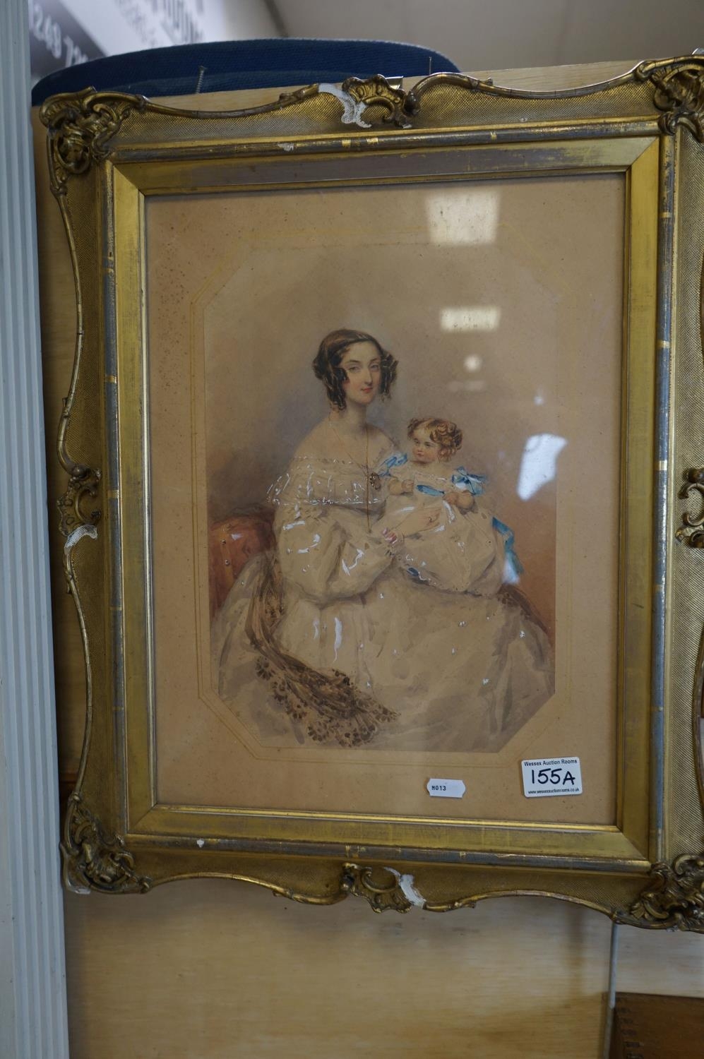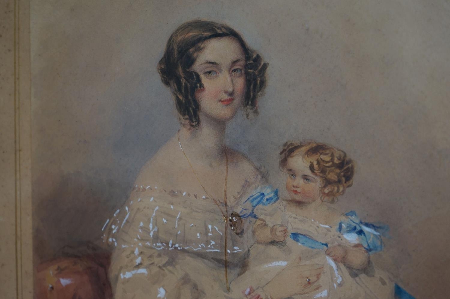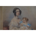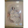 Early 19th century English School Watercolour Portrait of a Lady holding a Child, unsigned, image 23cms x 33cms, gilt framed and glazed