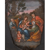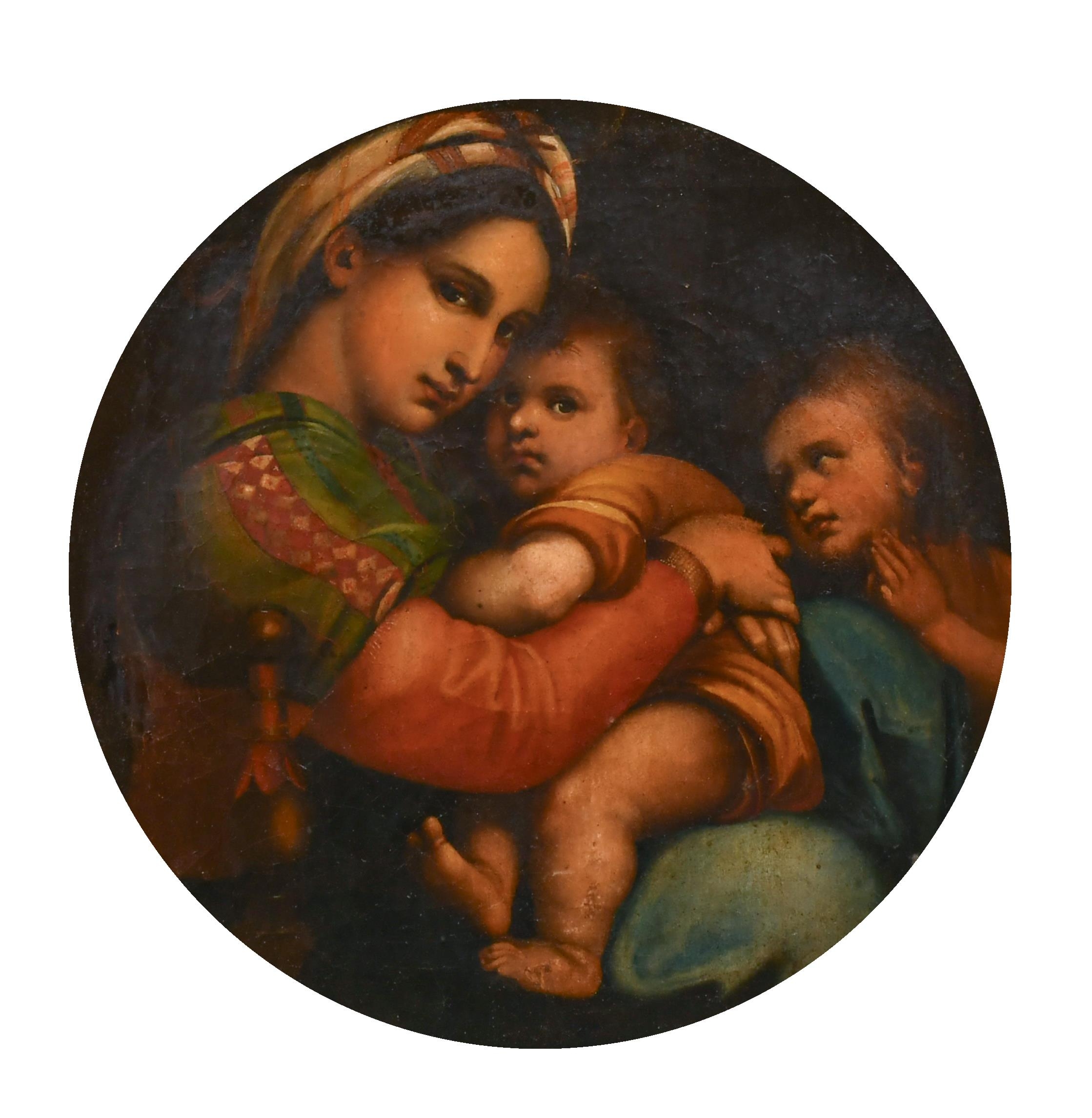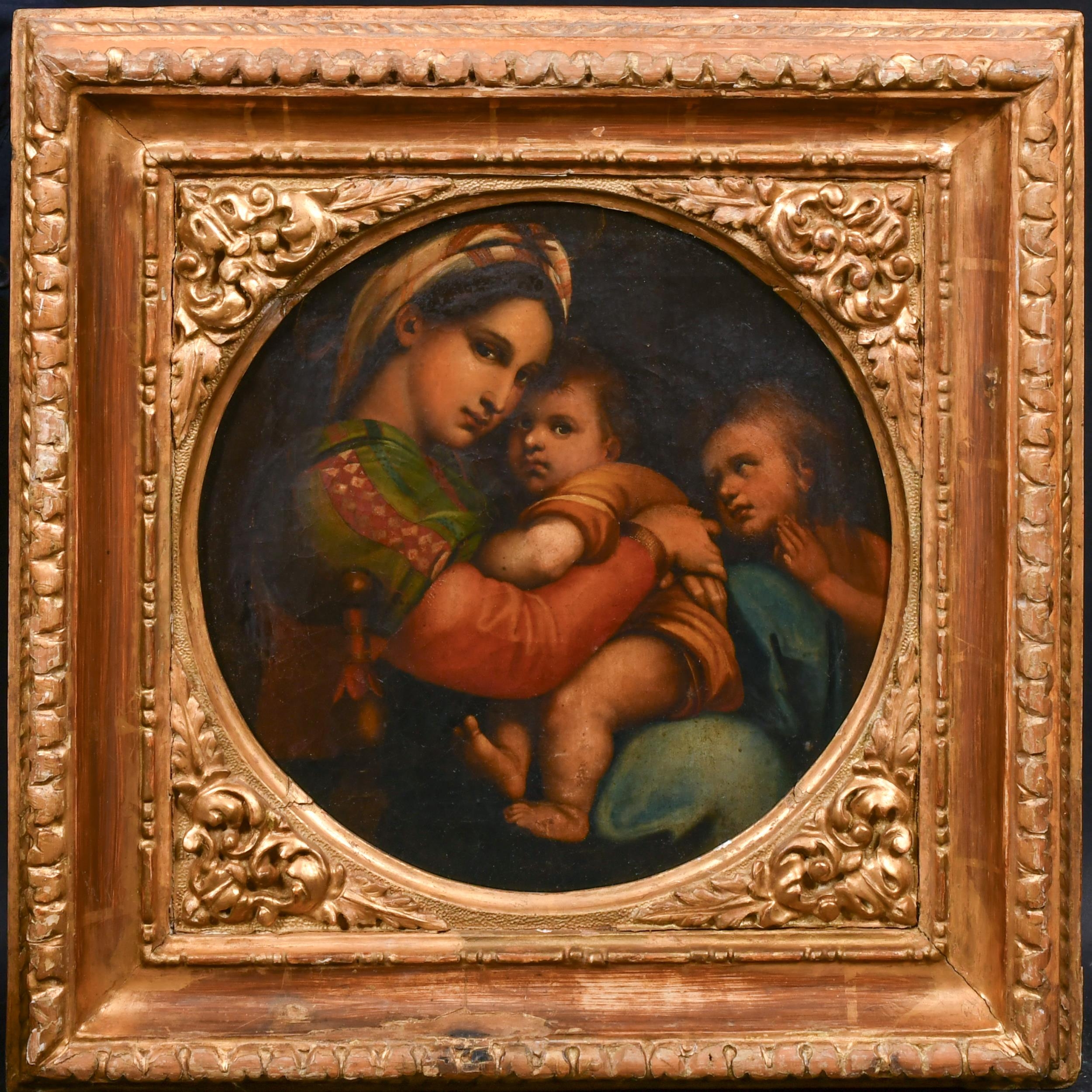 After Raffaello Sanzio da Urbino 'Raphael' (1483-1520) Italian. The Madonna della Sedia, Oil on canvas, In a fine carved giltwood frame, Painted circular 13" x 12" (30.5 x 30.5cm)