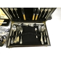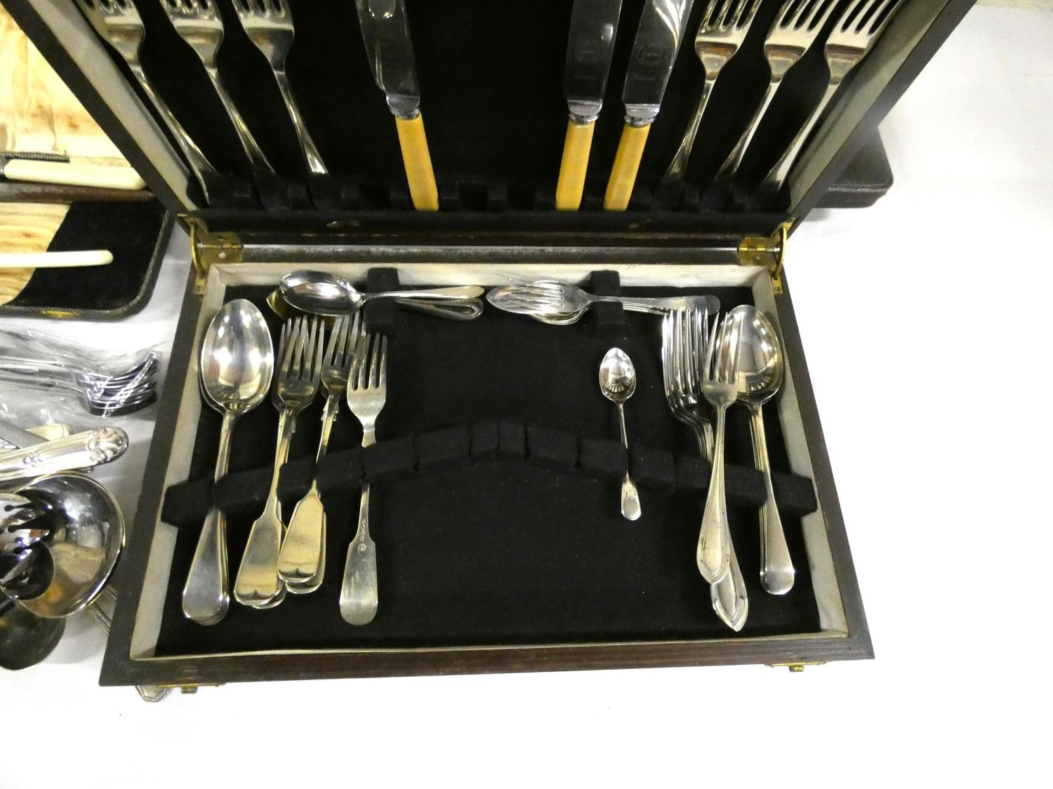 Large box of cased vintage cutlery.