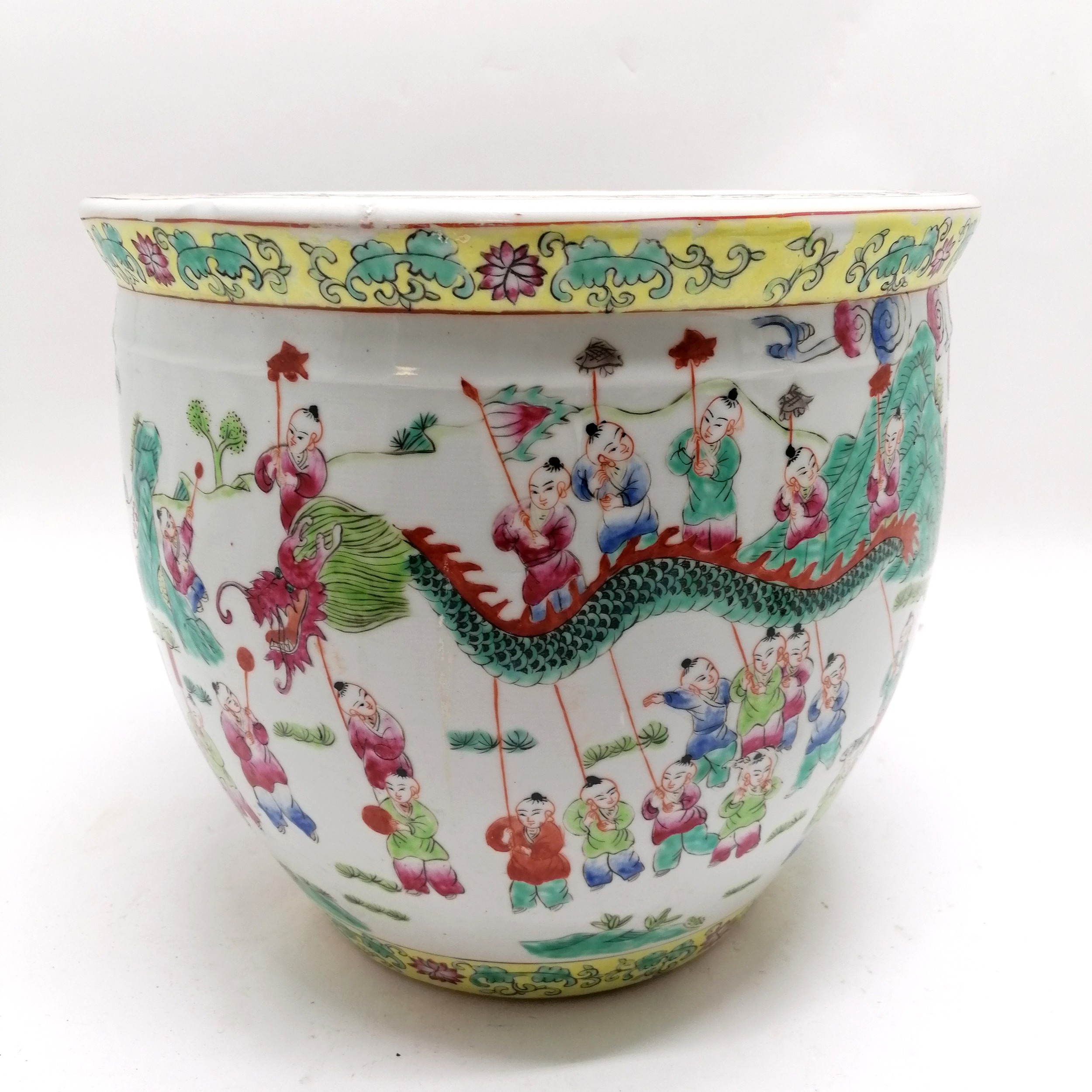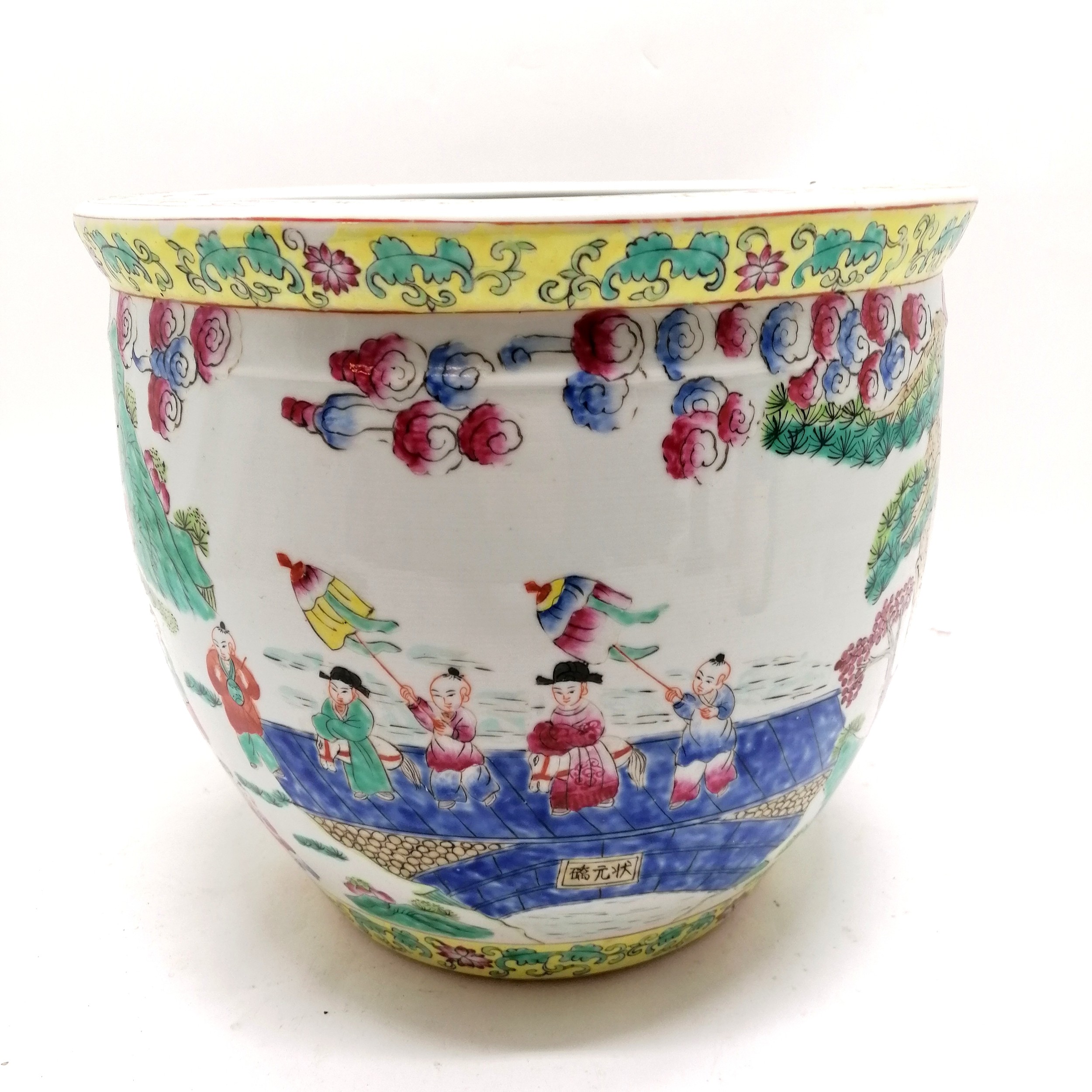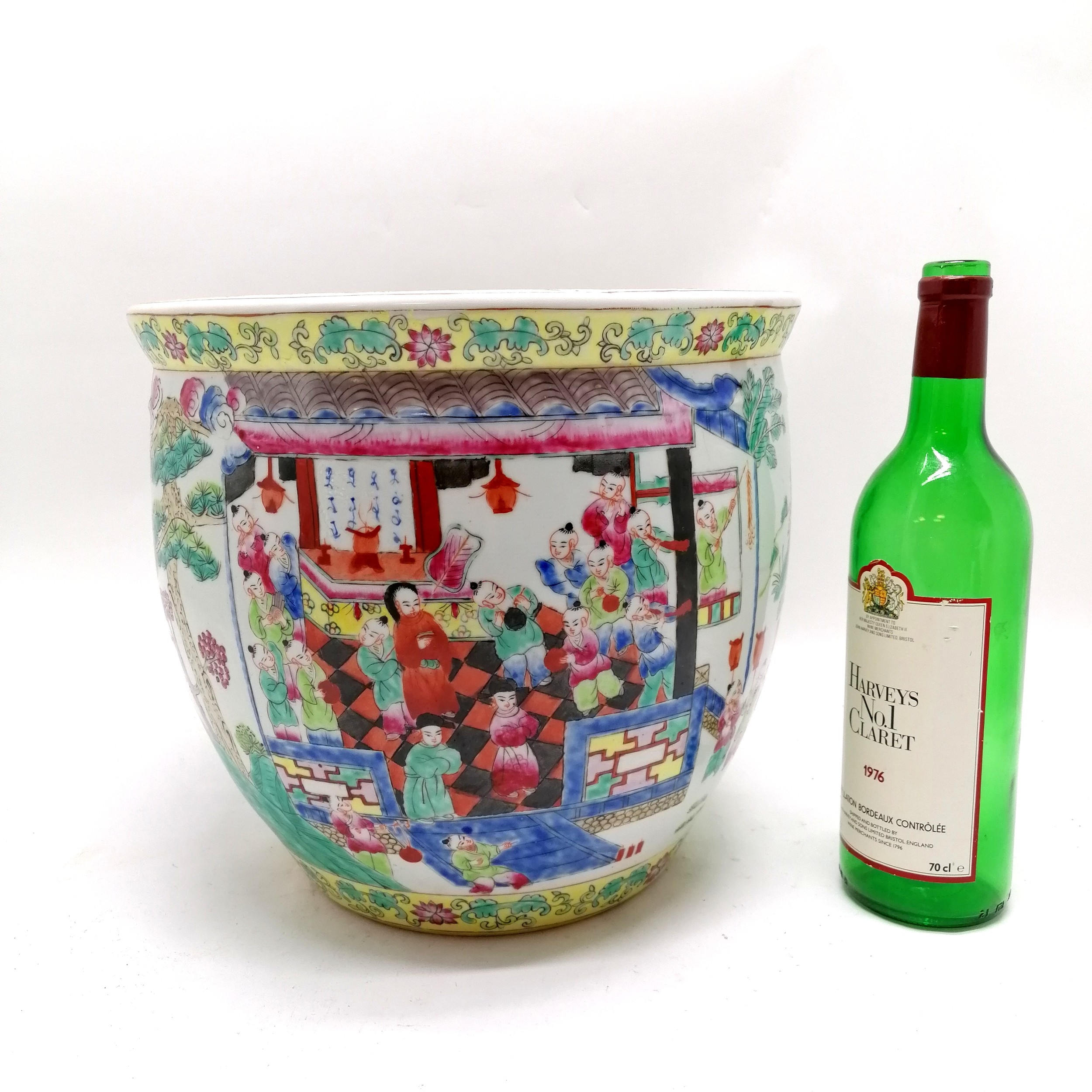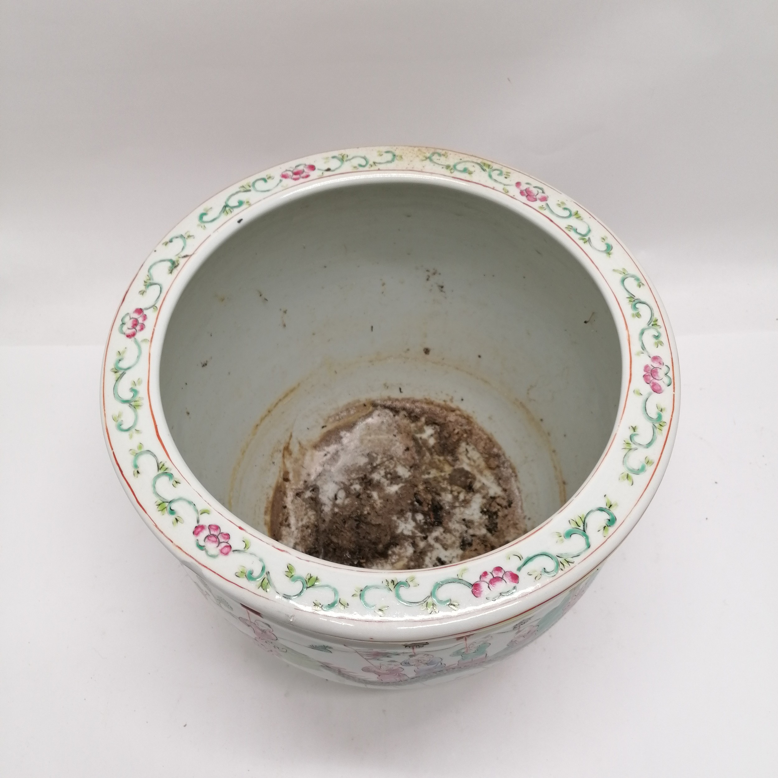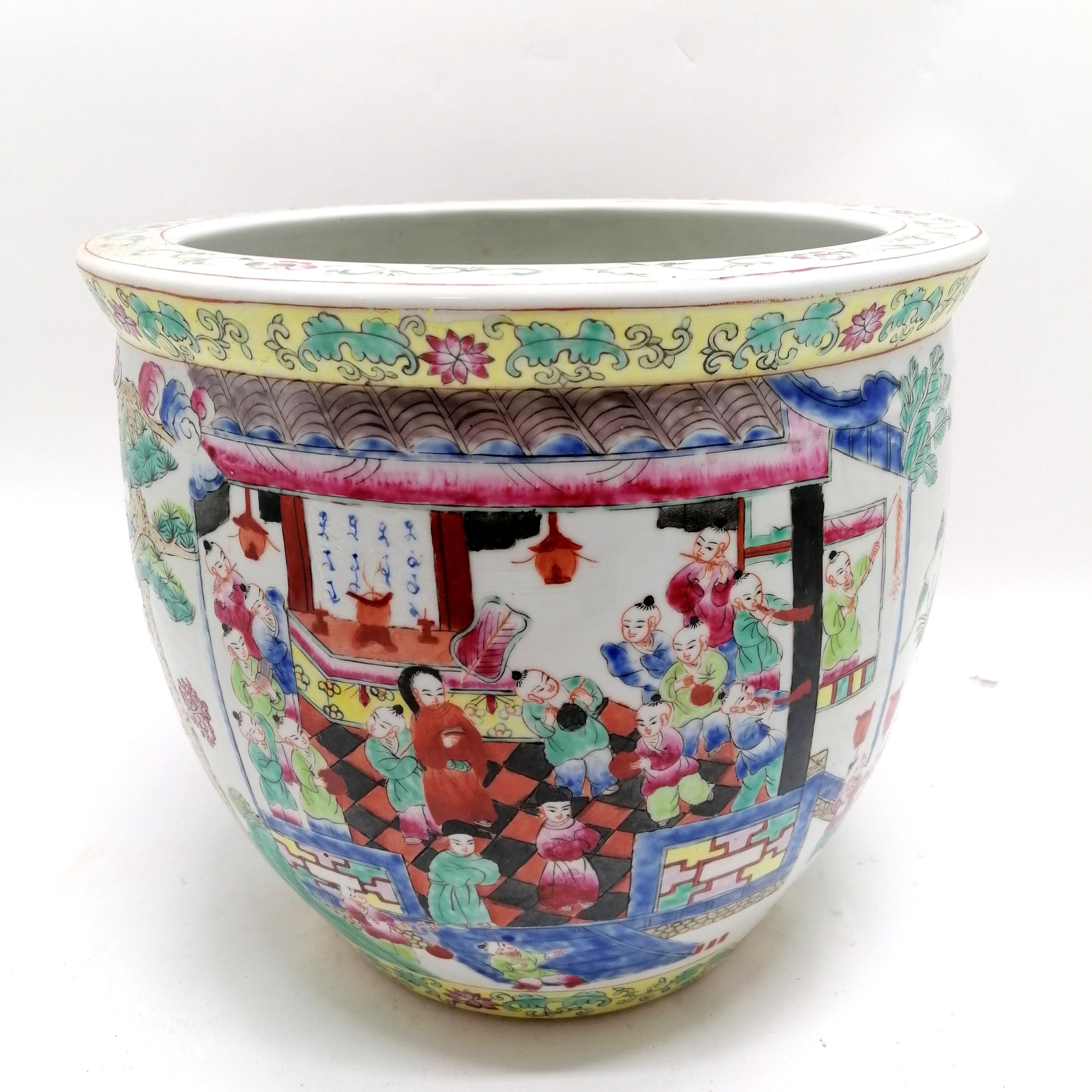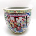 Antique Chinese famille Rose Jardiniere planter 26cm diameter x 30cm high - no obvious damage