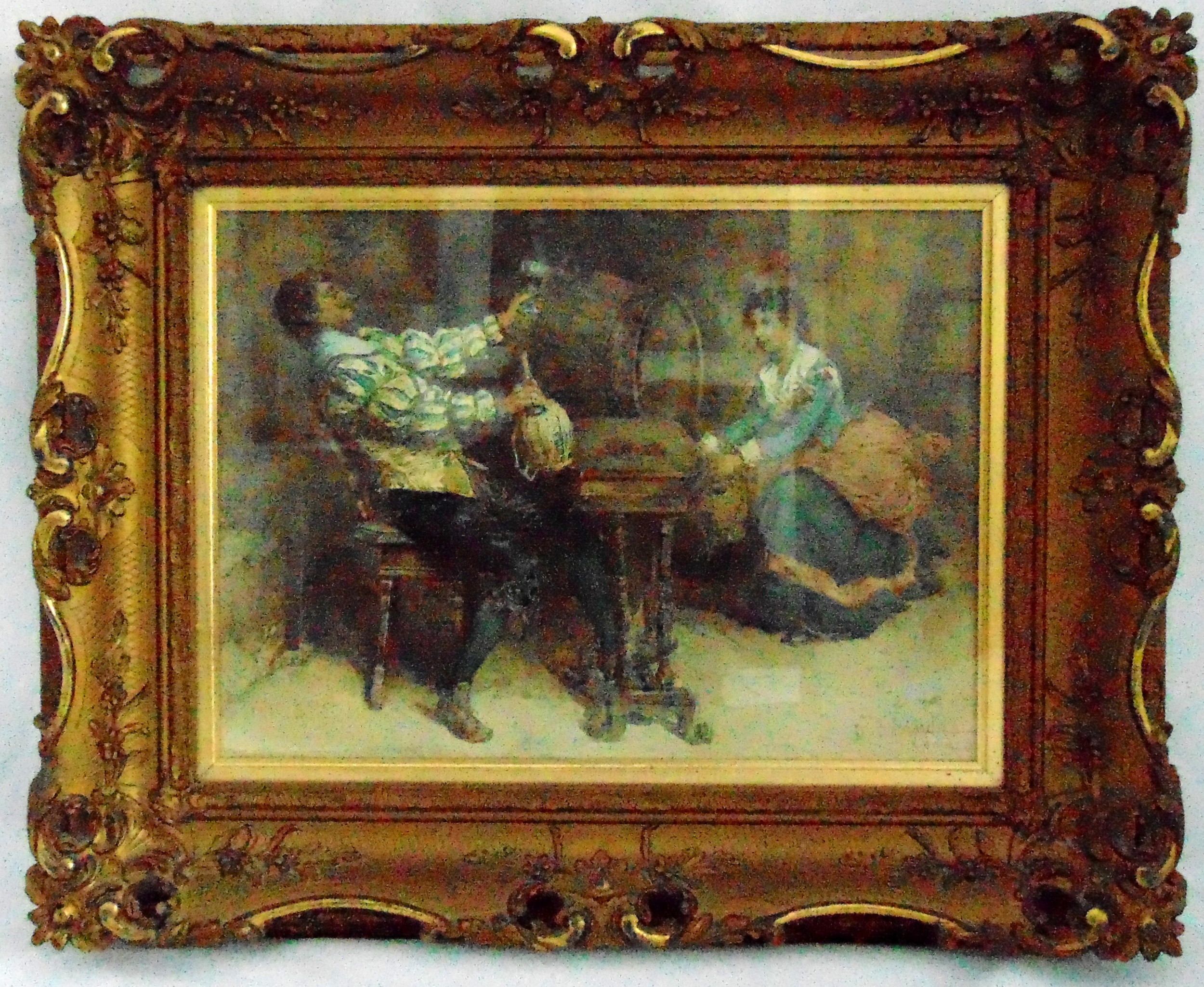 Danielle Bucciarelli framed and glazed watercolour titled Toasting The Serving Maid, signed bottom right, label to verso, to include documents, 26 x 36.5cm