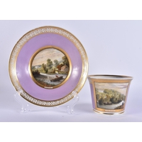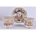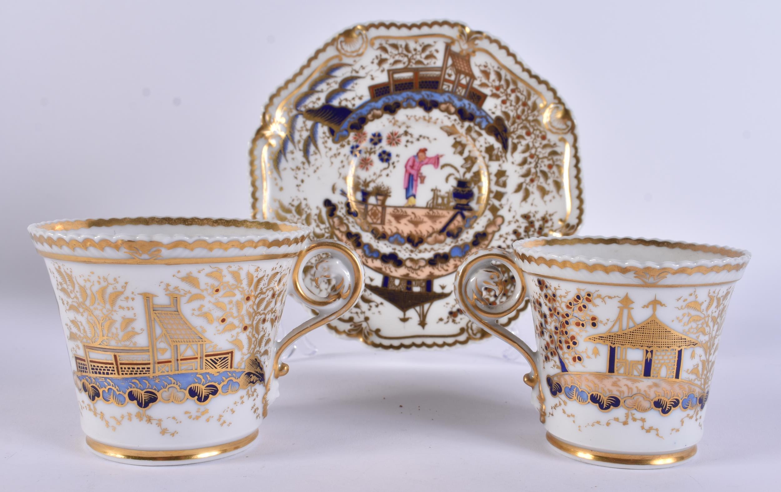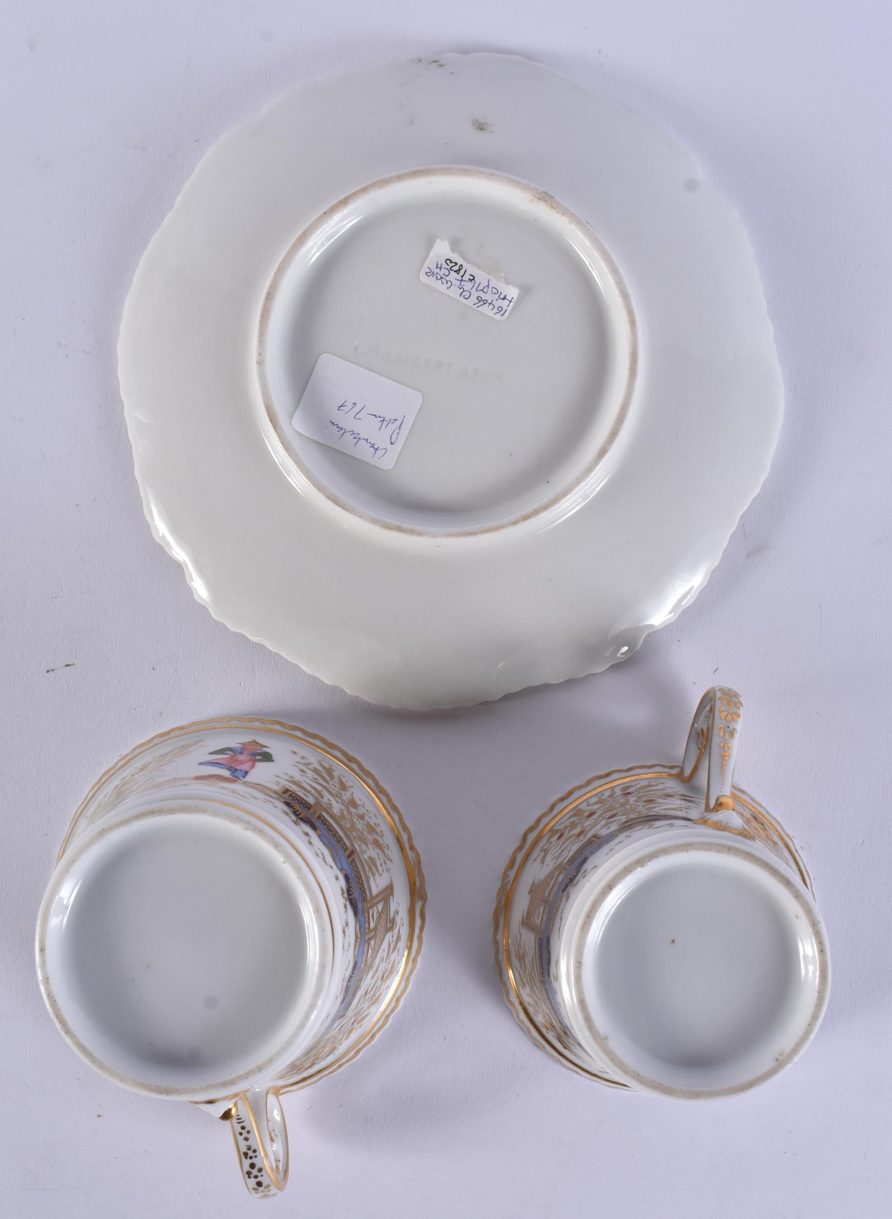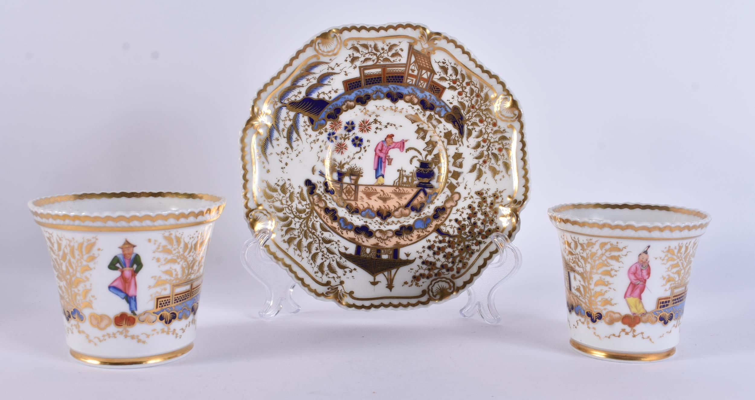 A RARE EARLY 19TH CENTURY CHAMBERLAINS WORCESTER TRIO painted with Chinese figures. 15 cm wide. (3)