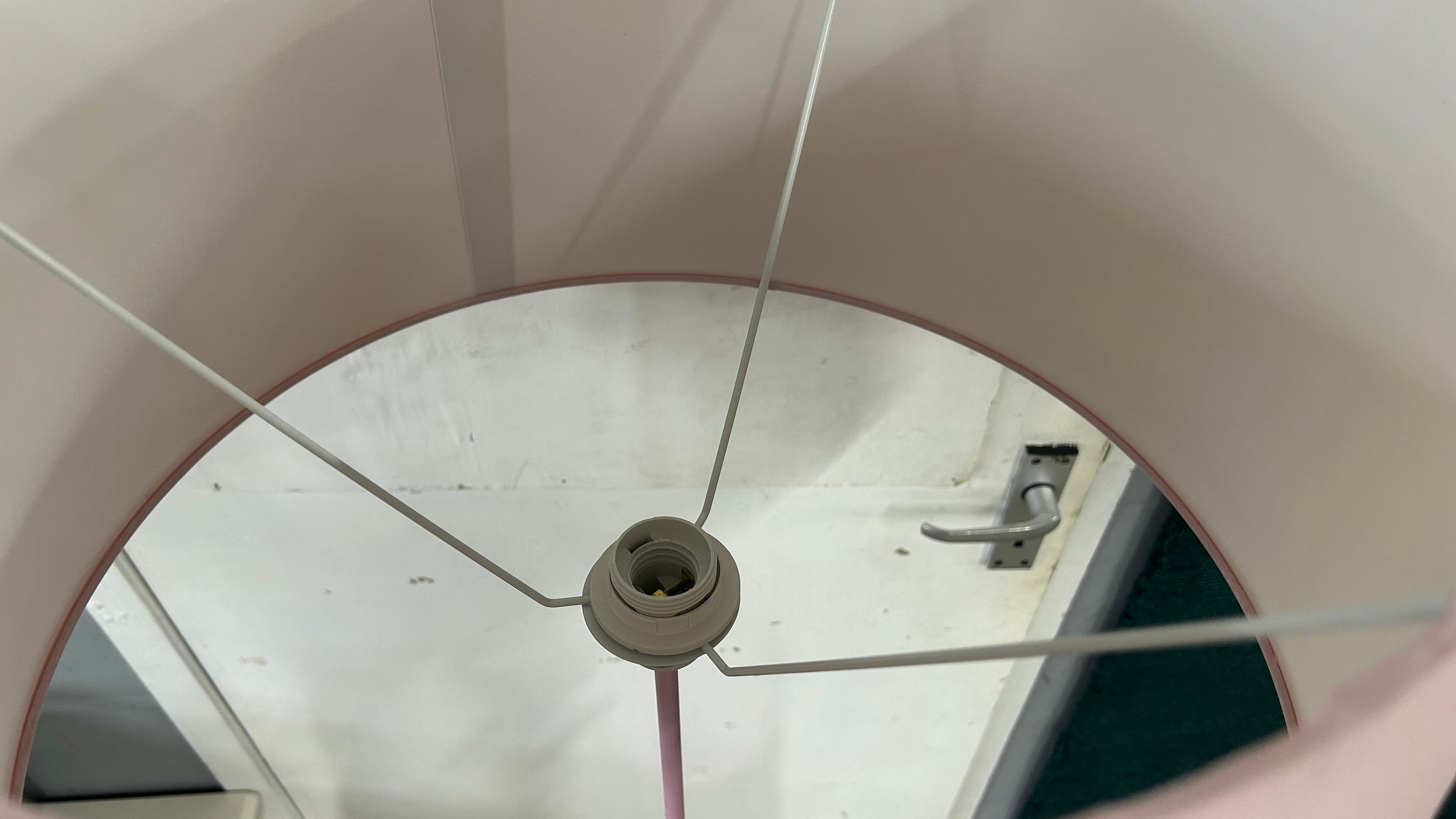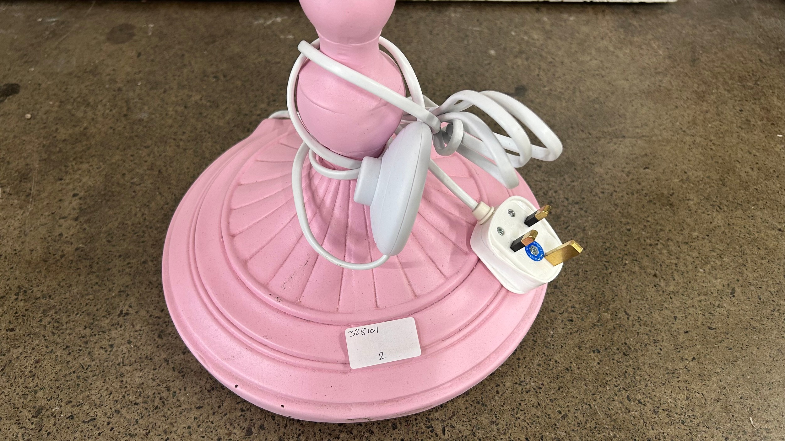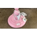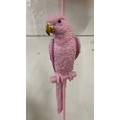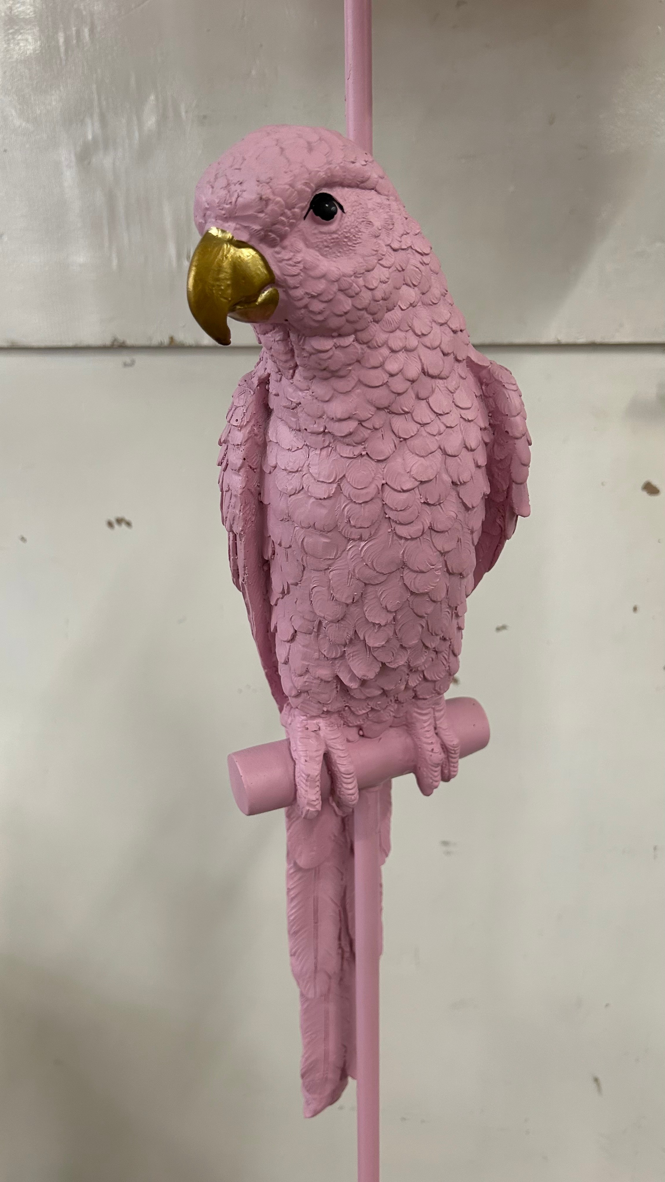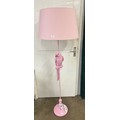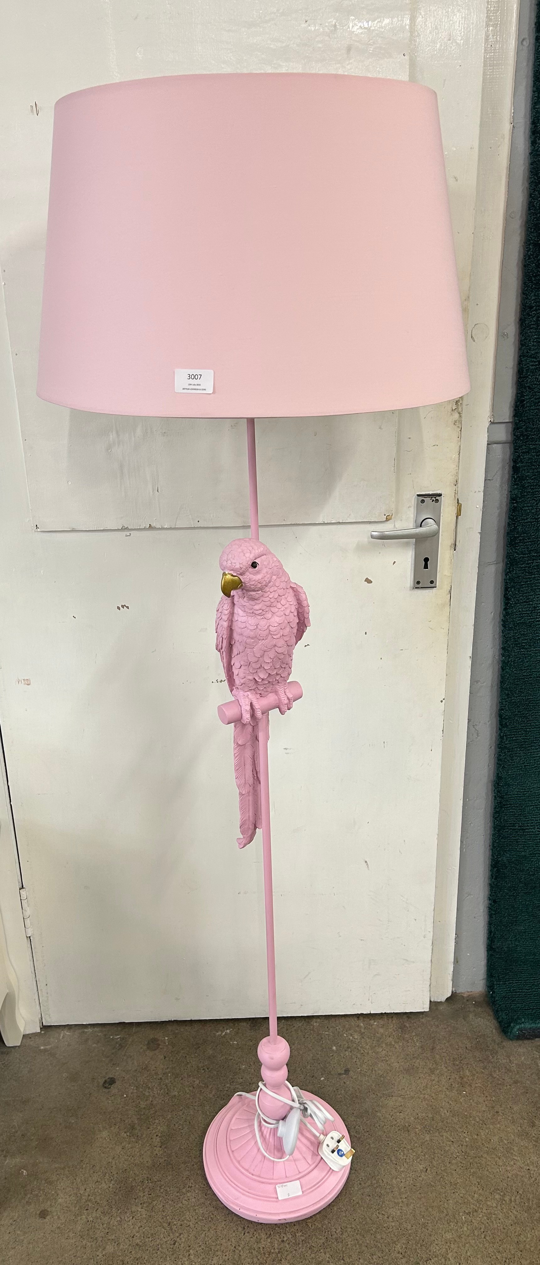 A bubblegum pink floor standing parrot lamp