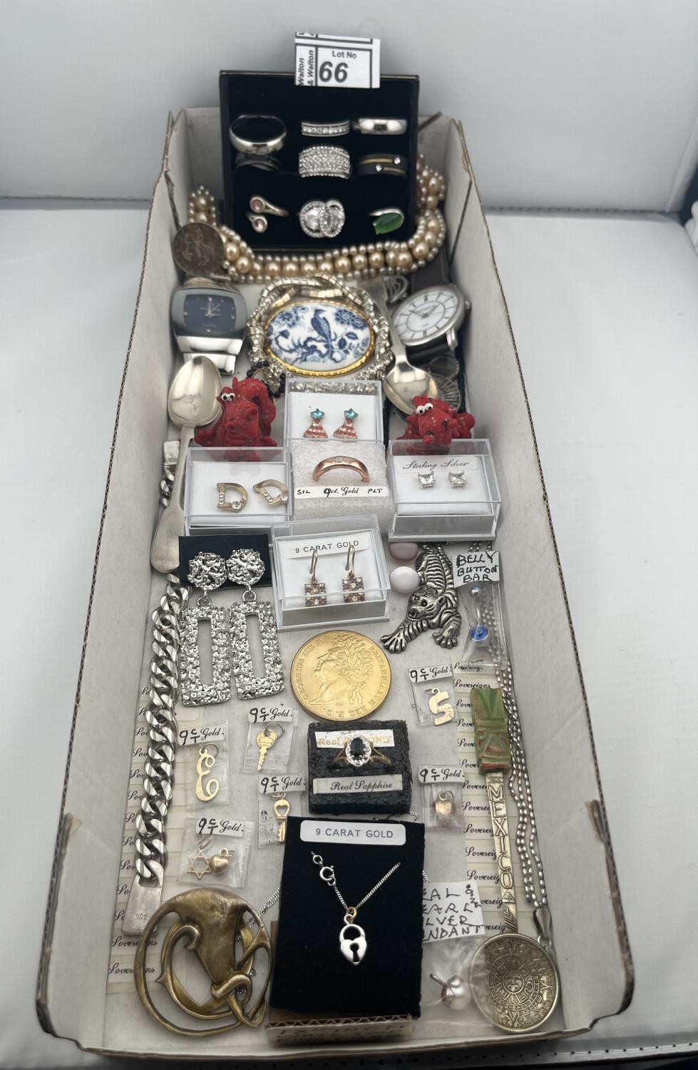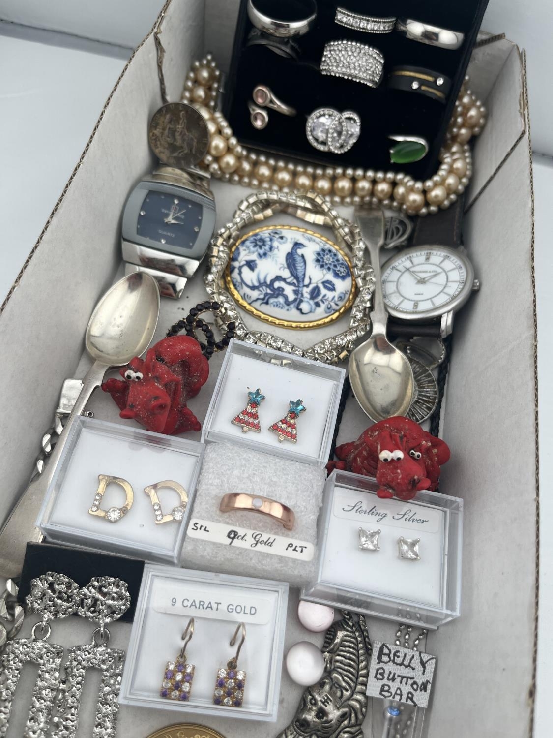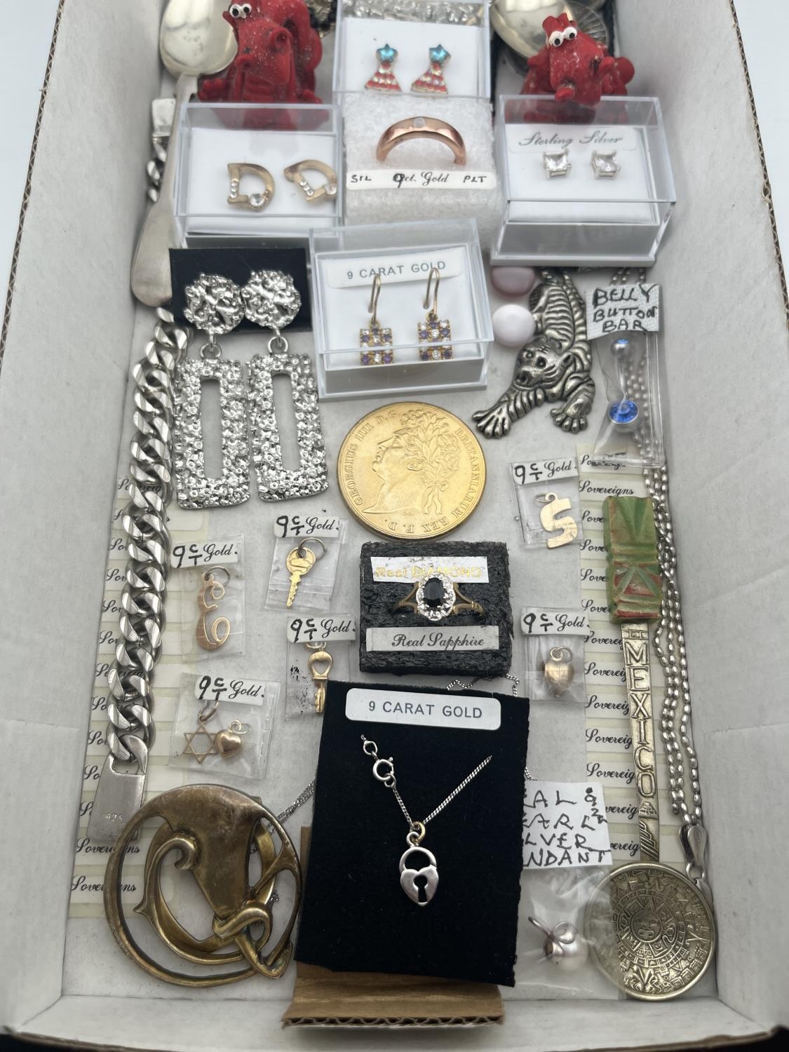 Box containing 9ct gold and silver jewellery etc - Only 10% buyer's premium