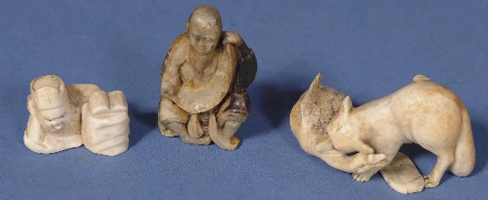 3 early carved ivory netsukes (goose damaged wing 2 - 5cm) -