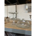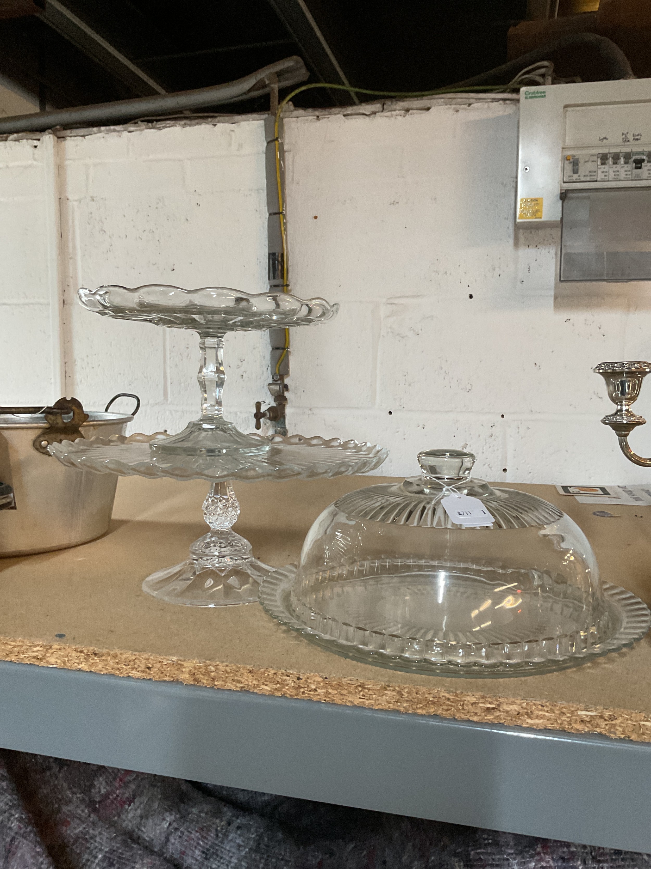 Three glass cake display stands