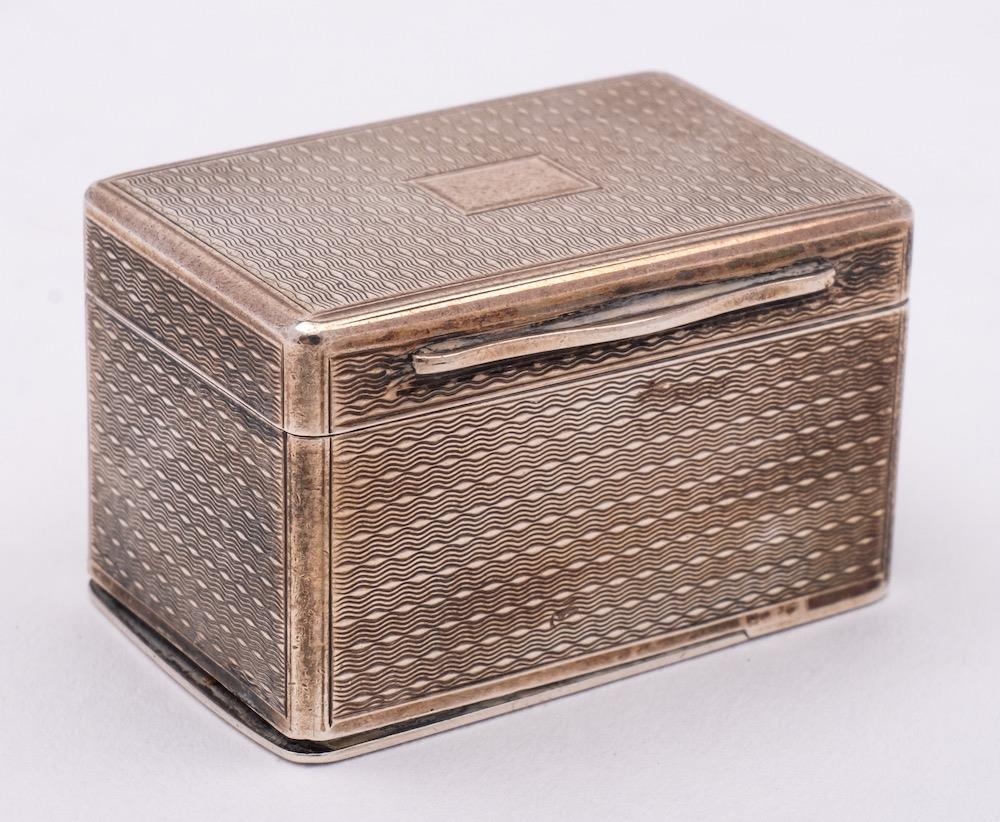 A William IV silver nutmeg grater, maker Charles Rawlings & William Summers, London, 1834: of rectangular outline with engine turned decoration, the hinged lid enclosing a steel grating plate, the base with hinged lid, 40gms, 1.30ozs,