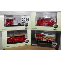 Oxford 1.76 Scale x 4 Mixed Fire Engines. P&P Group 1 (£14+VAT for the first lot and £1+VAT for subsequent lots)