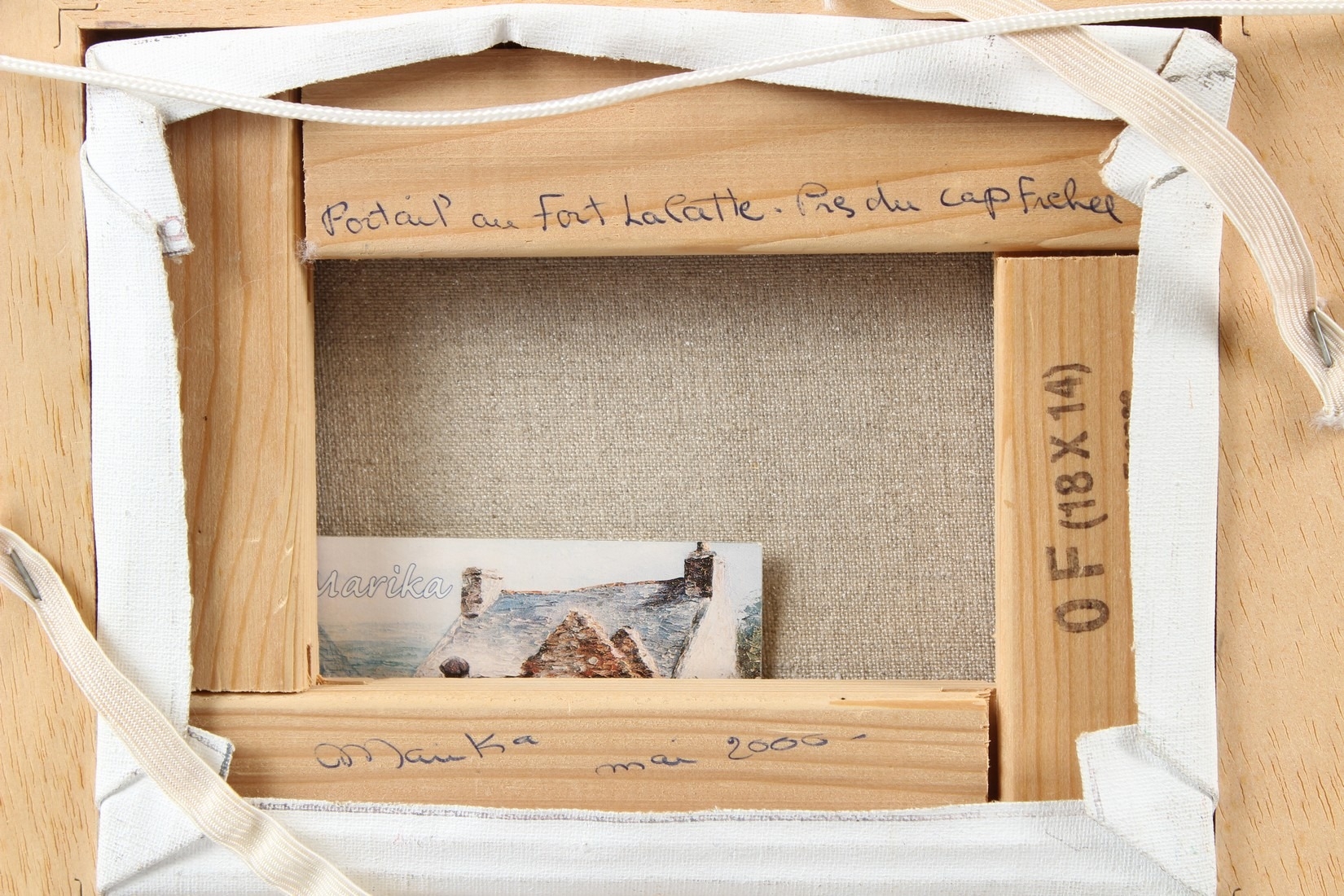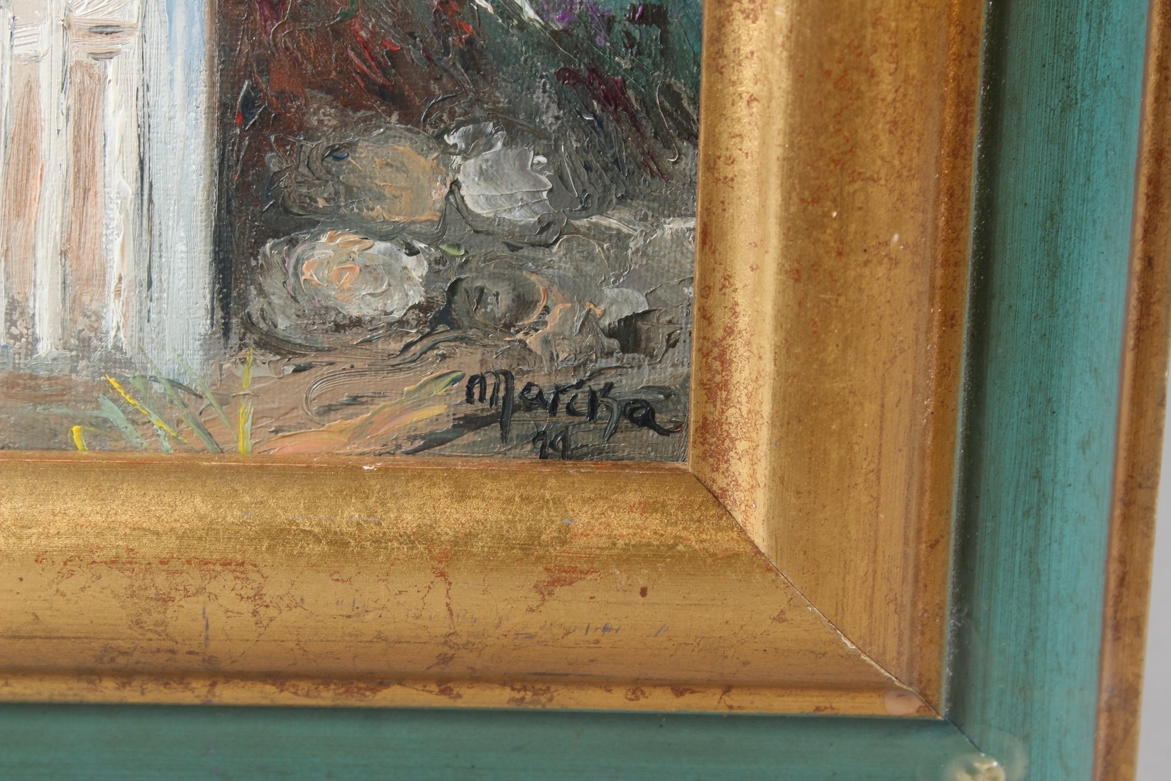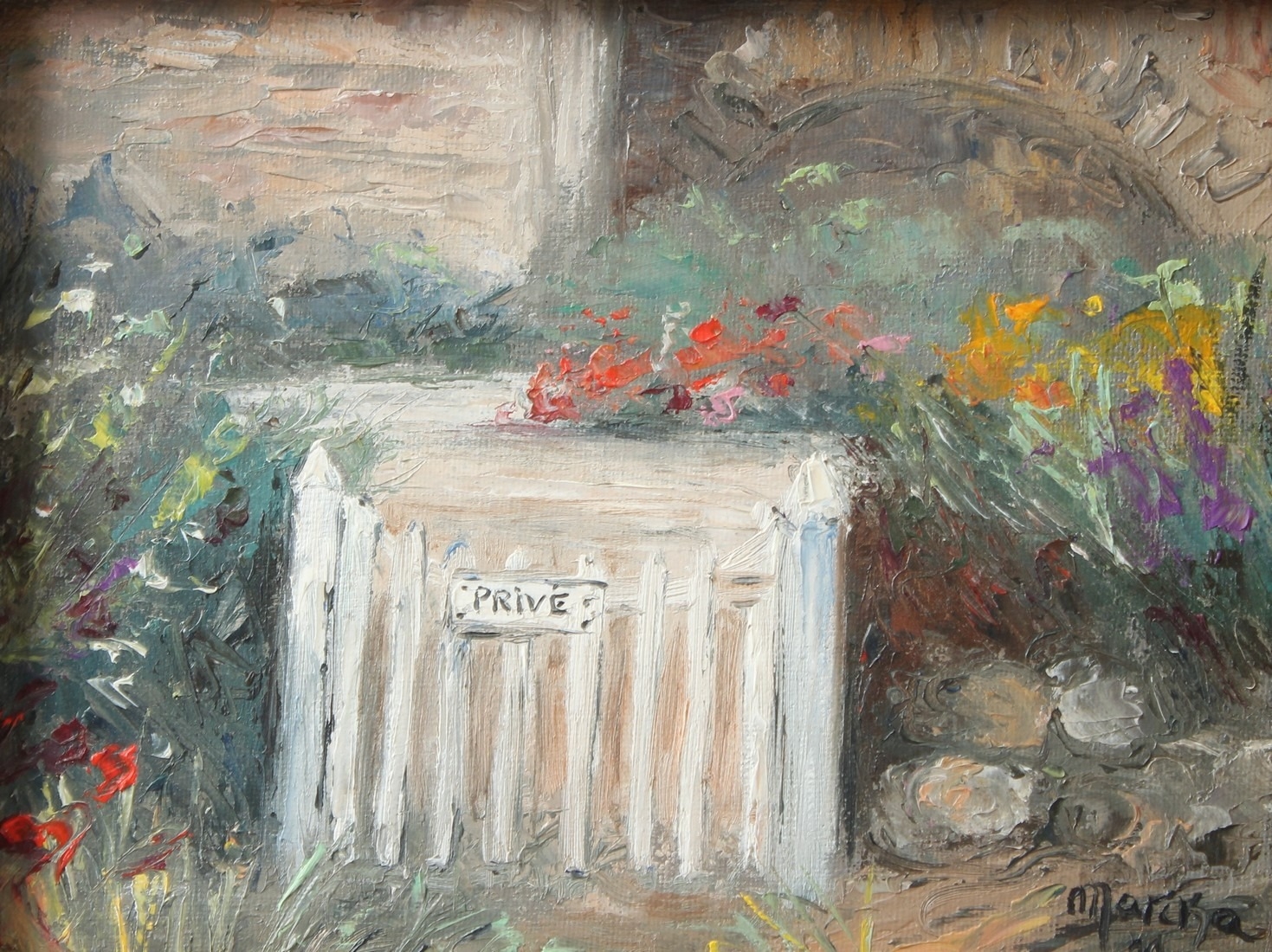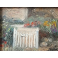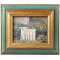 MARIKA (FRENCH CONTEMPORARY) Garden gate oil on canvas signed inscribed verso 13 x 17cm