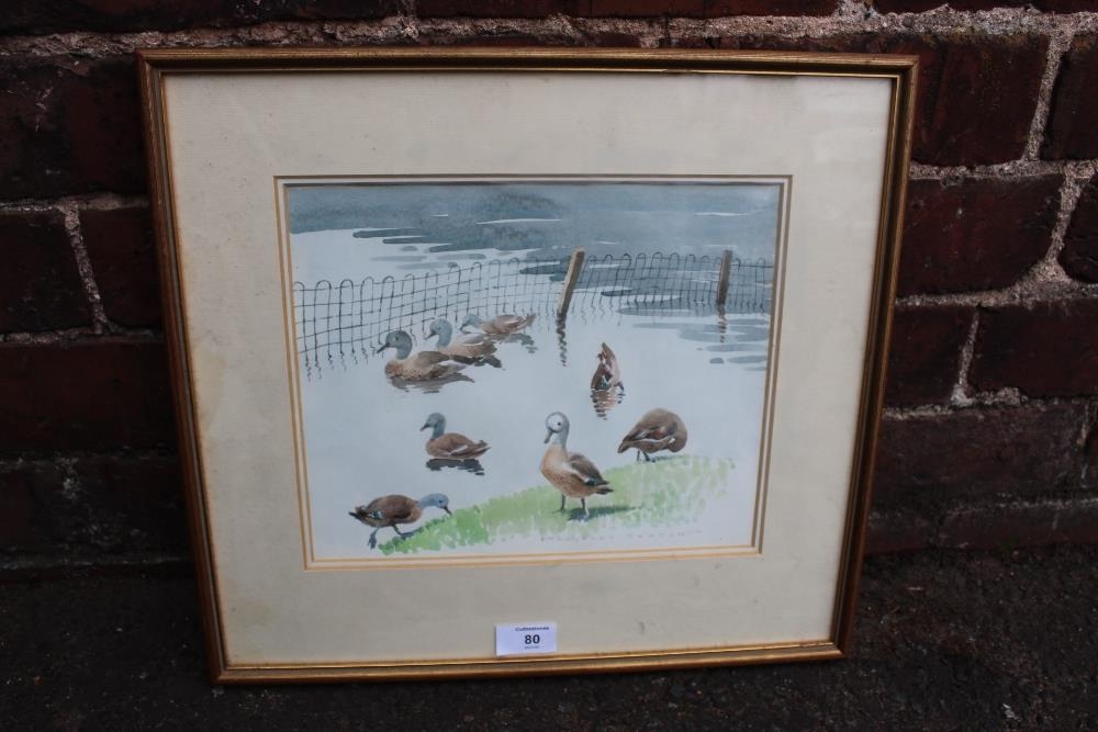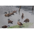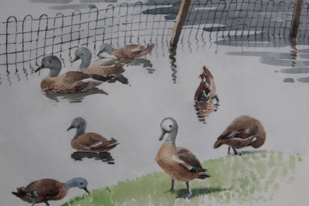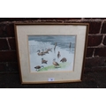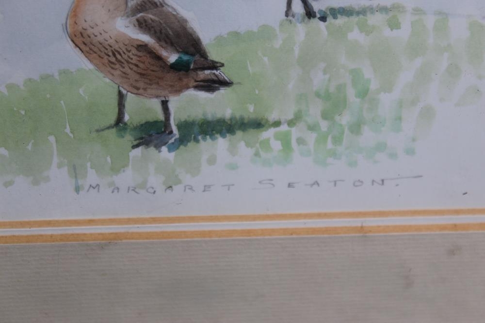 MARGARET SEATON (XX). British School. Ducks at water's edge. Signed lower middle to right, watercolour, framed and glazed, 22 x 27 cm