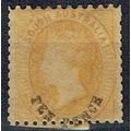 AUSTRALIAN STATES - South Australia: 1870 10d on 9d yellow mounted mint part original gum, perforation have cut unevenly into the stamp leaving a square stamp rather than normal, Still cat £350, SG 107.