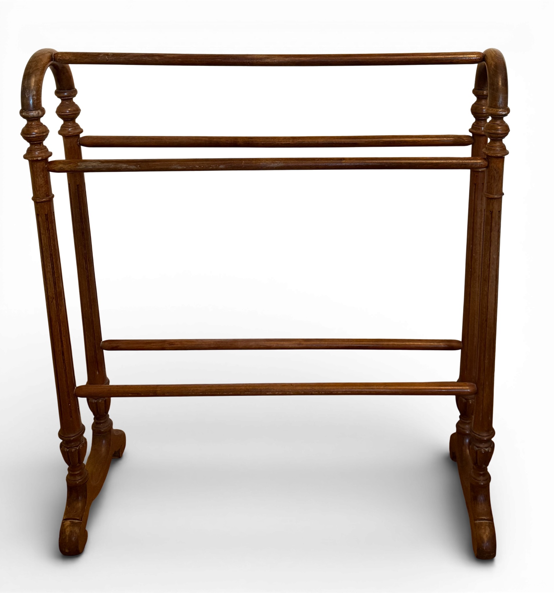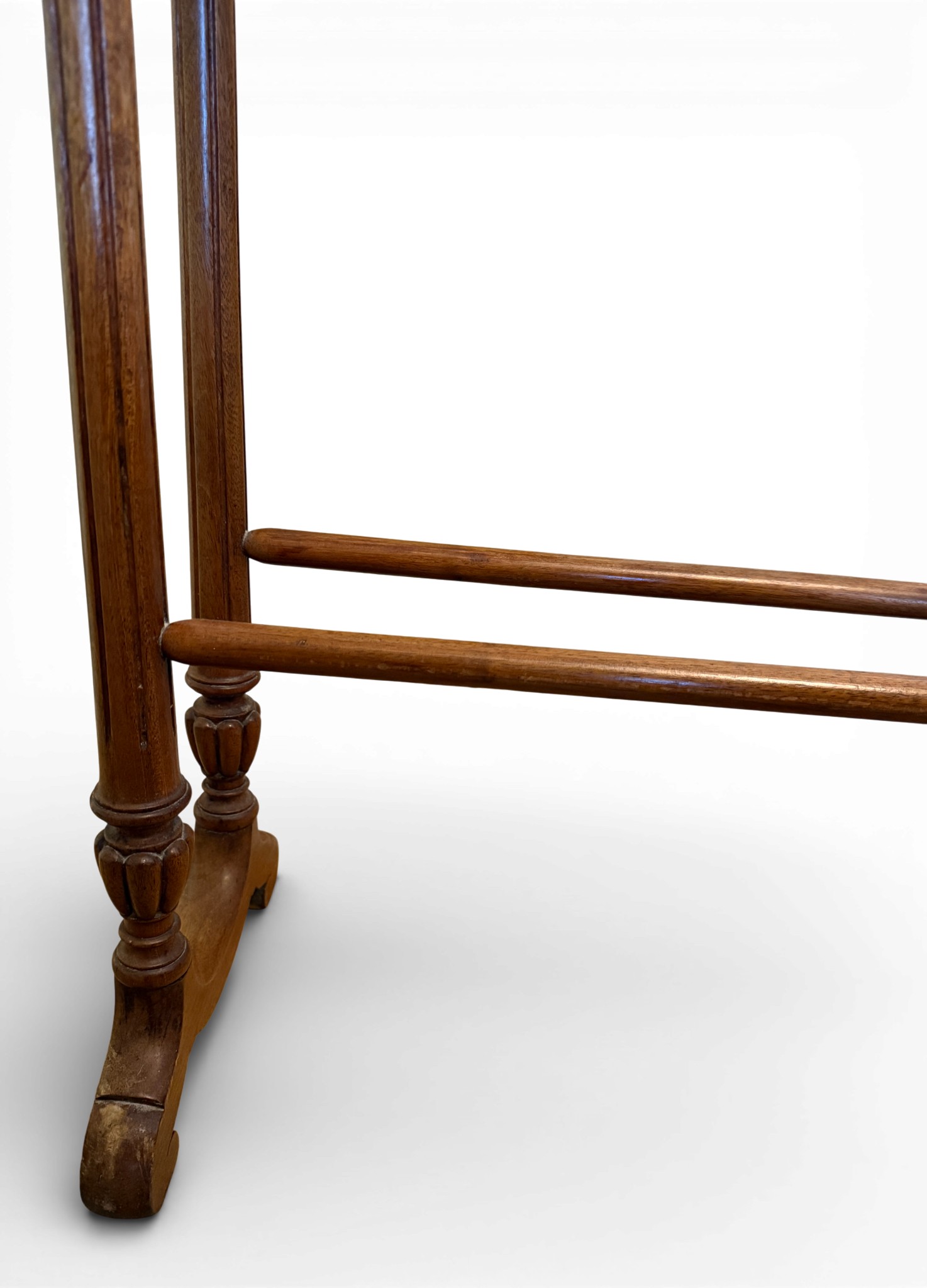 A 19thC mahogany towel rail. 90cm h x 78cm w x 18cm d.