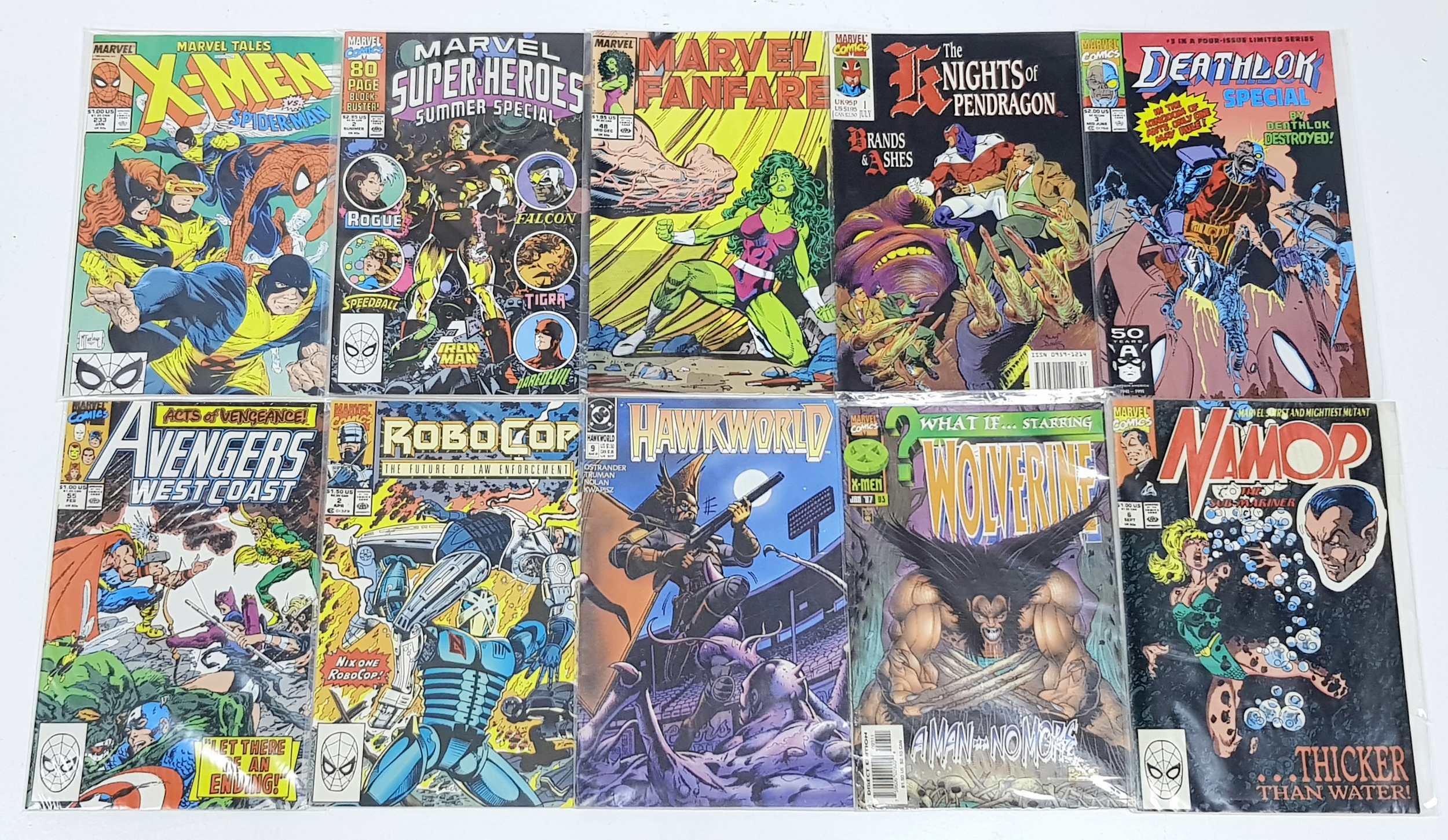 Ten Marvel Mixed Comics - Most Being in Very Fine to Very Fine Plus Grade. All individually wrapped in plastic. Please refer to photos for finer details.