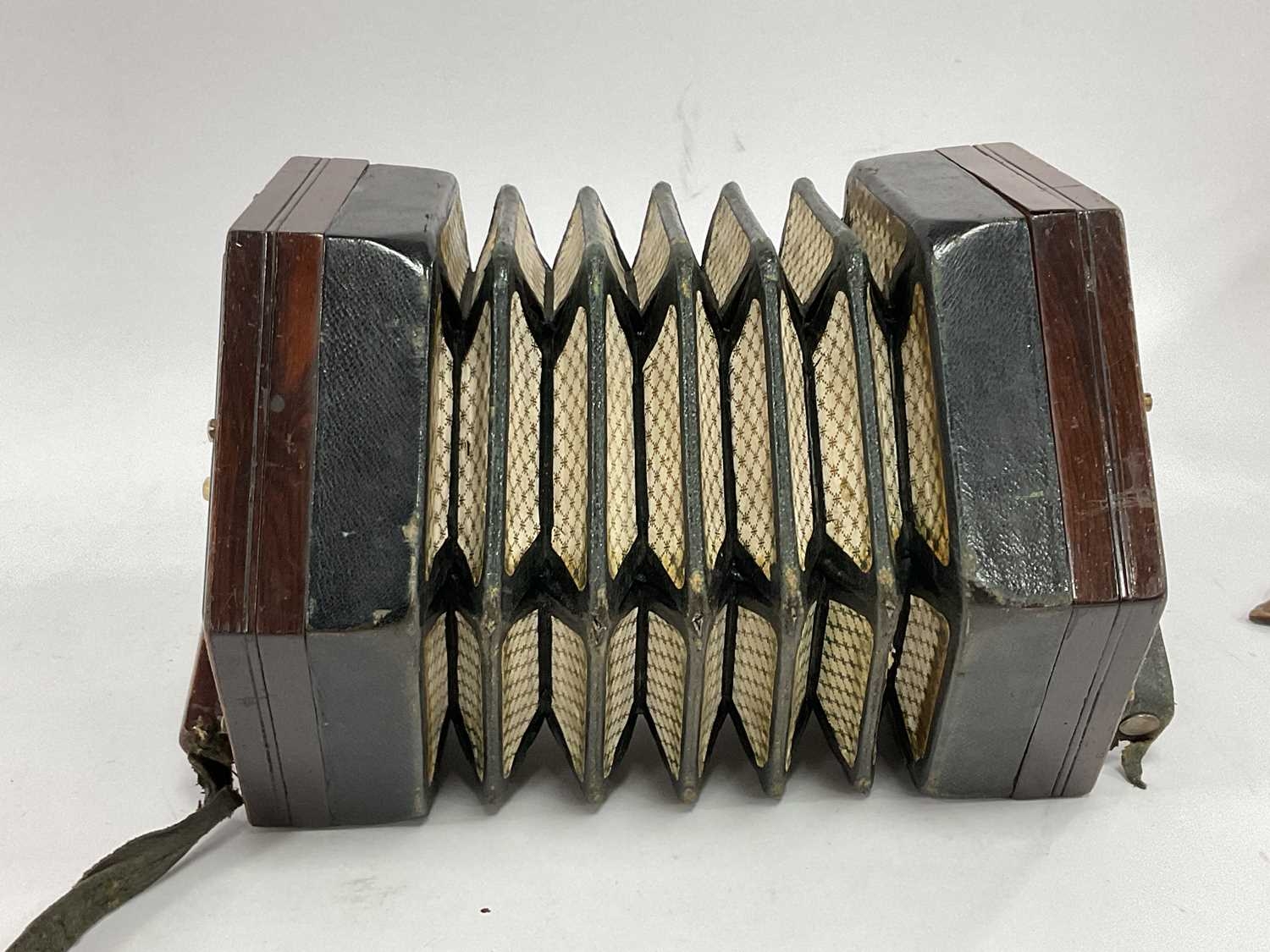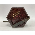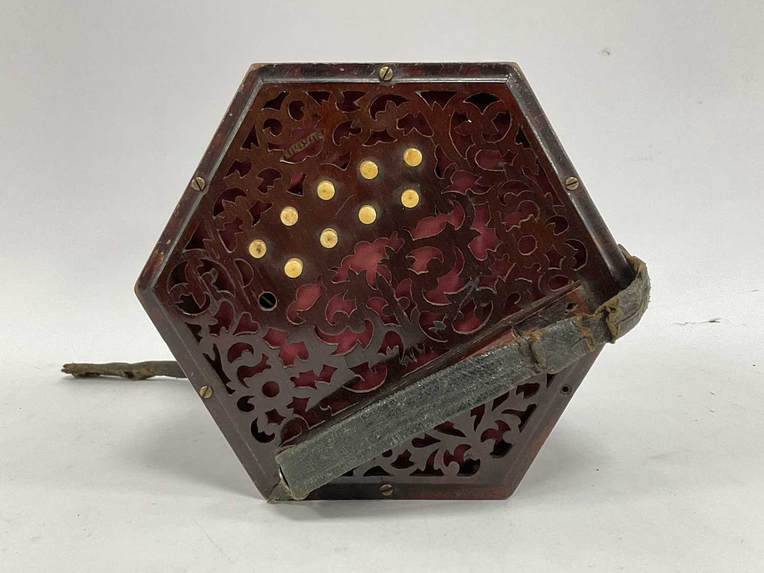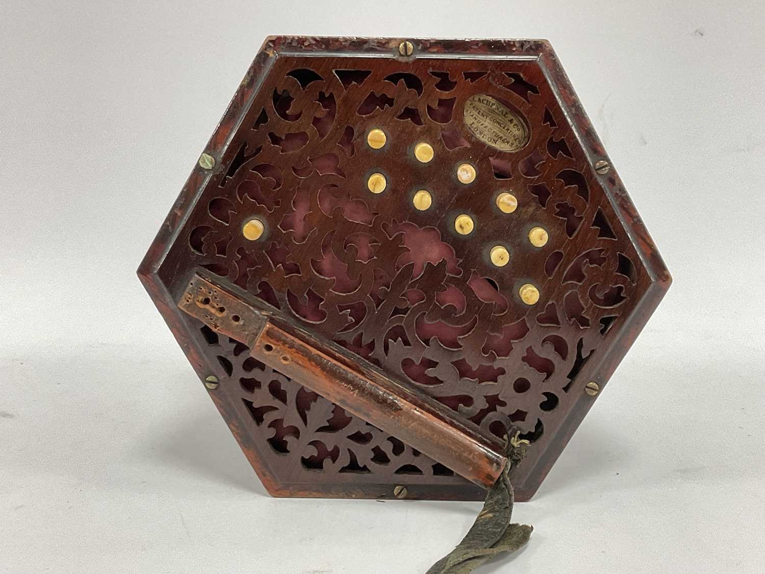 A Lachenal and Co. Concertina, with twenty bone keys, fretwork ends, paper label, model No. 908601, cased.