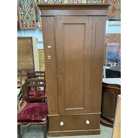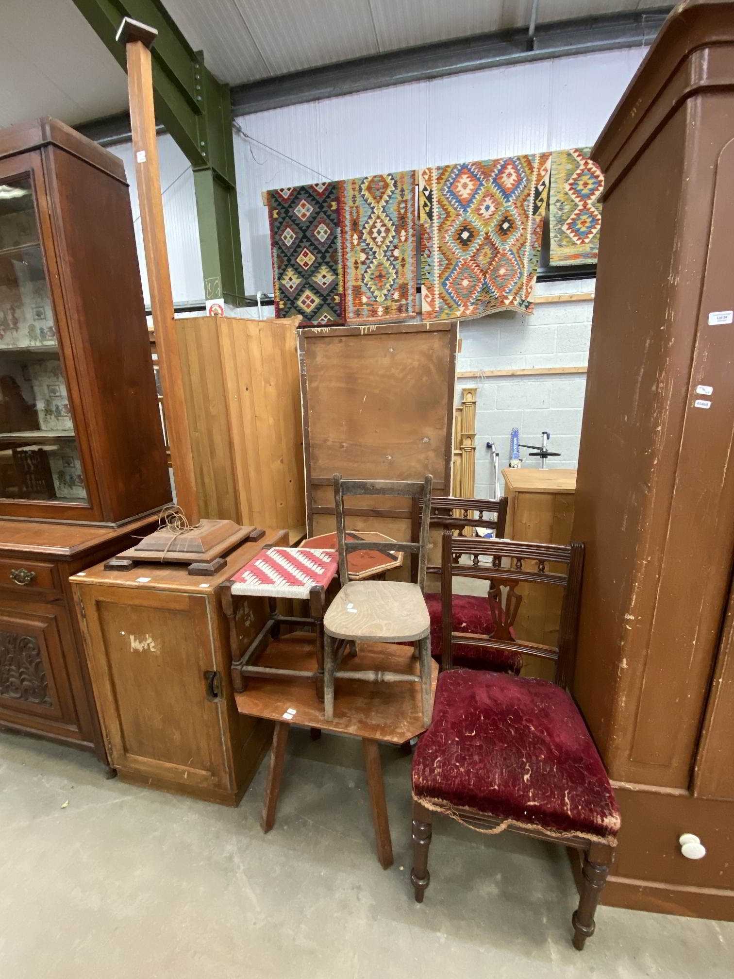 Art Deco oak standard lamp 156H , 1950's oak cupboard 81H 50W 53D, vintage child's chair etc (signs of worm)