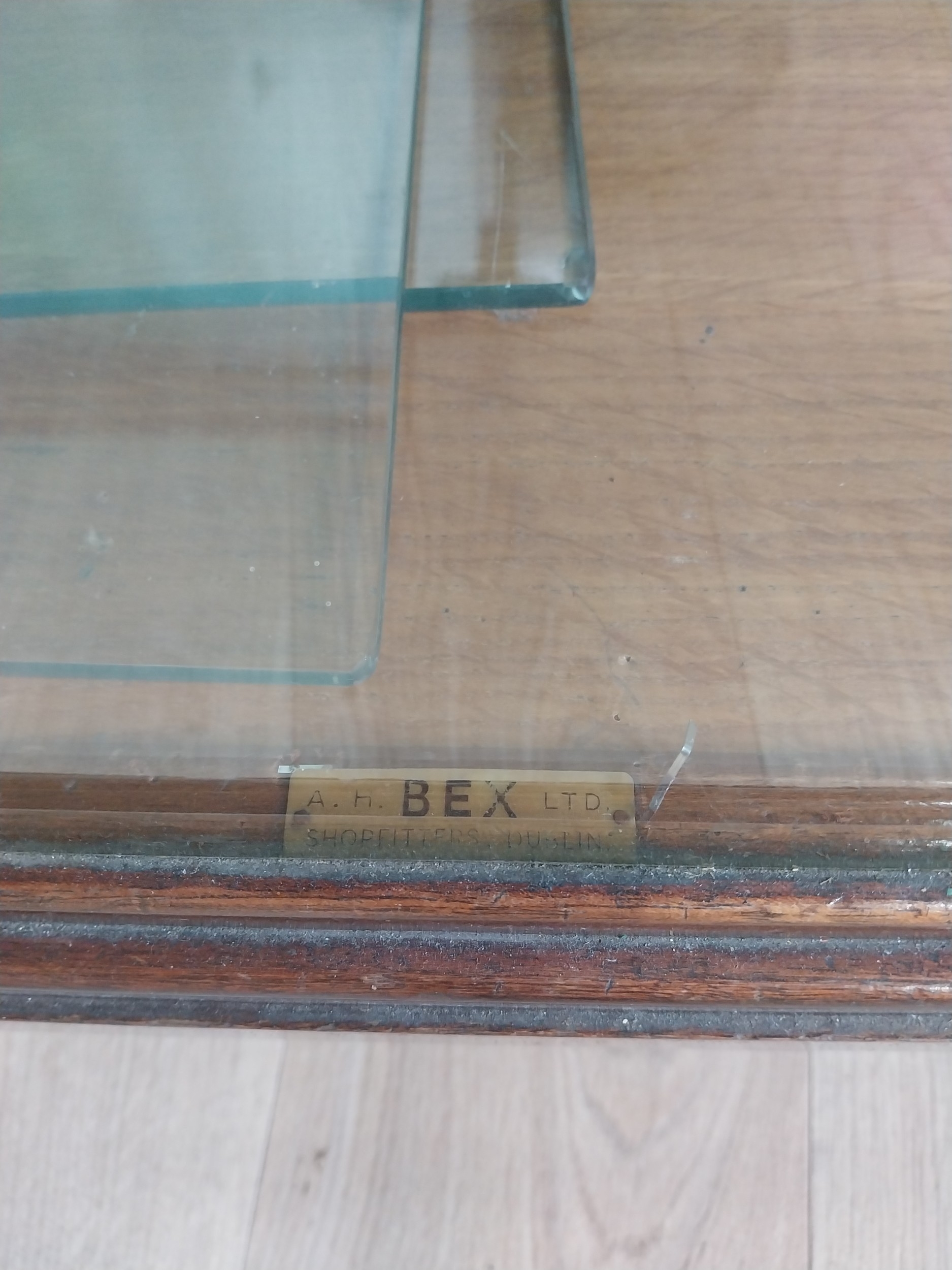Early 20th C. mahogany and glazed Haberdashery counter display cabinet originally from Duffy's Drapery shop, Tullow, Co Carlow. {92 cm H x 183 cm W x 61 cm D}.