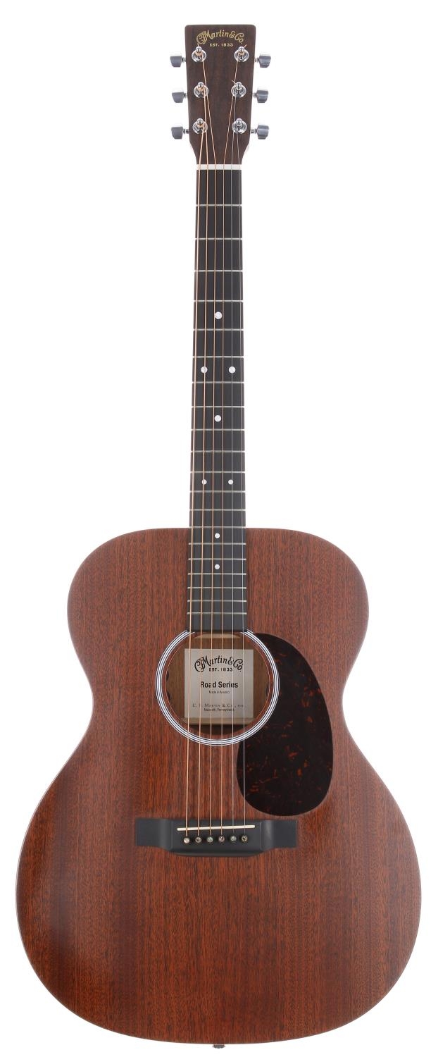 C.F Martin Road Series 000-10e electro-acoustic guitar, made in Mexico; Body: all sapele, finish rubbing to bass side of lower bout; Neck: mahogany; Fretboard: ebony; Frets: good; Electrics: working; Hardware: good; Case: original gig bag; Overall condition: good
