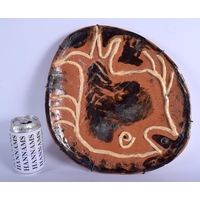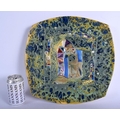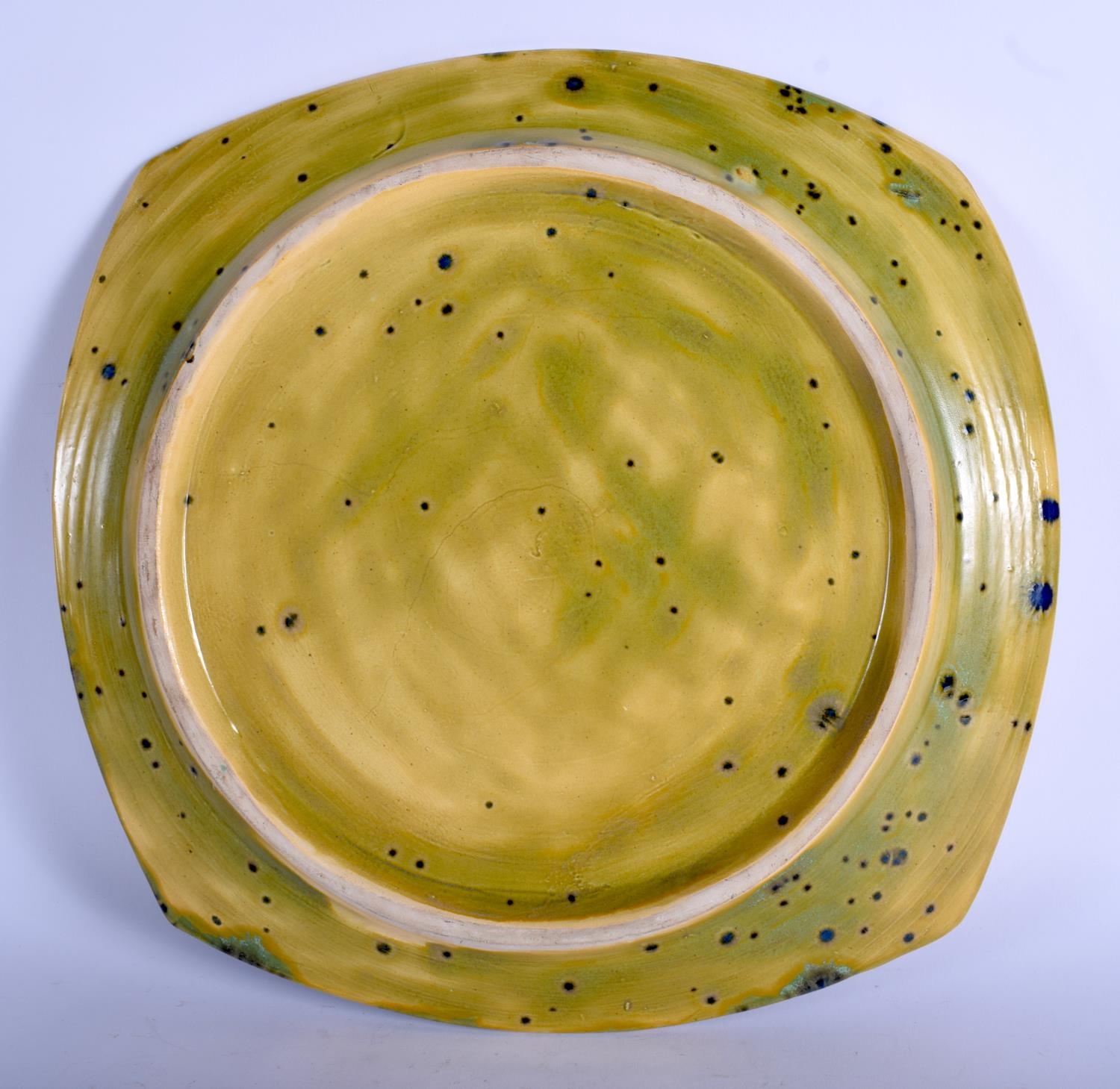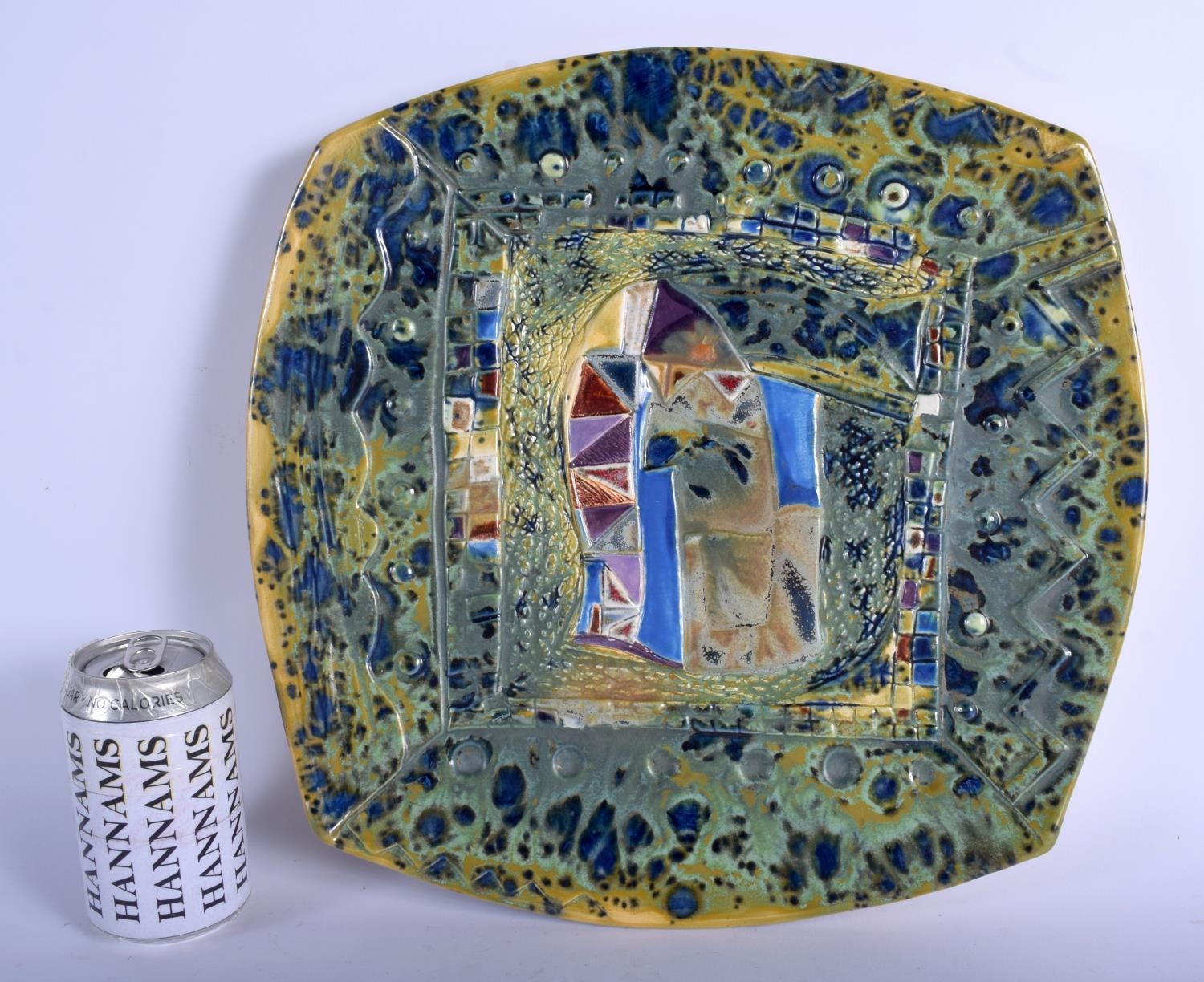 A LARGE CONTEMPORARY STUDIO POTTERY SQUARE DISH enamelled in the Troika style. 32 cm square.