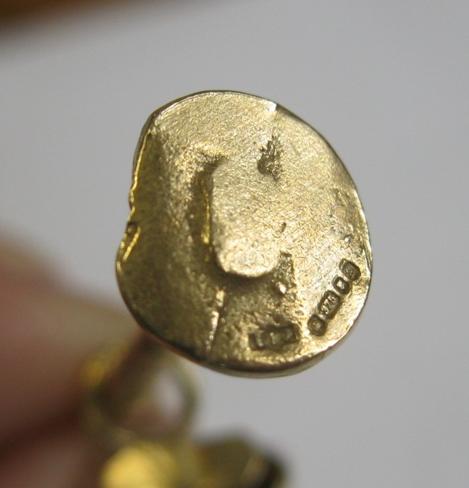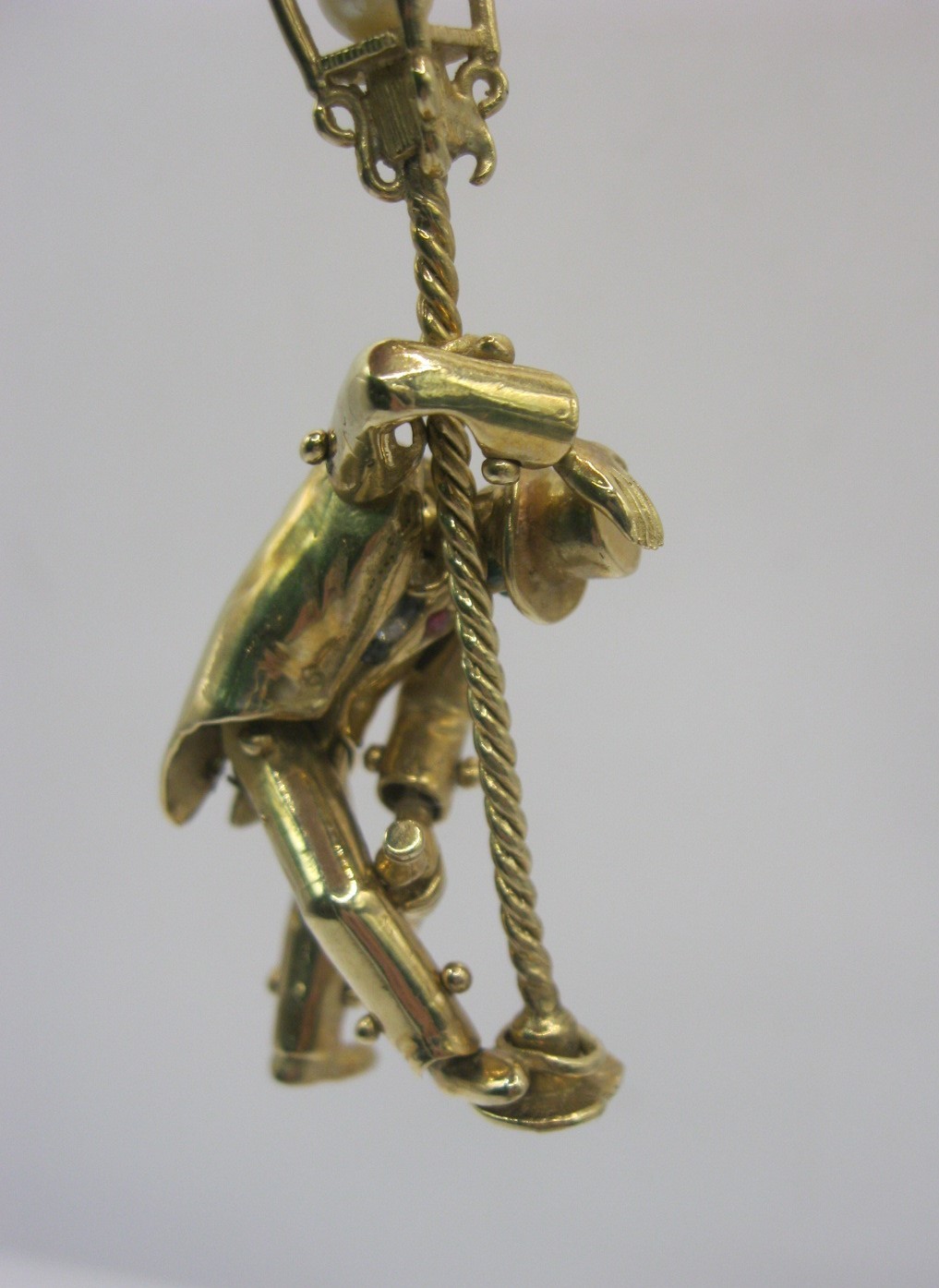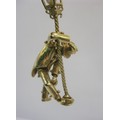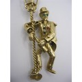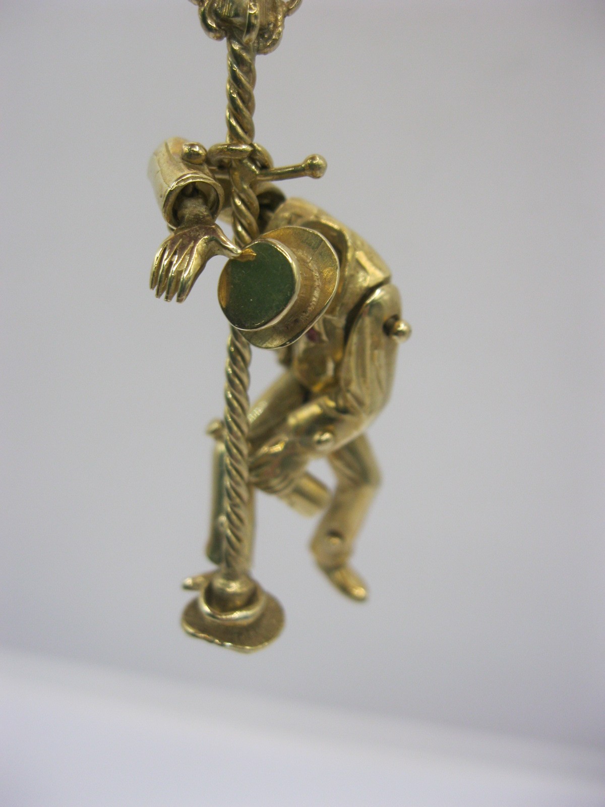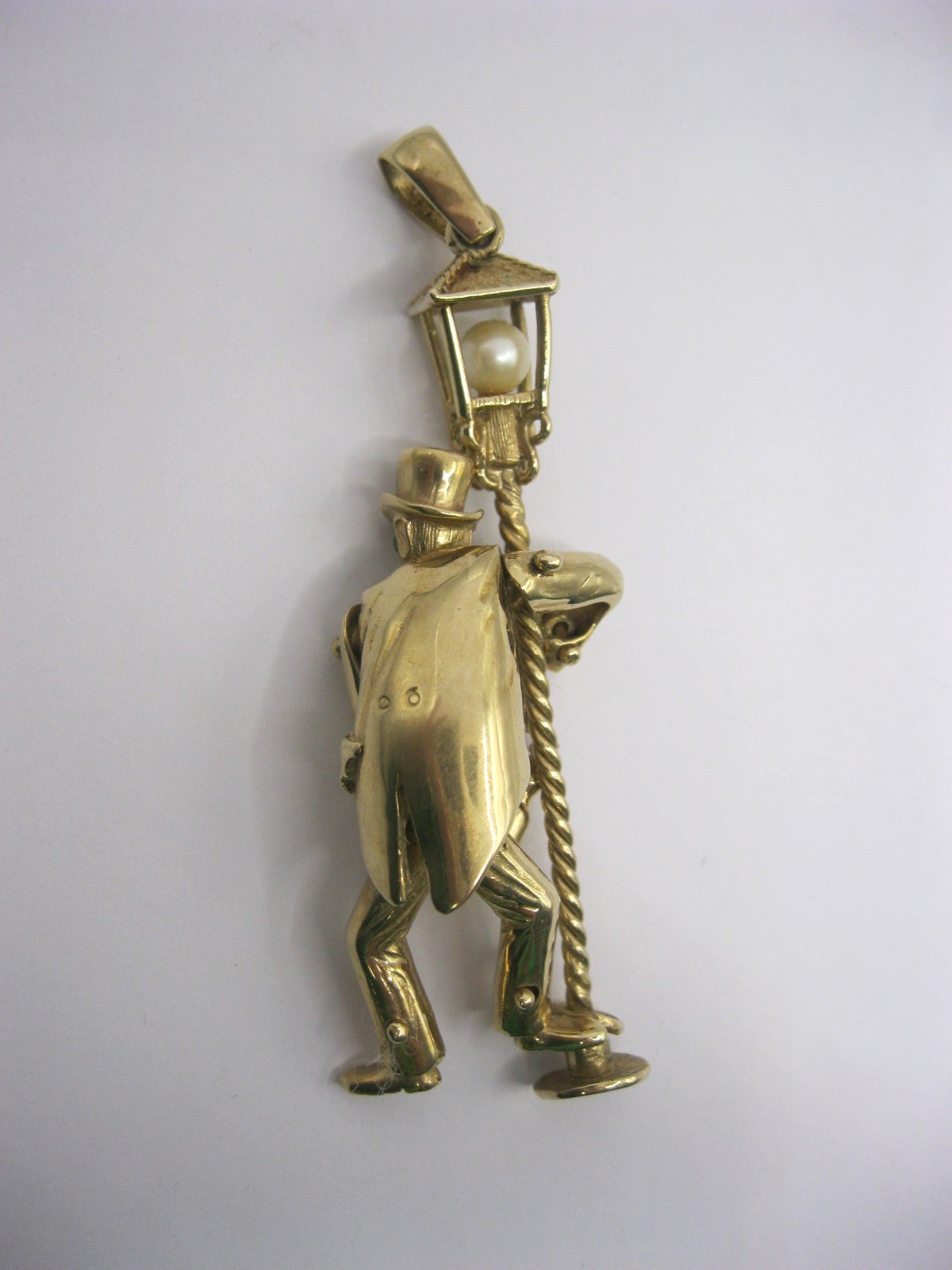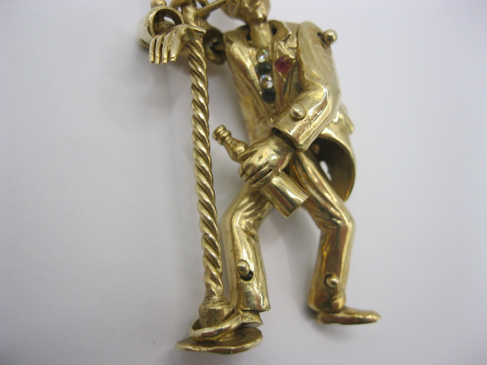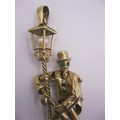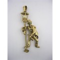 A large 9 carat gold pendant modelled as an articulated drunken man figure supporting himself on a lamppost.