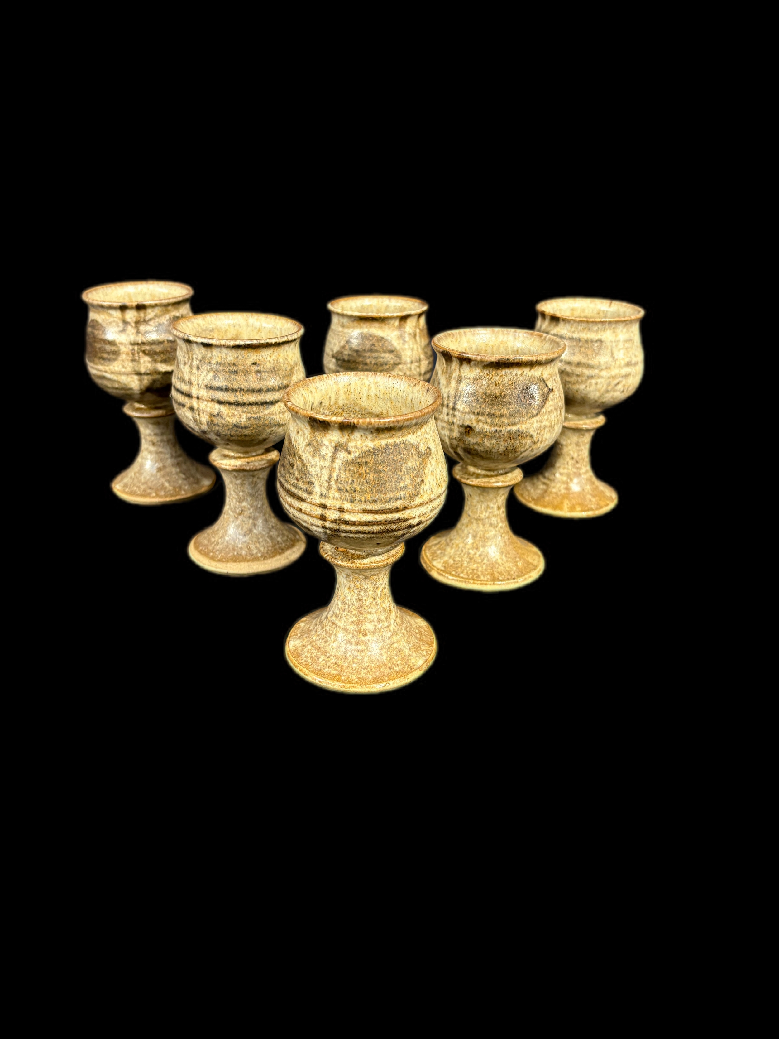 6 pottery wine goblets 13cm H