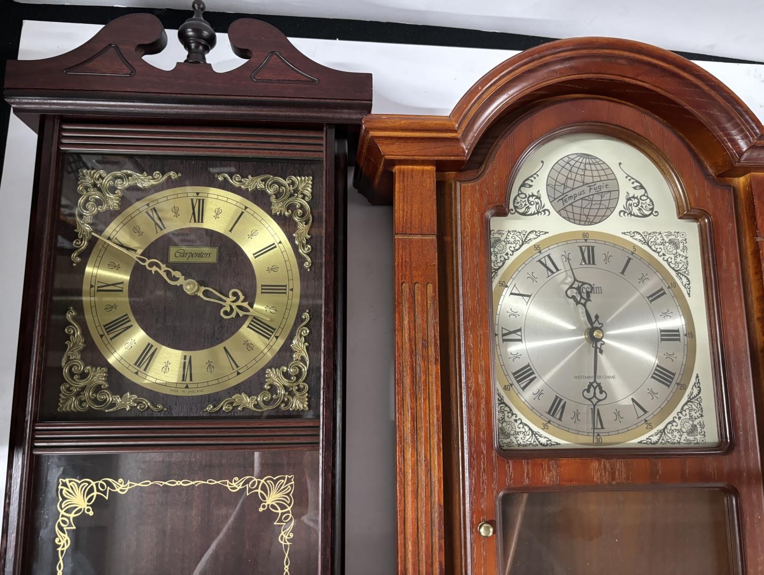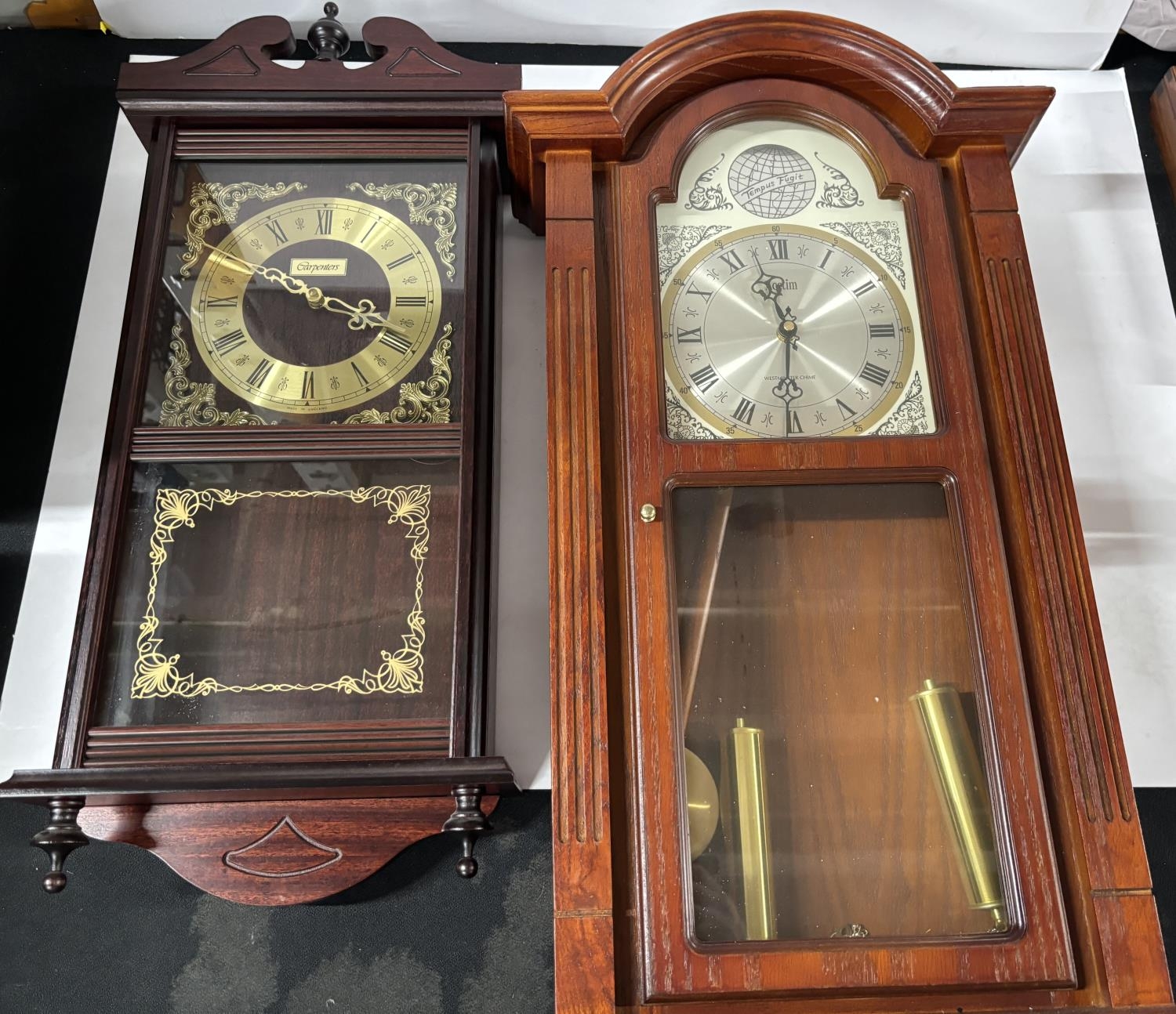 2 Wall hanging clocks one is tempus Fugit