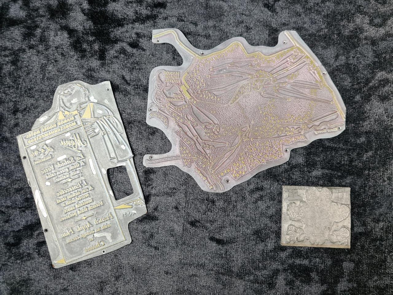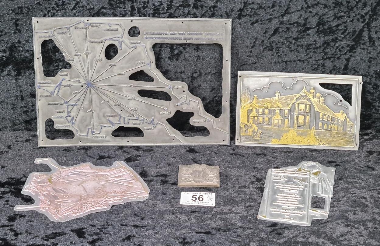 Set of vintage metal embossing plates of Devon and Cornwall.
