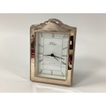 R Carr (Sheffield) Hallmarked Silver Mounted Mantel Clock, Sheffield 1994, of shaped design with beaded edge, 17cm.