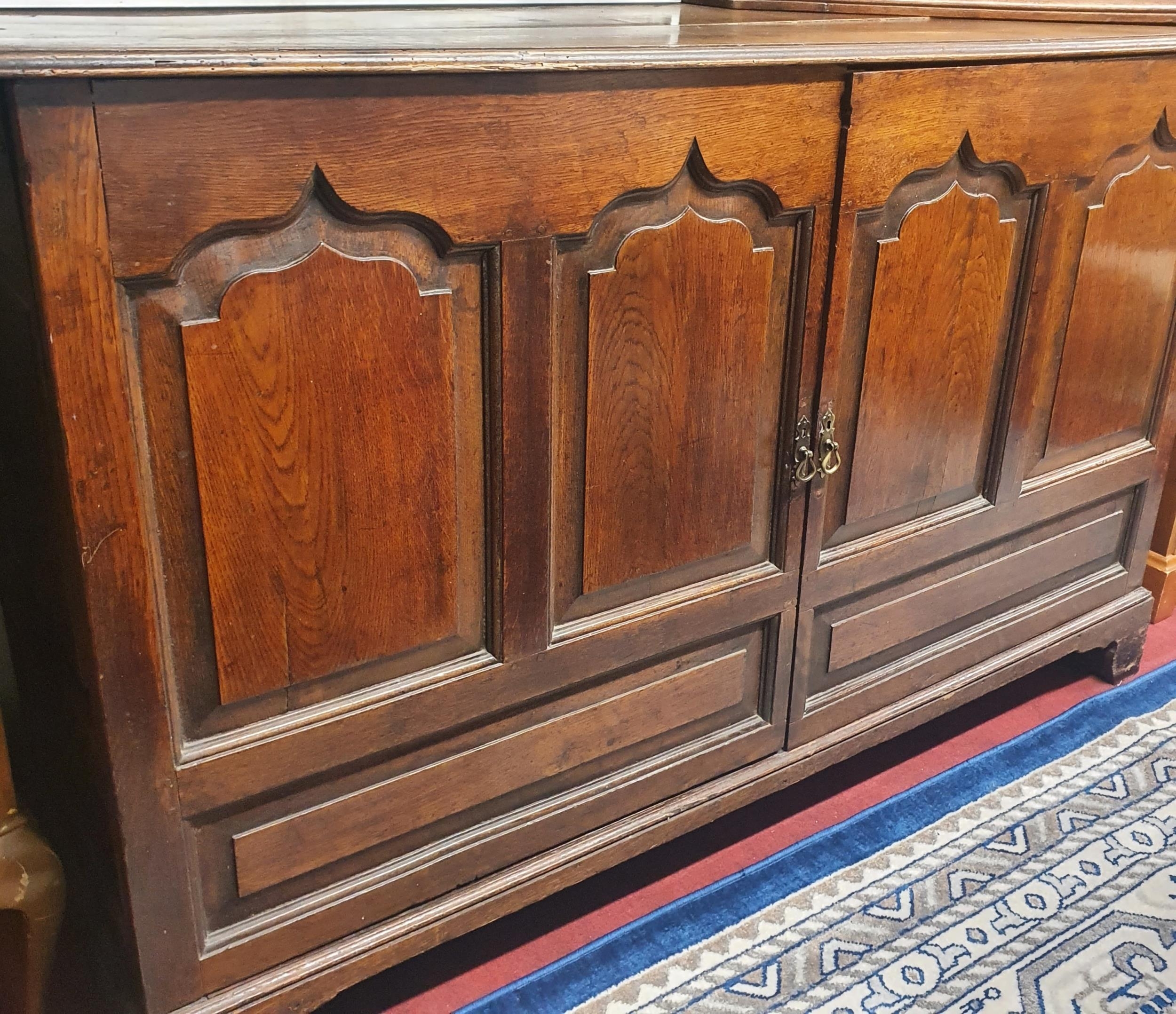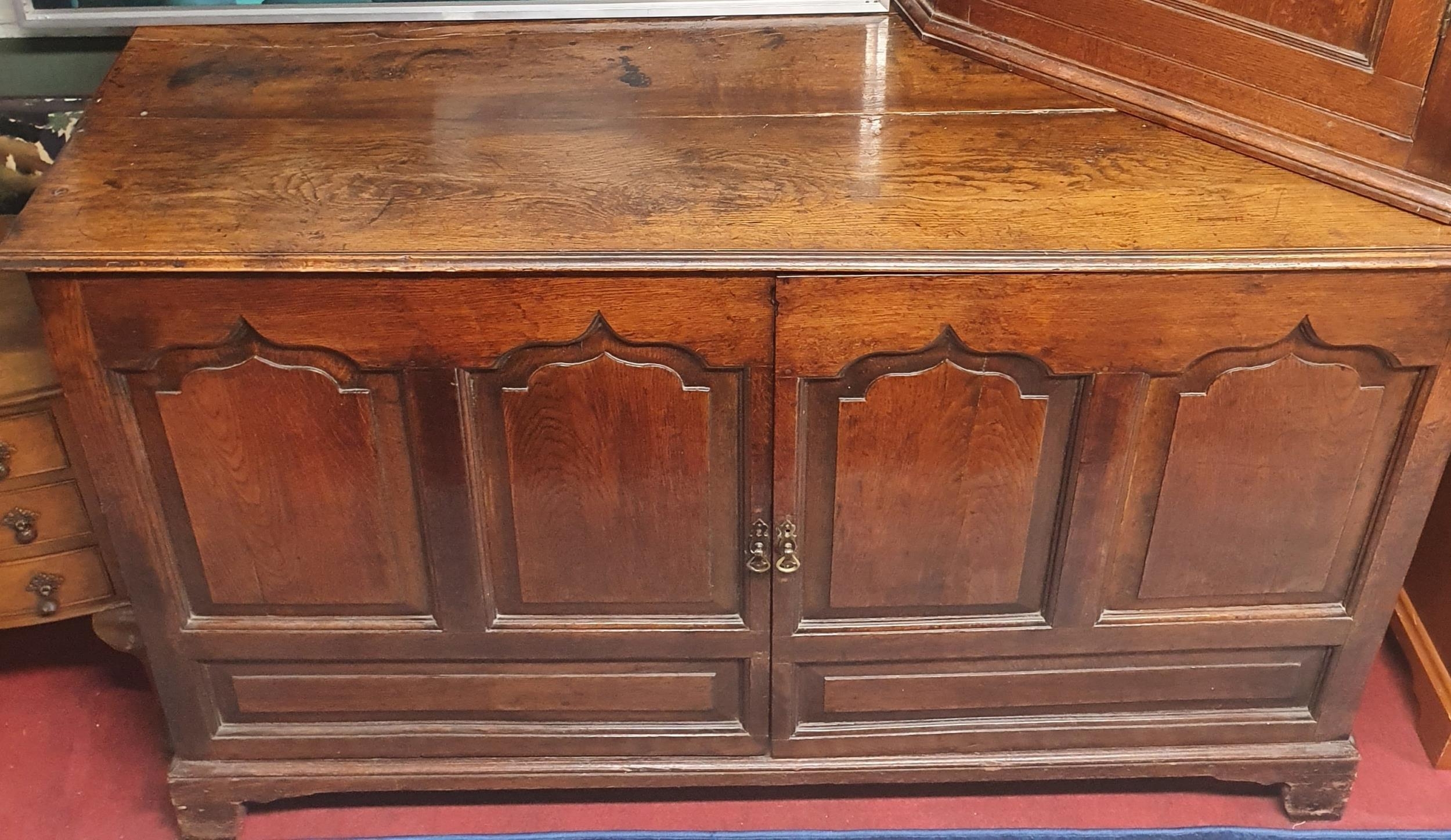 A very large 18th Century Oak Mule Chest with opening front. W 157 x D 54 x H 98 cms approx.