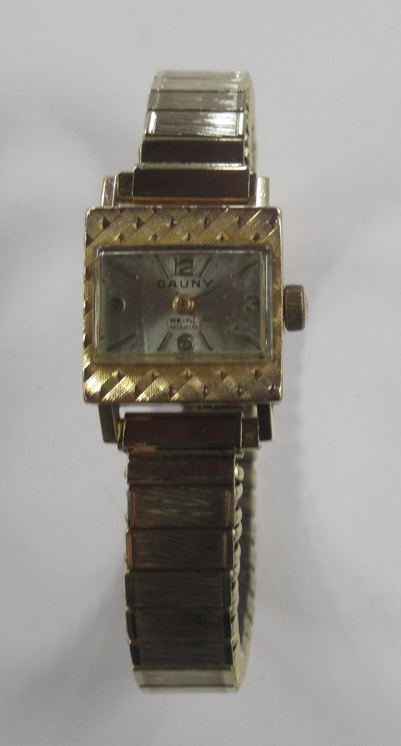 Cauny, an 18K cased wrist watch with expanding bracelet