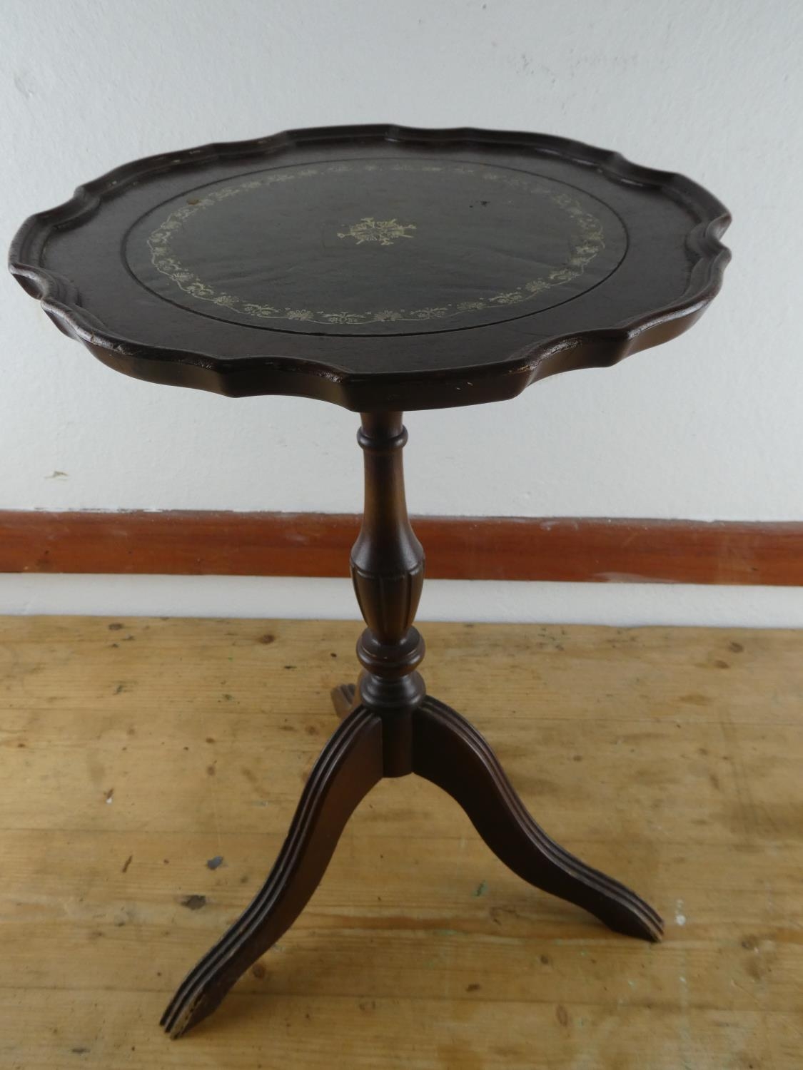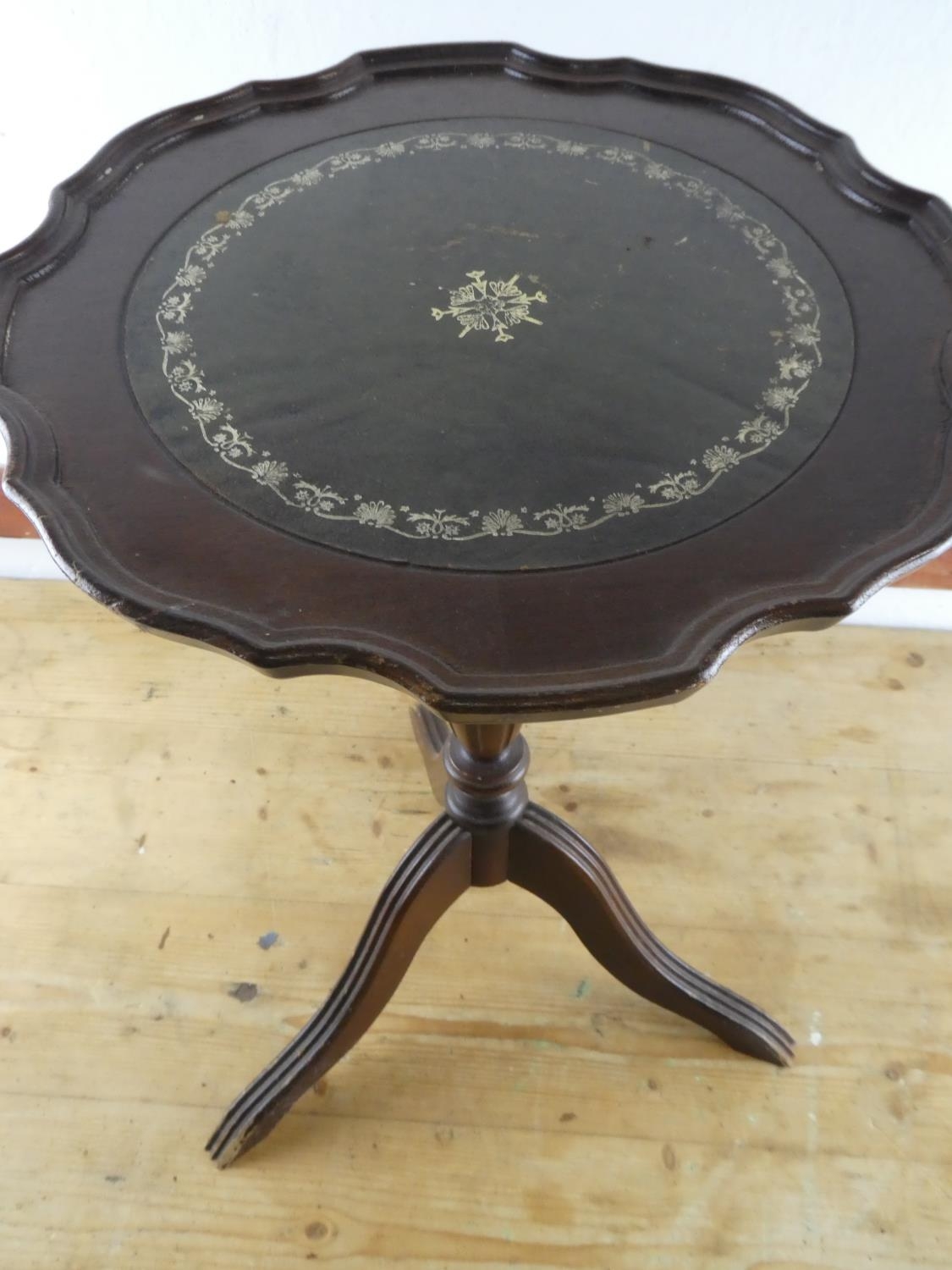 A leather topped wine table.