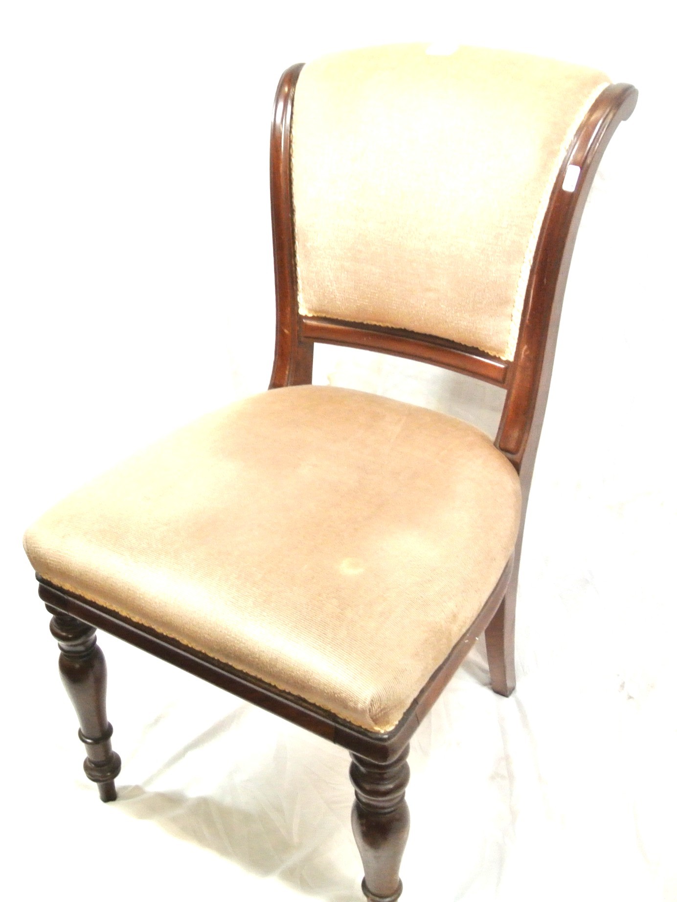 Victorian style upholstered occasional chair with shaped rails and turned legs